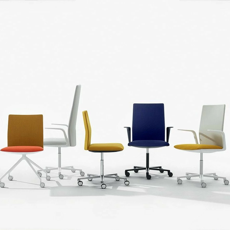 Das Modell ist 54 cm breit und 100 cm hoch. Die Tiefe beträgt 54 cm. Die Sitzhöhe beträgt 48 cm. Der Bürostuhl von Arper ist auch mit einem fünfstrahligen Fuß und drehbarer Sitzschale zu haben.