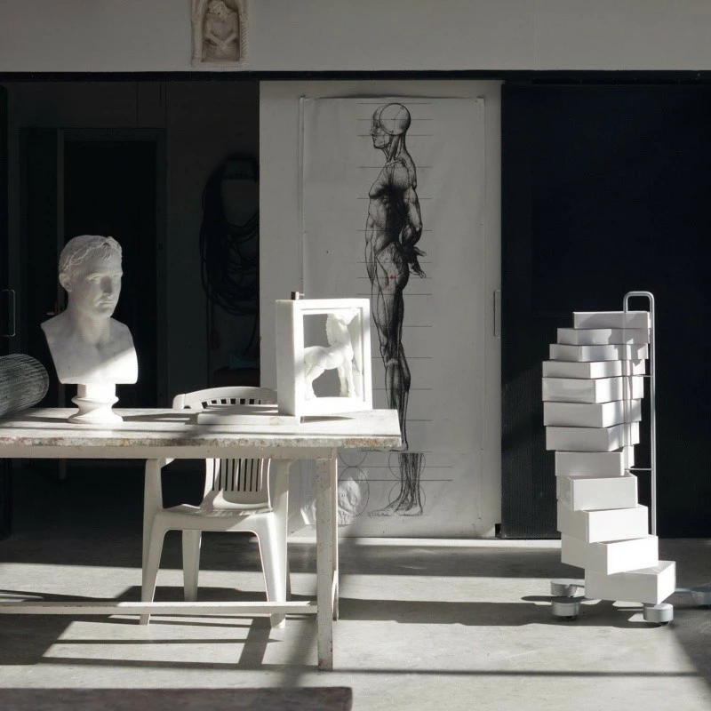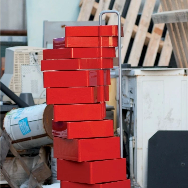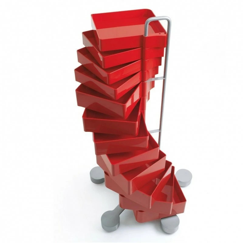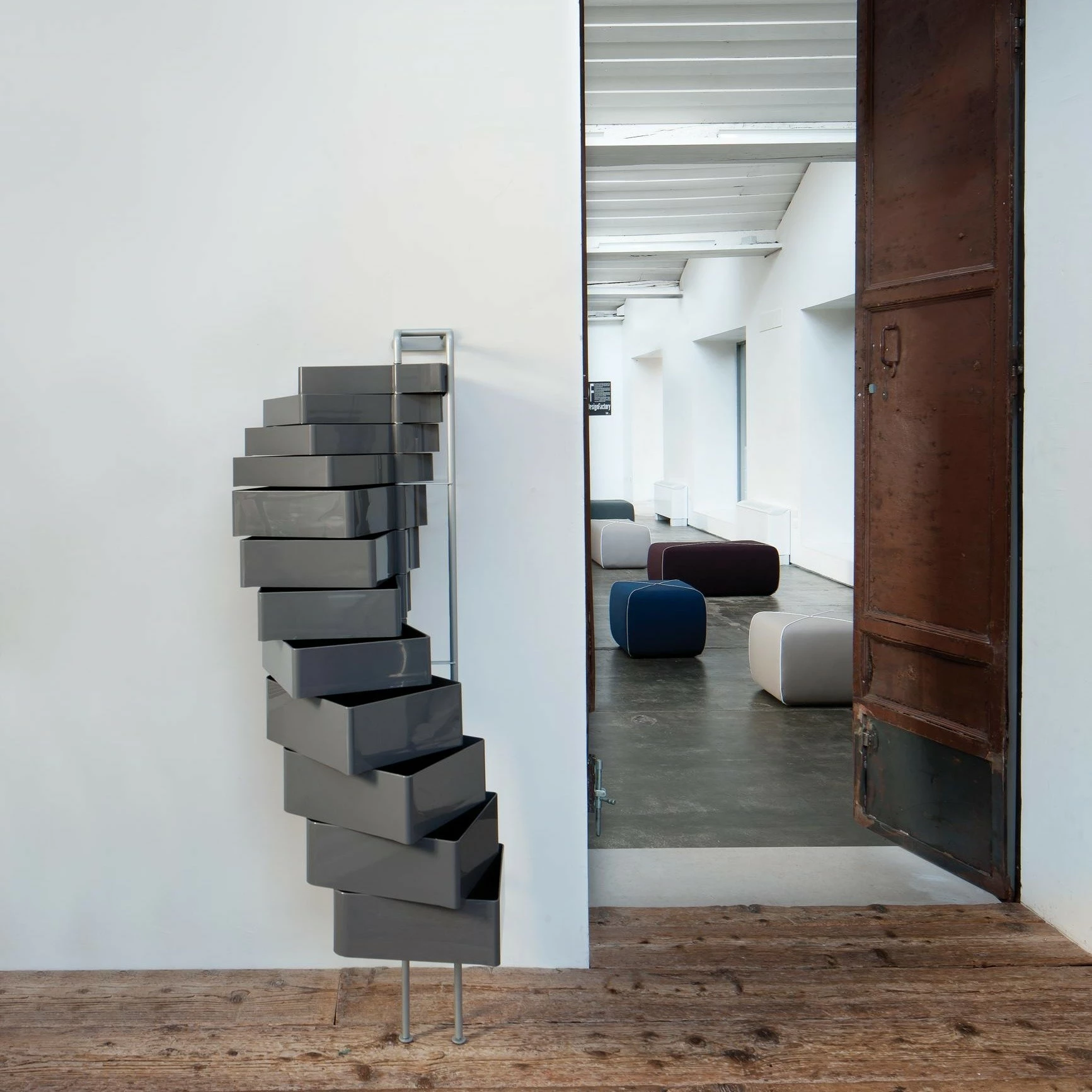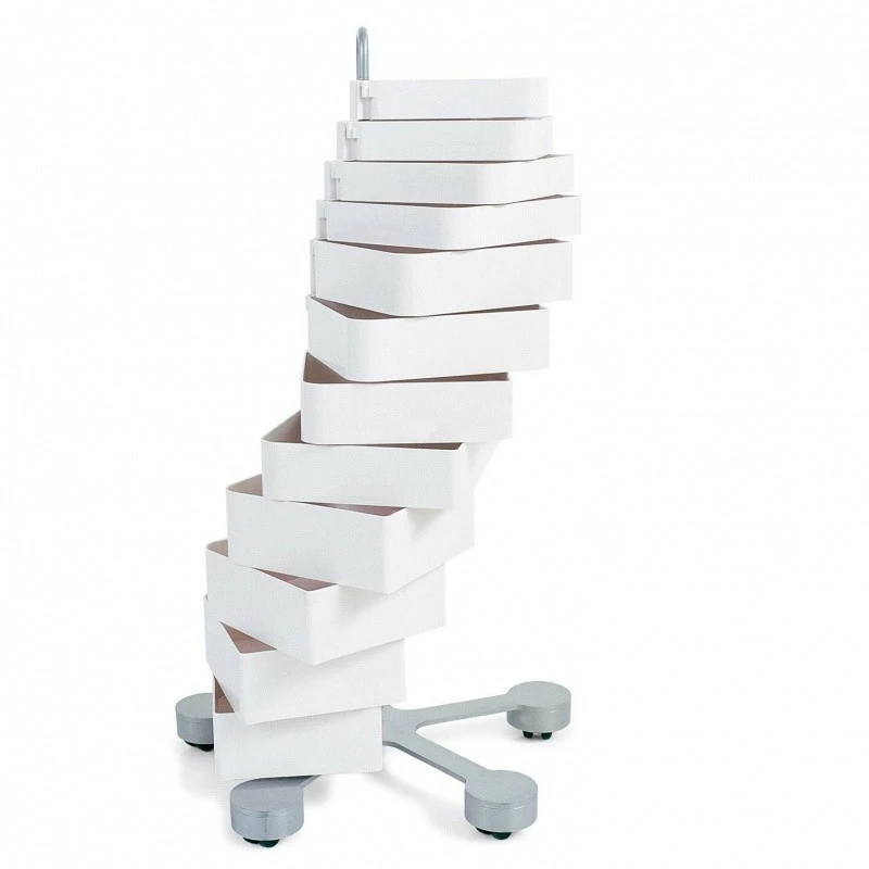 Das Spinny Schubladenelement wurde von Joe Colombo für den Hersteller B-Line entworfen. Die Besonderheit des Objekts liegt in seiner Wandelbarkeit. Je nach Ausrichtung bietet es stets eine andere faszinierende Optik. Der moderne Ordnungshelfer lässt sich überall in Ihrem Wohnbereich oder in Ihrem Büro einsetzen und sorgt gleichzeitig für jede Menge unentbehrlichen Stauraum.