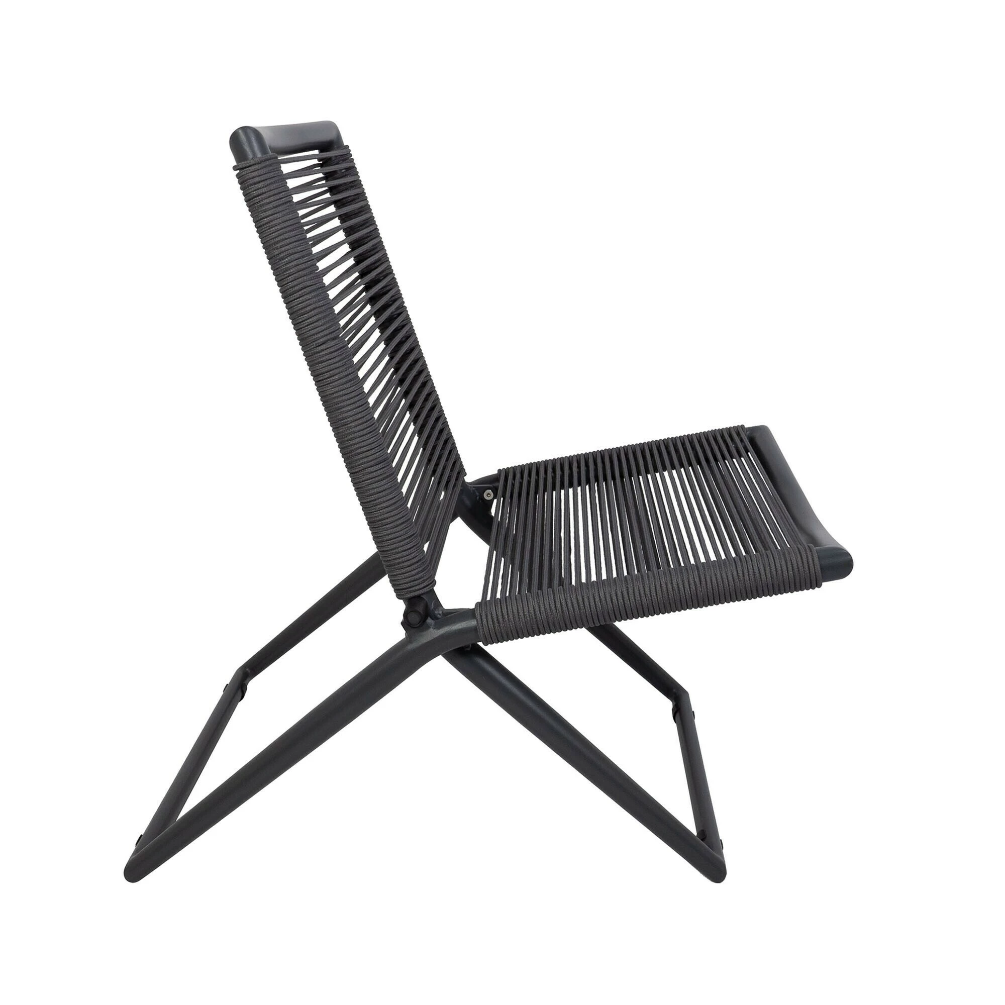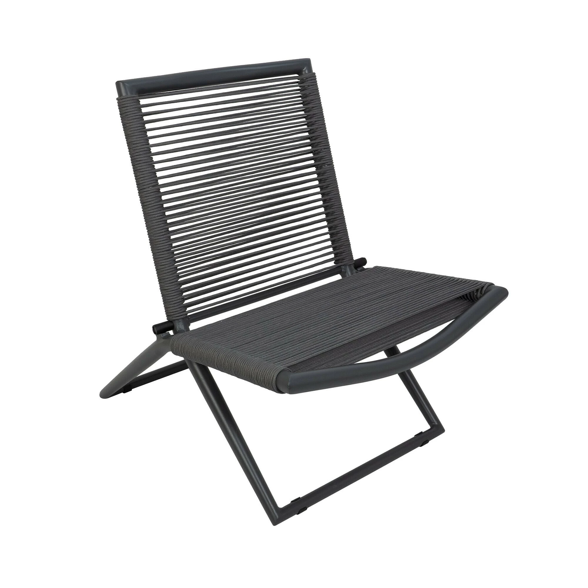 Die elastischen Polyester-Schnüre des Neo Lounge Gartenstuhls klappbar erinnern an die hippen Loungestühle aus den 1960er Jahren. Sie sind zwischen die seitlichen Rahmenteile von Sitz und Lehne gespannt und ergeben dadurch flexible Flächen, die sich exakt an den Körper anpassen. Der zweigeteilte – und dadurch zusammenklappbare – Rahmen des Designstuhls besteht aus pulverbeschichtetem Aluminium. Er wirkt gegenüber dem Original von anno dazumal robuster. Dafür sorgt die auffällig breite Dimensionierung der Rundstäbe. Biegungen an der vorderen Sitzkante sowie dem oberen Rand der Rückenlehne versprechen einen komfortablen Sitz. Der dunkle Farbton von Rahmen und Bespannung hebt sich gut vom Grün des Gartens ab und passt ebenso zu hellem Stein oder terrakottafarbenem Klinker auf der Terrasse. Dank seiner hochwertigen Kunststoffgleiter steht der Neo Lounge Gartenstuhl klappbar auch auf glatten Böden stabil.