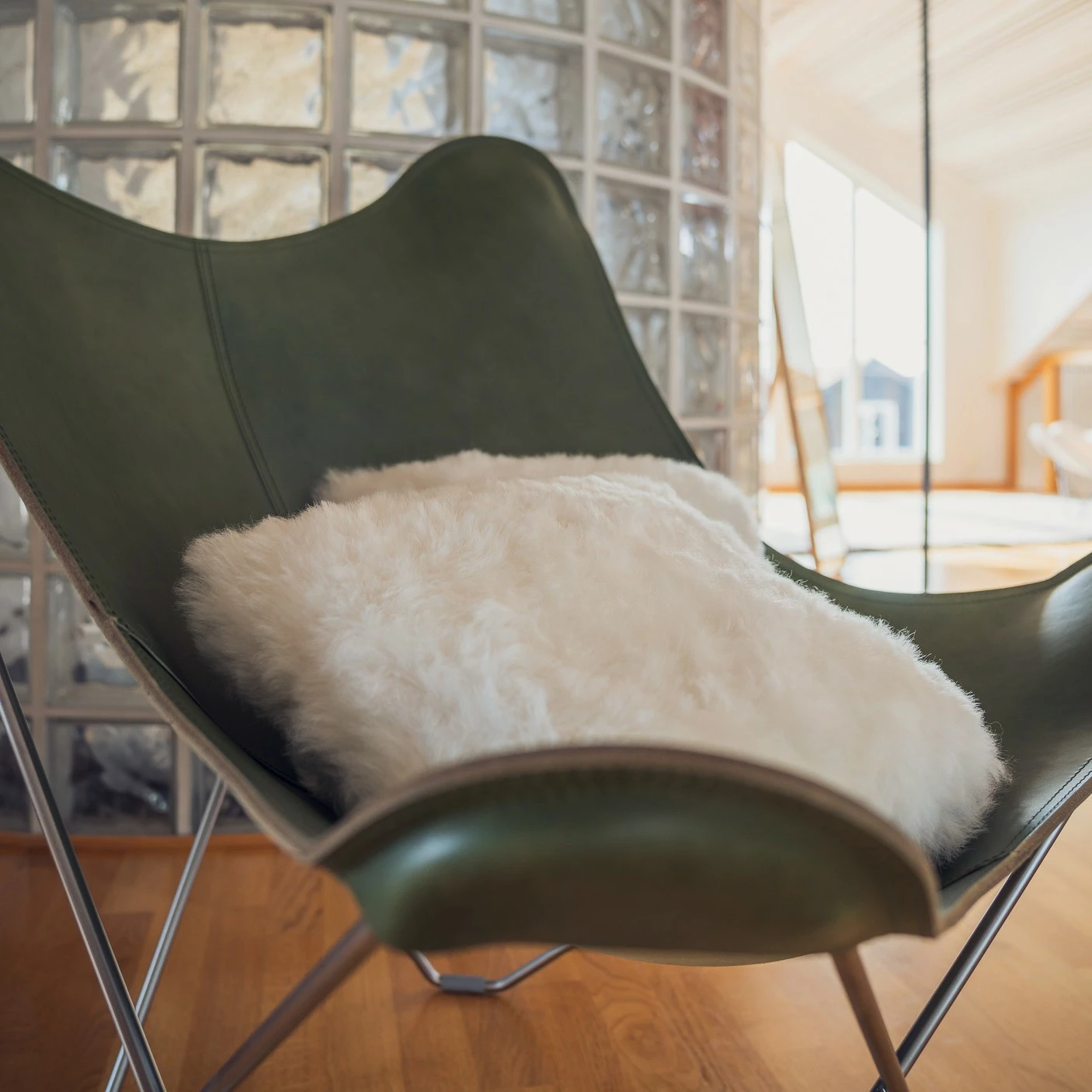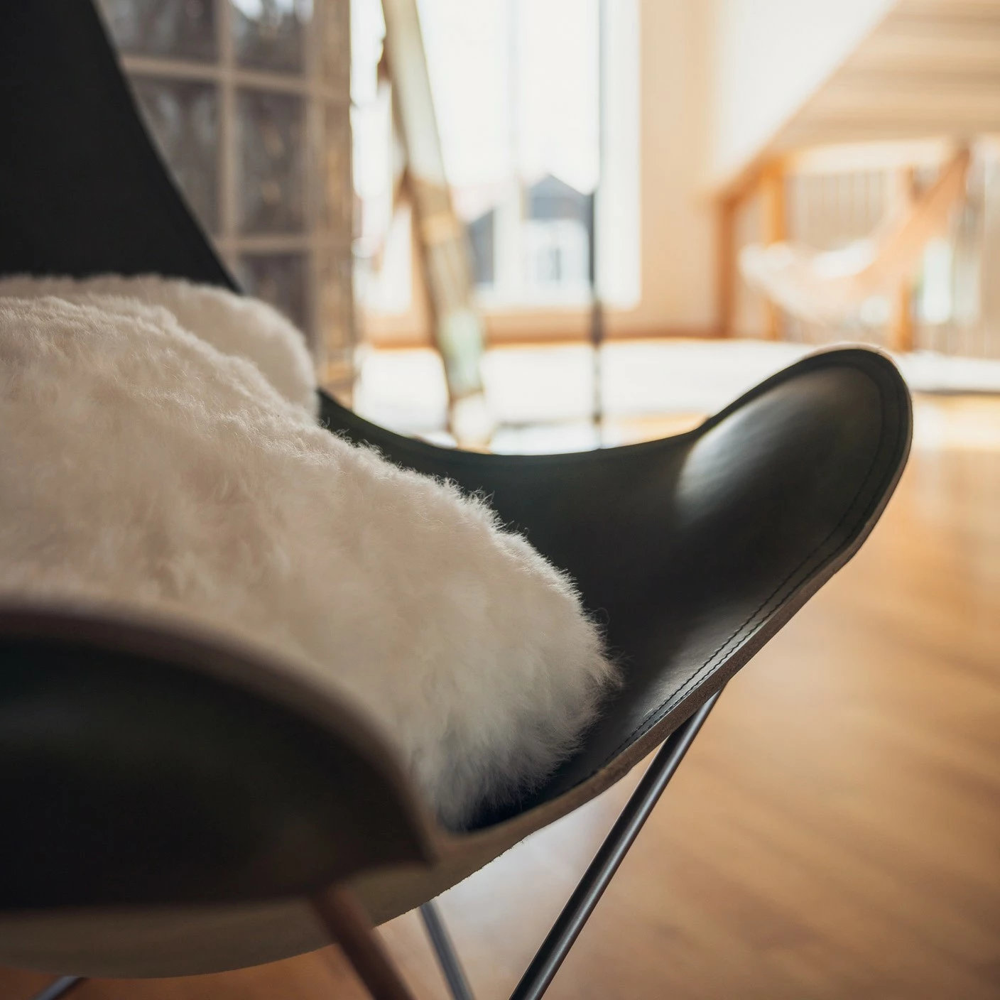 Auch heute ist der Mariposa Butterfly Chair Leder farbig ein beeindruckendes Möbelstück, das sich durch seine klare Linienführung und dem minimalistischen Design sehr gut mit anderen Möbeln kombinieren lässt. Doch nicht nur wegen seines modernen Designs erfreut sich der Butterfly Chair heutzutage wieder großer Beliebtheit: Die große Sitzfläche bietet viel Platz zum gemütlichen Sitzen – genau dieser Aspekt galt in den 50er Jahren als revolutionär und war eine absolute Neuheit. Das hochwertige, Leder der breiten Sitzfläche wurde offenkantig vernäht und ist somit sehr robust. Das filigrane Gestell aus pulverbeschichteten Rundstahlstäben steht im Kontrast zu der Natürlichkeit des Leders und unterstreicht den industriellen, minimalistischen und modernen Charme des Mariposa Butterfly Chair mit seiner Ledersitzfläche.