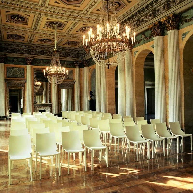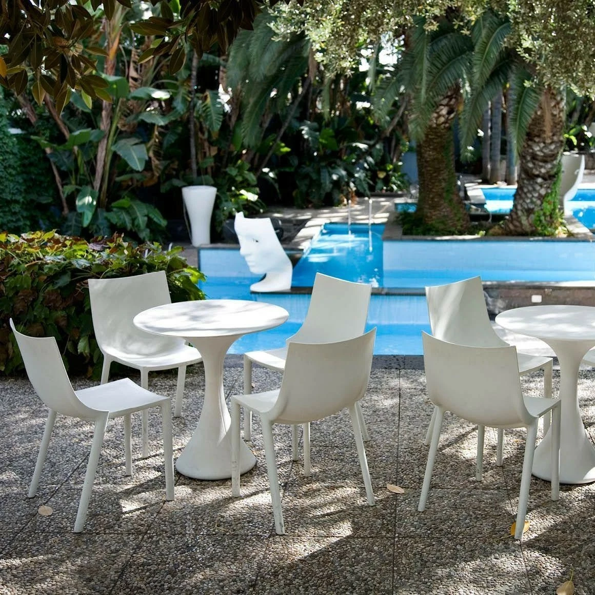 Der Bo Gartenstuhl wurde von Philippe Starck für die Marke Driade entworfen. Er ist ein Meisterwerk schlichten Designs, das für den Innen- und Außenbereich geeignet und dazu überaus bequem zum Sitzen ist.