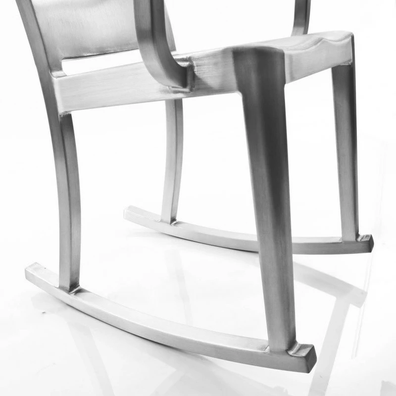 Emeco steht für absolute Spitzenqualität sowie für hervorragende Nachhaltigkeit und verspricht die Lebensdauer eines Stuhles von 150 Jahren. In 70 Schritten und aus 80% recyclebarem Aluminum wird ein Hudson Rockinghandgefertigt. Die Hudson Rockings sind wahlweise aus purem gebürstetem oder poliertem Aluminium erhältlich.