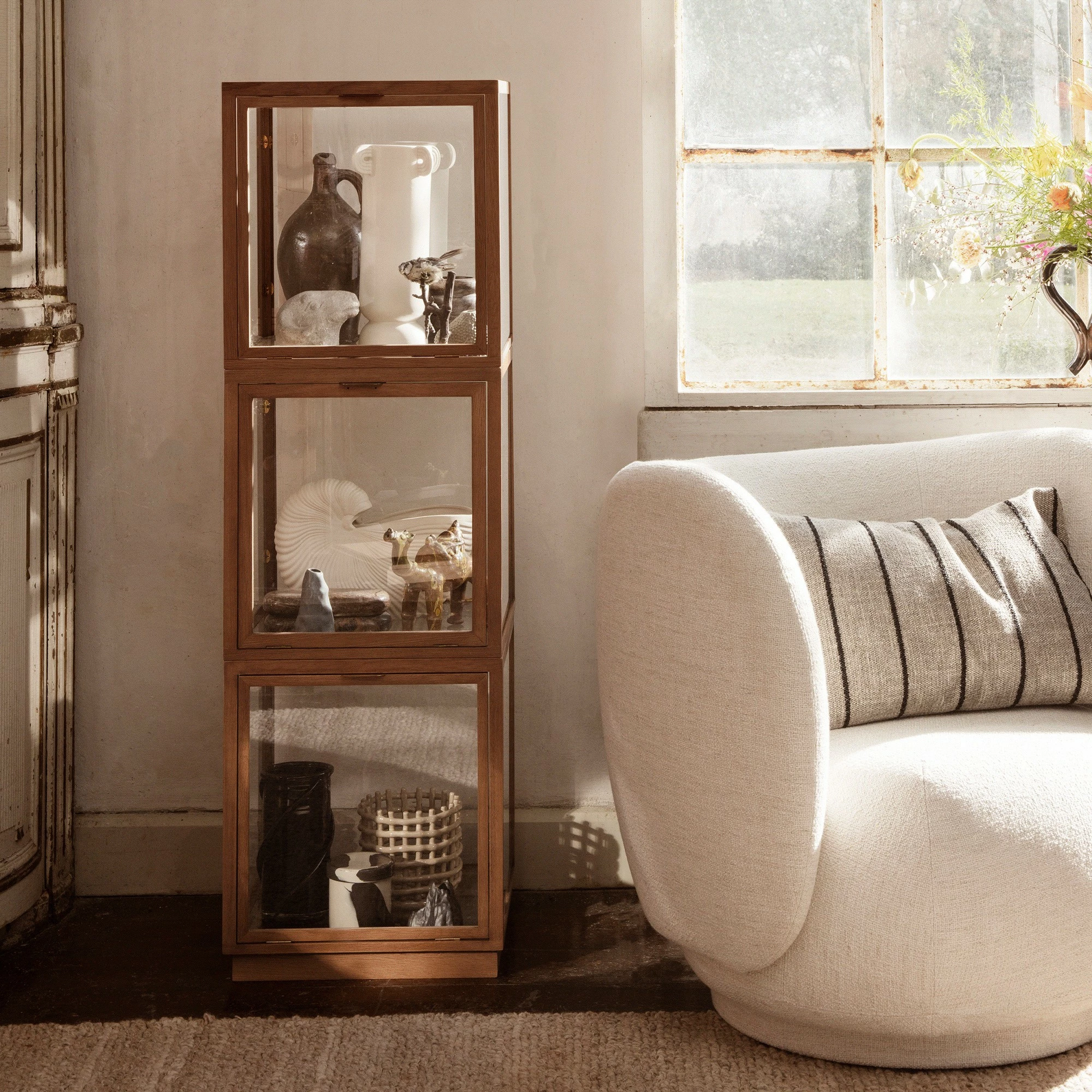 Das Miru Glasvitrine 3er Set wurde für die Marke ferm LIVING entworfen. Dabei handelt es sich um ein wandelbares System, das Dekorationsartikel perfekt in Szene setzt.