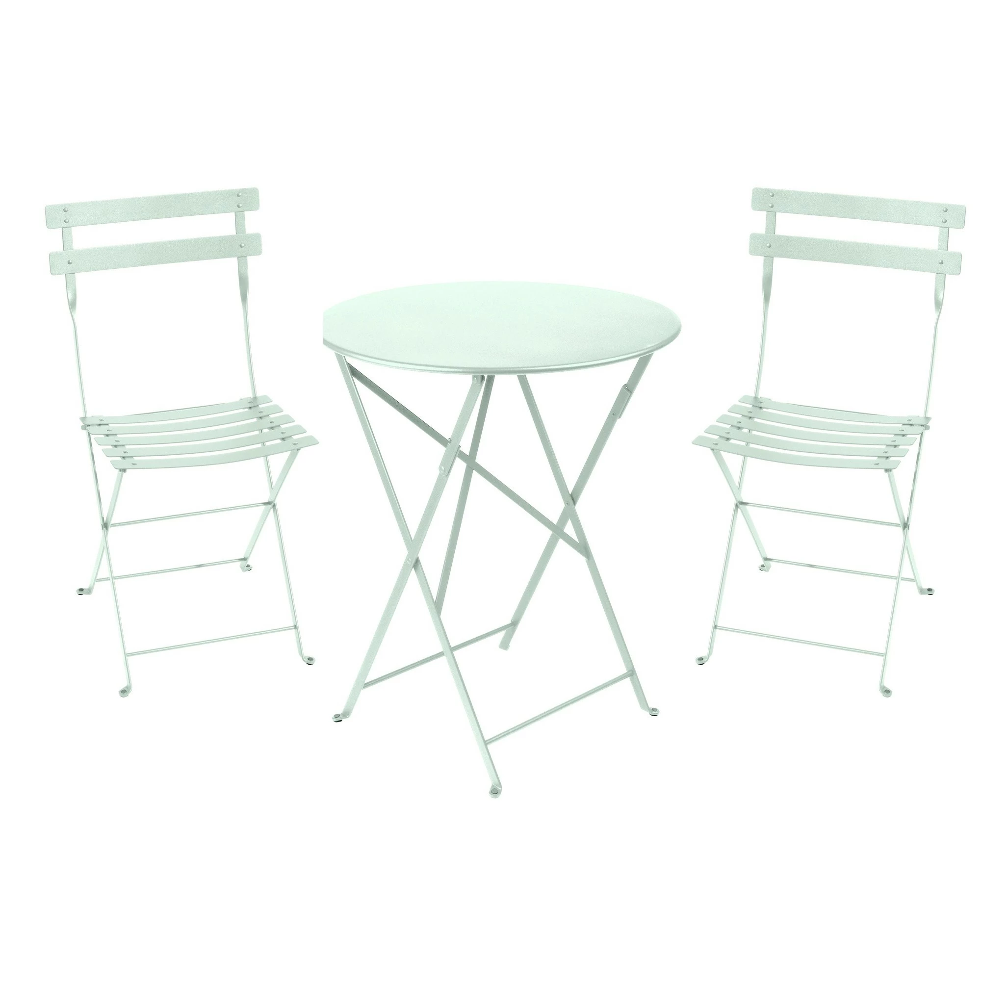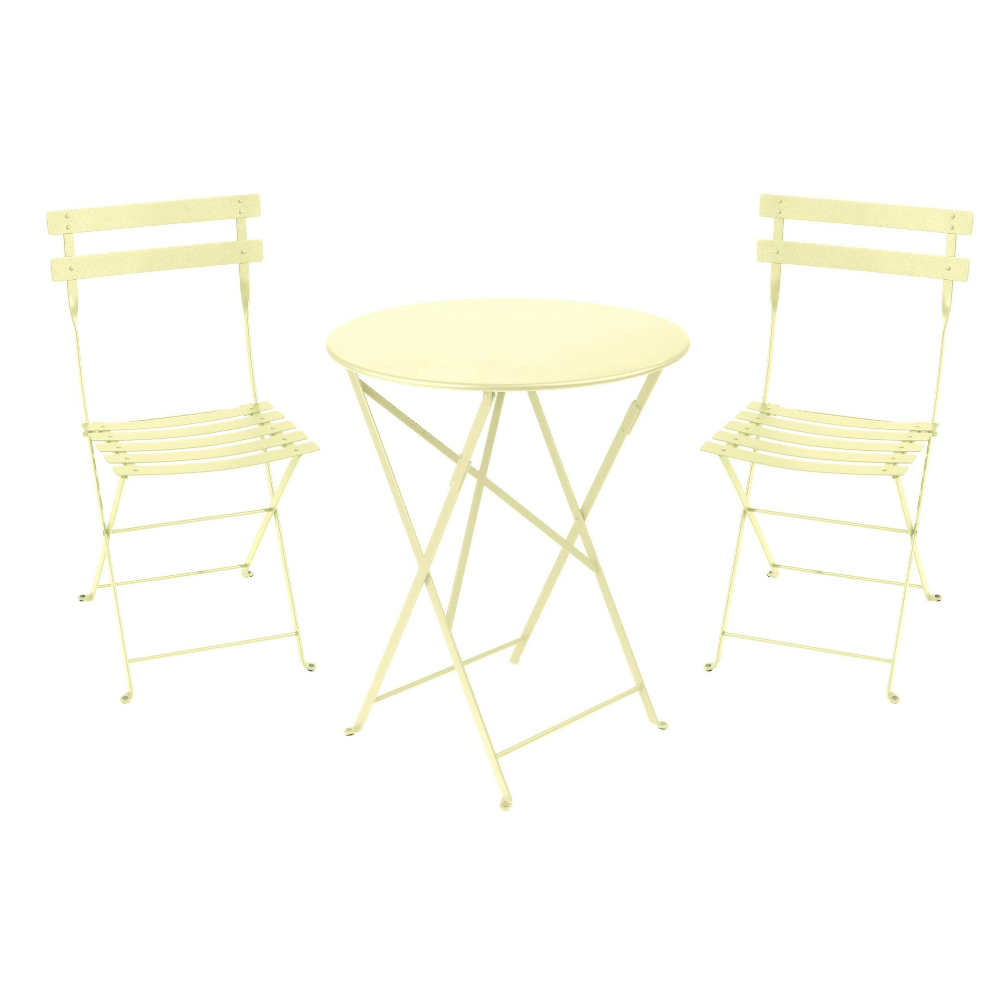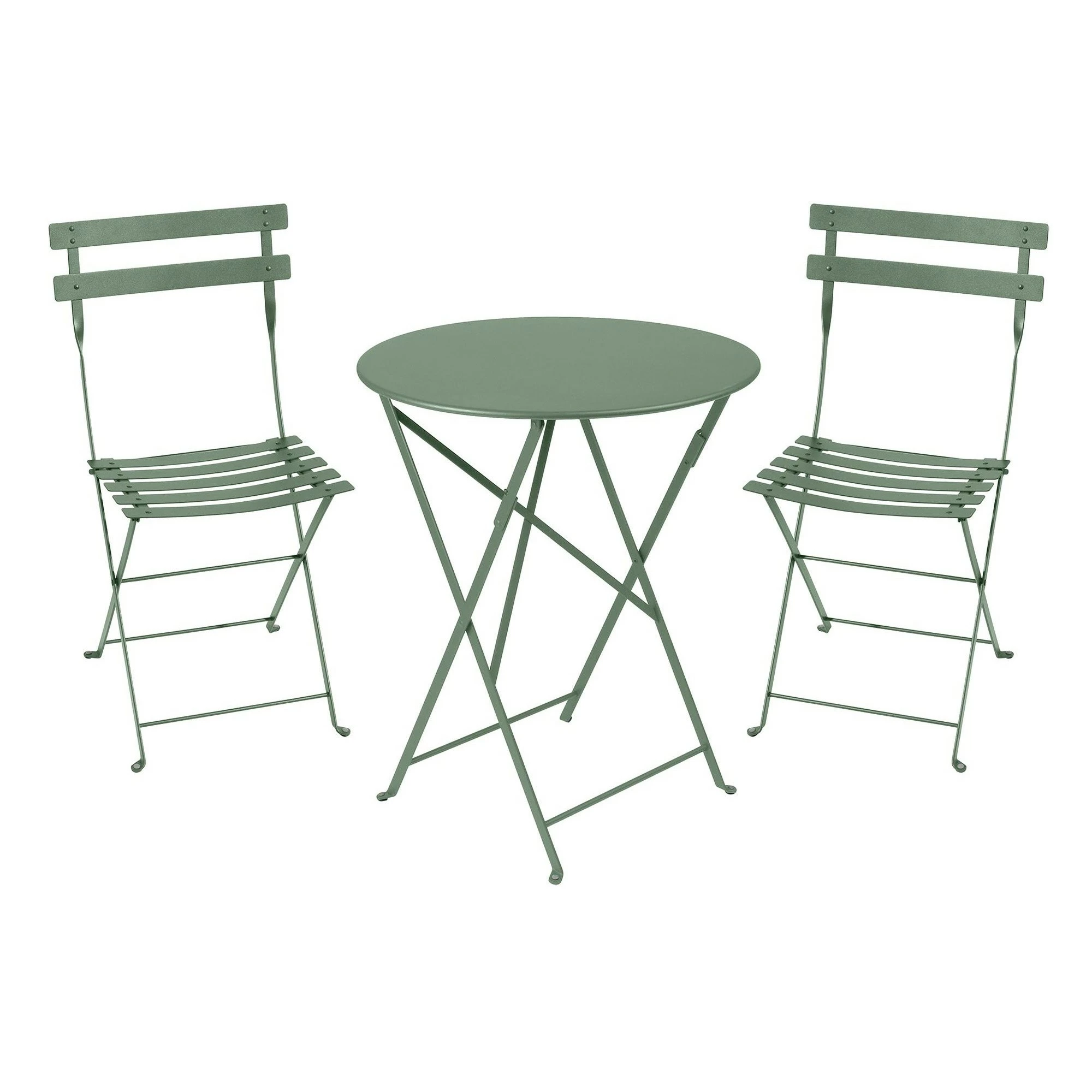 Das klassische Bistro Metall Garten-Set/Outdoor-Set von Fermob besteht aus zwei Bistro Metall Klappstühlen und einem runden Klapptisch aus der klassischen Bistro Serie, mit einem Durchmesser von Ø 60 cm.
