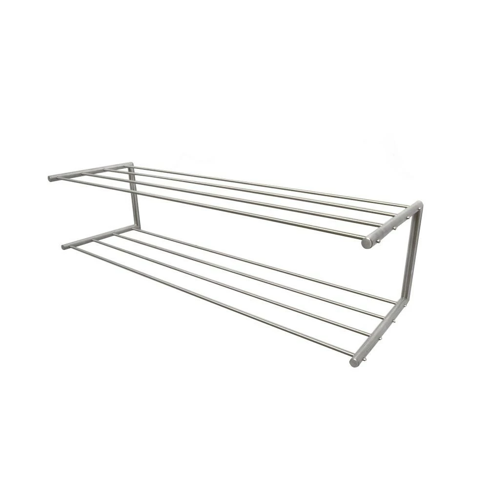 Sie können das Nova Schuhregal 100cm von Frost in verschiedenen Größen und mit unterschiedlichem Finish bestellen. Wählen Sie zwischen robustem Edelstahl in gebürsteter oder polierter Ausführung. Die Regalteile sind 25 cm hoch und 30 cm tief. Die breitere Variante misst 100 cm, die kleinere hat eine Breite von 60 cm. In passenden Abmessungen können Sie aus der Serie Nova auch Wandgarderoben erwerben. Zusätzlich finden Sie in dieser Kollektion attraktive Garderobenständer, Kleiderhaken und Accessoires für das Bad.