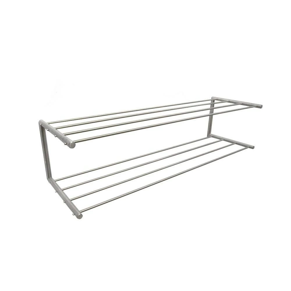 Montieren Sie das Nova Schuhregal 100cm in Ihrem Flur, neben der Tür zum Garten oder in Ihrem Ankleidezimmer. In Nasszonen wie Bad, Sauna oder Wellnessoase ist dieses hängende Schuhregal besonders praktisch, da bei der Reinigung keine Möbelfüße im Weg sind.