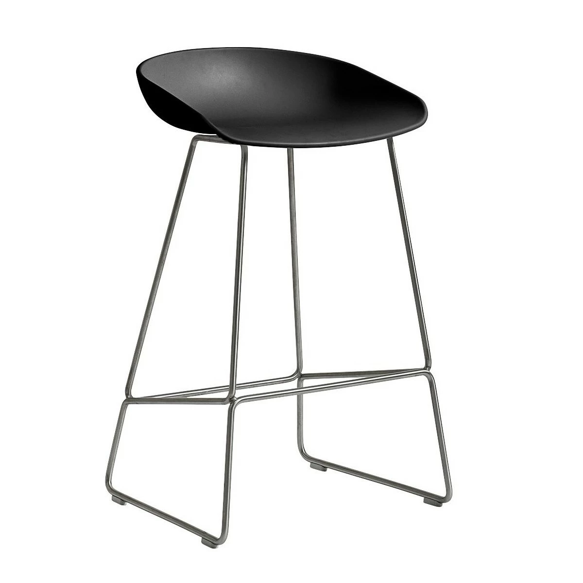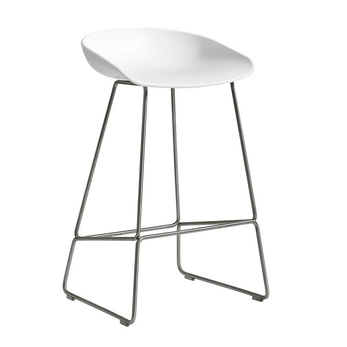 Der About a Stool AAS 38 Barhocker niedrig Gestell Edelstahl wurde von Hee Welling für die Marke HAY entworfen. Er gehört zu einer umfangreichen Kollektion moderner Sitzgelegenheiten, die im typisch nordischen Stil entworfen sind.