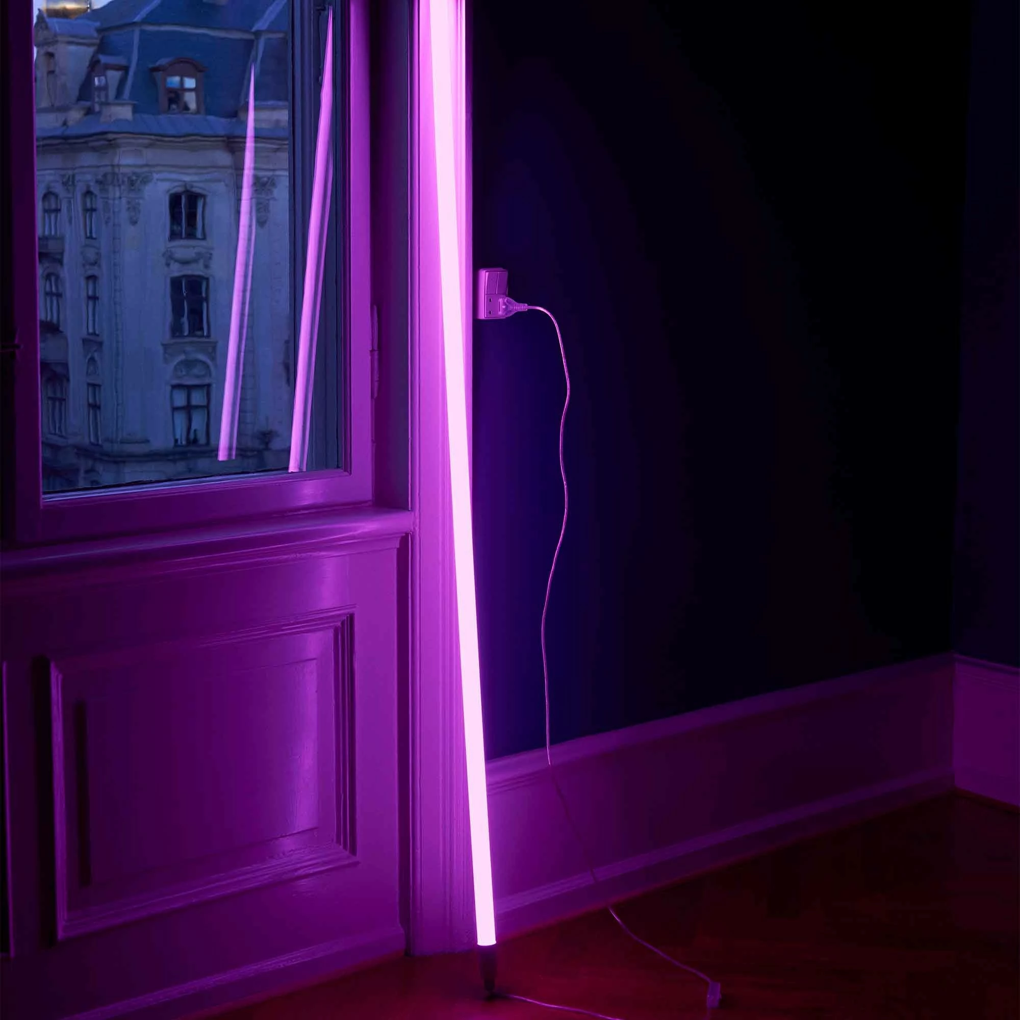 Die Leuchte passt sich perfekt in die Produktpalette des dänischen Innenausstatters ein, der für seine fantasievollen Entwürfe bekannt ist. Das innovative Label bringt immer wieder hochfunktionale Leuchtkörper hervor, die sich für alle Wohnräume verwenden lassen. Zudem eignet sich die Neon Tube LED Leuchte sowohl für den privaten Bereich als auch für öffentliche Gebäude, Büros und die Gastronomie. Die Leuchte zeichnet sich durch ihr schlichtes Design aus. Sie besteht ganz simpel und zurückgenommen aus einer 150cm langen LED Leuchte mit einem Durchmesser von 2,5cm. Geliefert wird jedes Modell mit einem 200cm langen Kabel. Mit der Neon Tube LED Leuchte liegt die Marke nicht nur optisch ganz am Puls der Zeit: Bei der Konzeption der energiesparenden Leuchte wurden Nachhaltigkeit und Klimaschutz mitgedacht. Die Leuchte strahlt jeden Raum flächendeckend aus und ist somit für jede Gelegenheit eine perfekte Lichtquelle. Die Leuchte ist in verschiedenen Farben erhältlich, sodass Sie ganz nach persönlichen Bedürfnissen und Interieur wählen können. Das Modell wird jedem Geschmack und Einrichtungsstil gerecht.