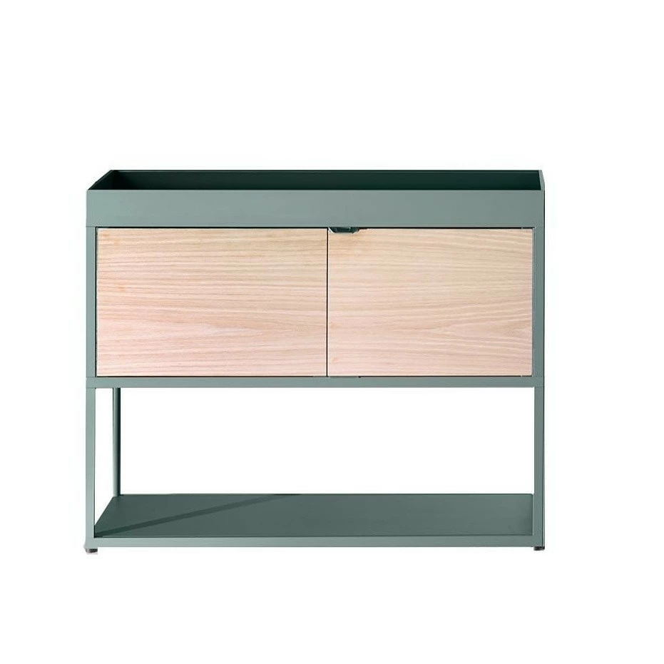 Mit seiner Größe von 100 x 79,5 x 34 cm fügt sich das New Order Regal mit Tür 100×79.5cm formvollendet in seine Umgebung ein. Dabei besticht es mit seiner hohen Materialqualität, dem anachronistischen Formkonzept und der funktionalen Flexibilität. Deutlich zeigt Designer Stefan Diez hier, weshalb seine raffinierte Entwicklung für das Wohnzimmer genau das Richtige für das erfolgsverwöhnte Einrichtungslabel HAY ist. Diese Ausstrahlung verstärkt sich noch, wenn man sich die vielseitigen Produktvarianten anschaut. Hier findet man das New Order Regal mit Tür 100×79.5cm noch in Dunkelgrün, Anthrazit und Hellgrau. Abgerundet wird das edle Aussehen durch Extras wie die aus Aluminium und Holz gefertigten Außenwände. So empfinden Sie mit Freunden und Familie einen völlig neuen Lebenskomfort. Wir wünschen Ihnen viel Spaß beim Wohlfühlen in neuen Design-Welten von HAY.