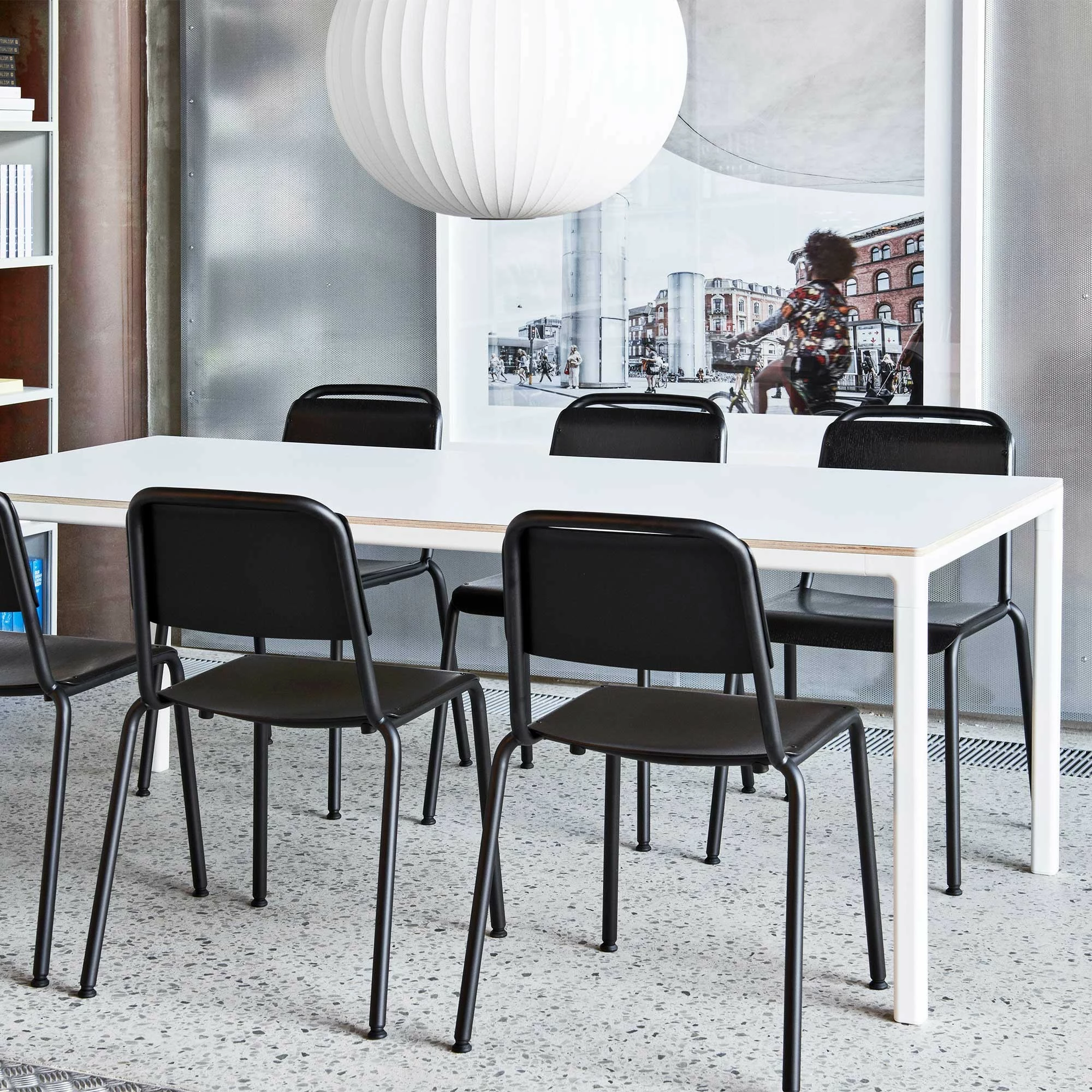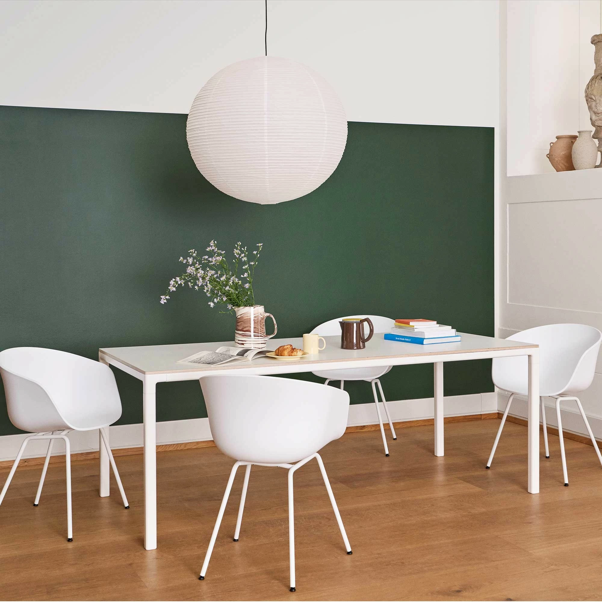 Der T 12 Tisch von HAY kann nicht nur als klassischer Schreibtisch oder Konferenztisch, sondern auch als großzügiger Esstisch verwendet werden und lädt zu kreativen Meetings ebenso ein wie zum gemütlichen Beisammensitzen.