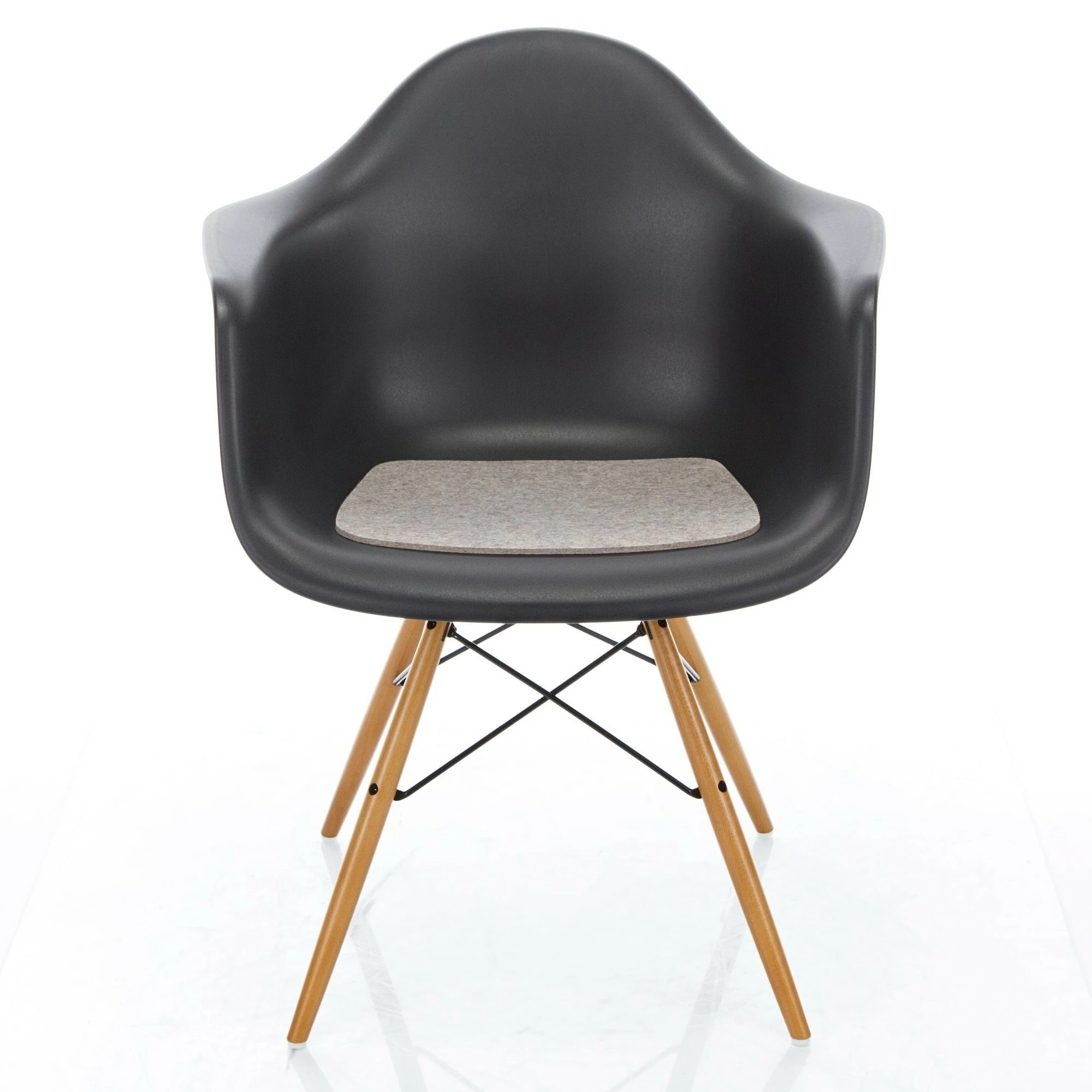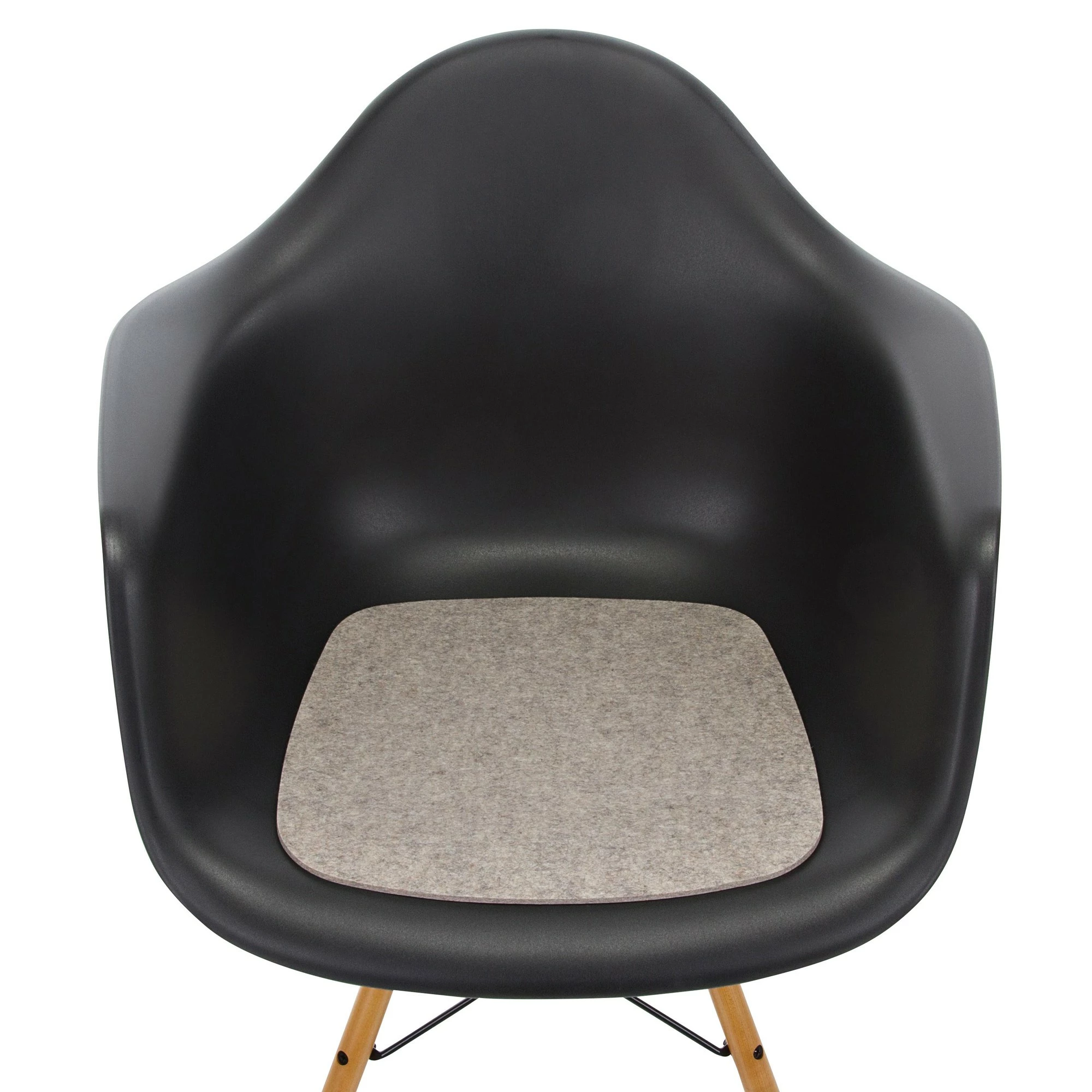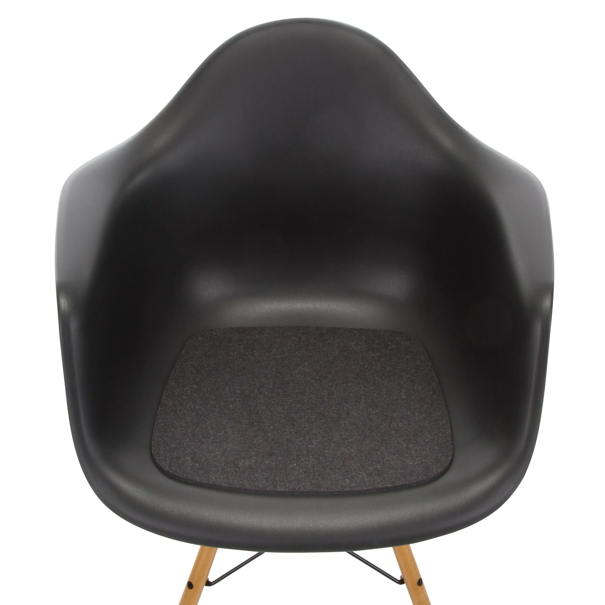 Die 35 cm lange und 37 cm breite Eames Plastic Armchair Sitzauflage passt sich perfekt dem legendären Möbelstück an. Das Naturmaterial Wollfilz, aus dem die Sitzauflage gefertigt wurde, bietet optimalen Komfort beim Sitzen, was seine wärmeleitenden, atmungsaktiven und formbeständigen Eigenschaften unterstützen. Mit der besonderen Beschichtung auf der Unterseite wird ein unangenehmes Verrutschen des Sitzkissens vermieden.