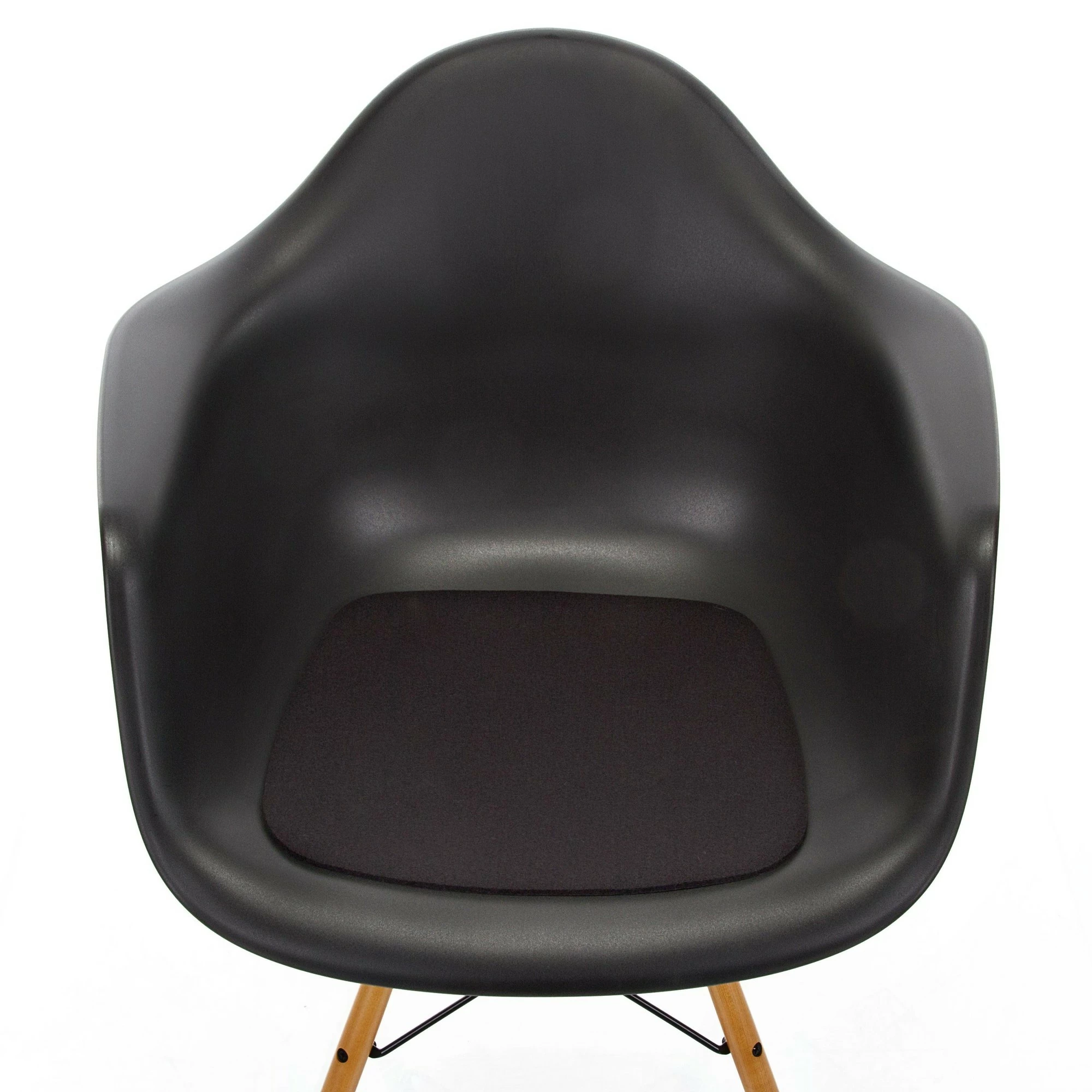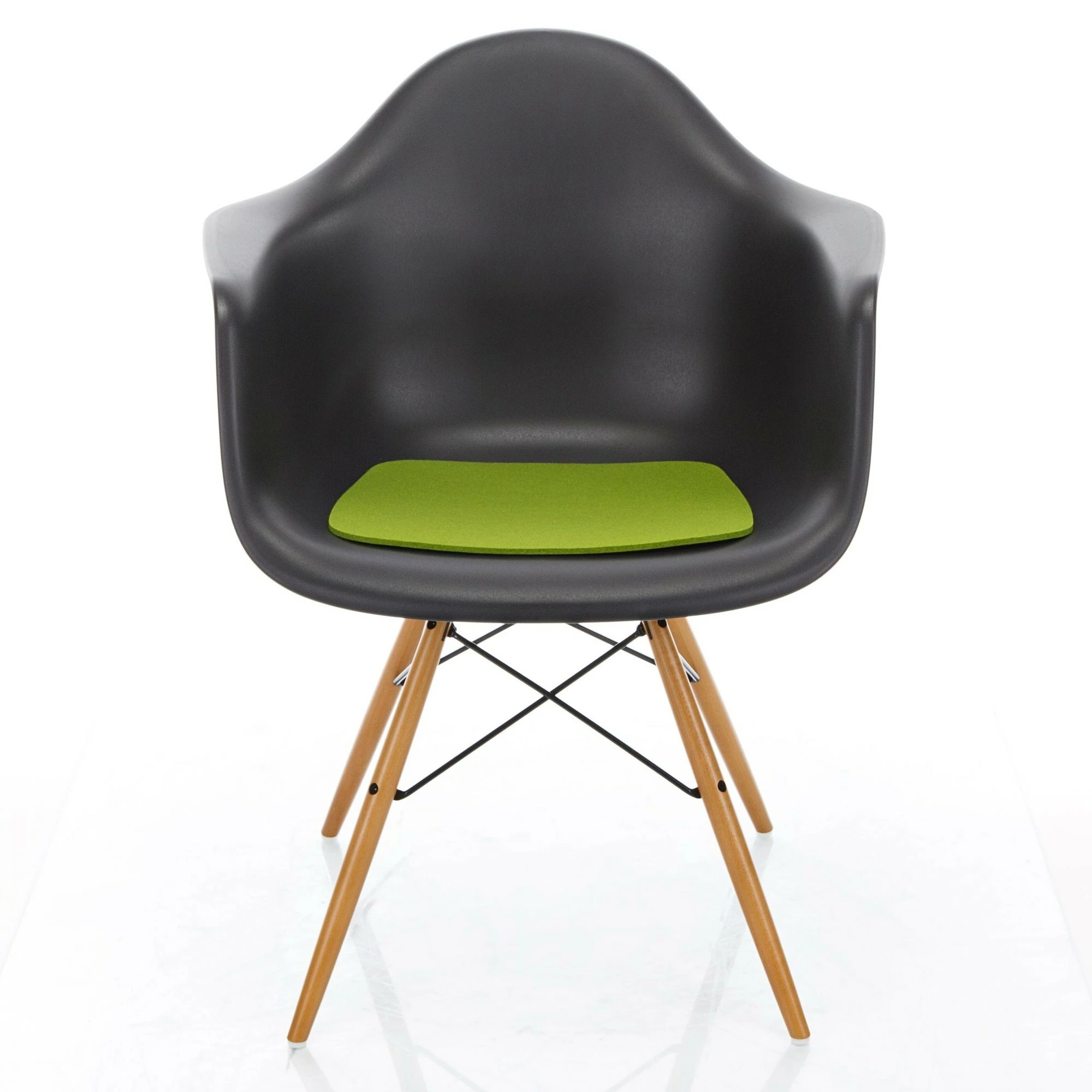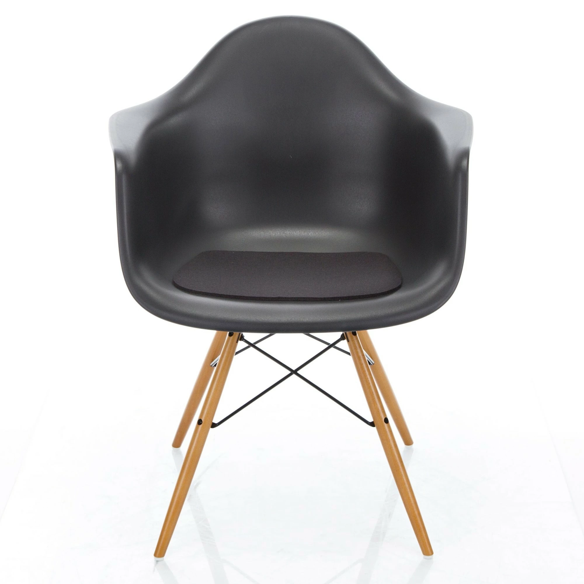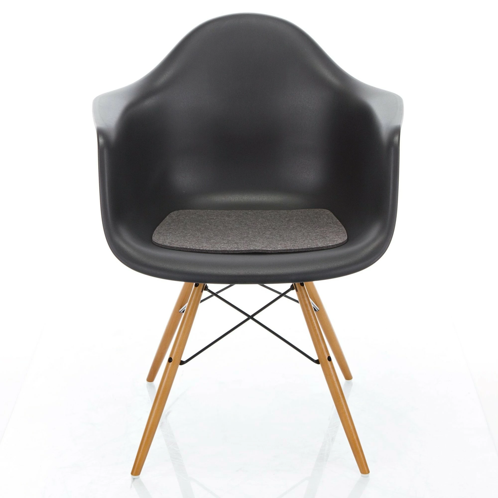 Die 35 cm lange und 37 cm breite Eames Plastic Armchair Sitzauflage passt sich perfekt dem legendären Möbelstück an. Das Naturmaterial Wollfilz, aus dem die Sitzauflage gefertigt wurde, bietet optimalen Komfort beim Sitzen, was seine wärmeleitenden, atmungsaktiven und formbeständigen Eigenschaften unterstützen. Mit der besonderen Beschichtung auf der Unterseite wird ein unangenehmes Verrutschen des Sitzkissens vermieden.