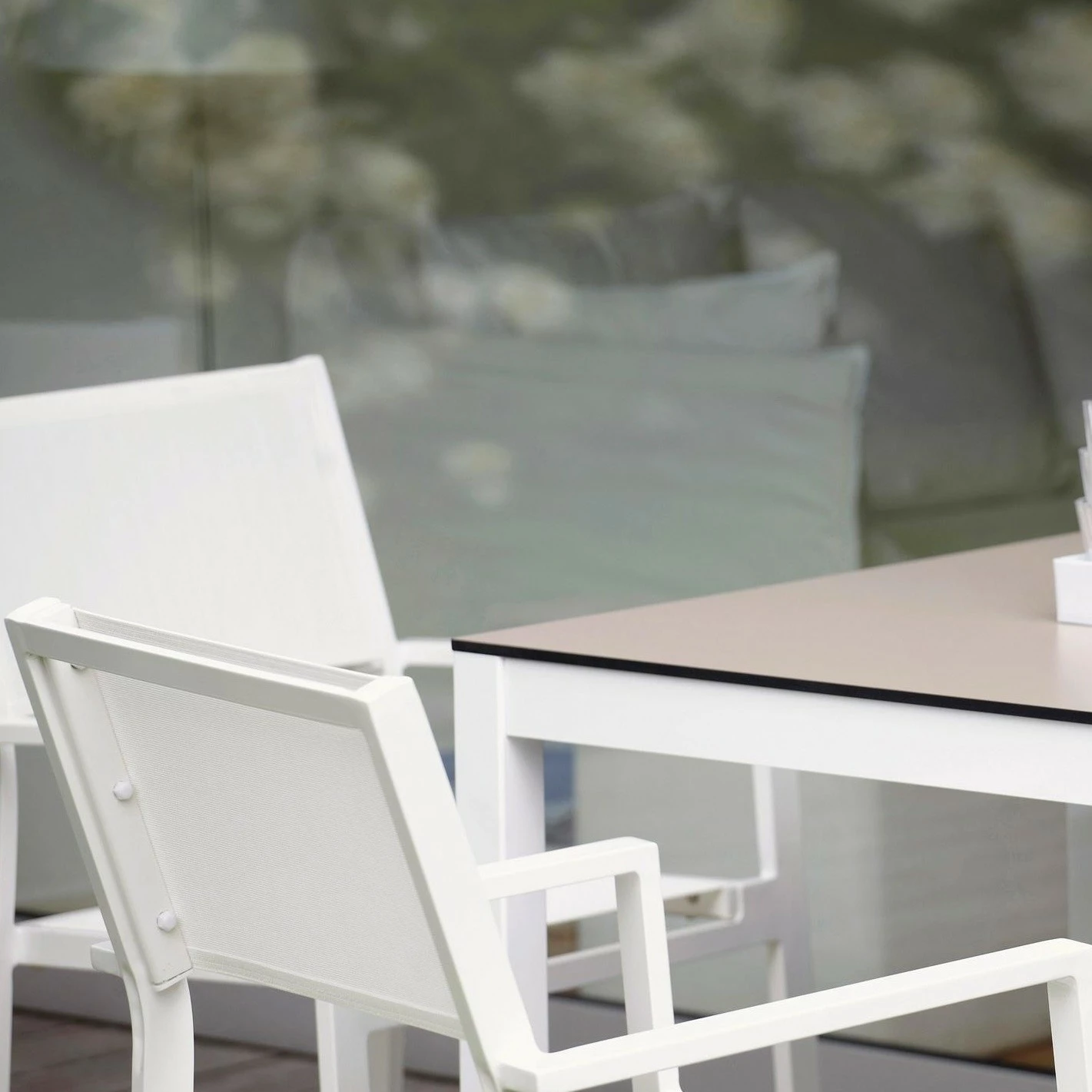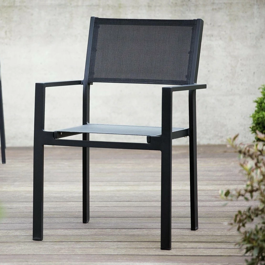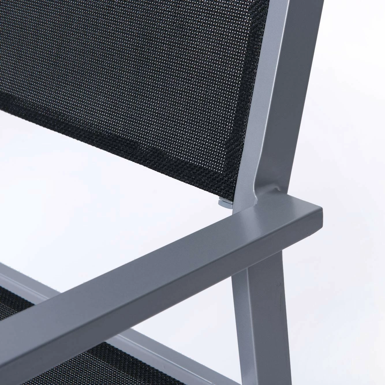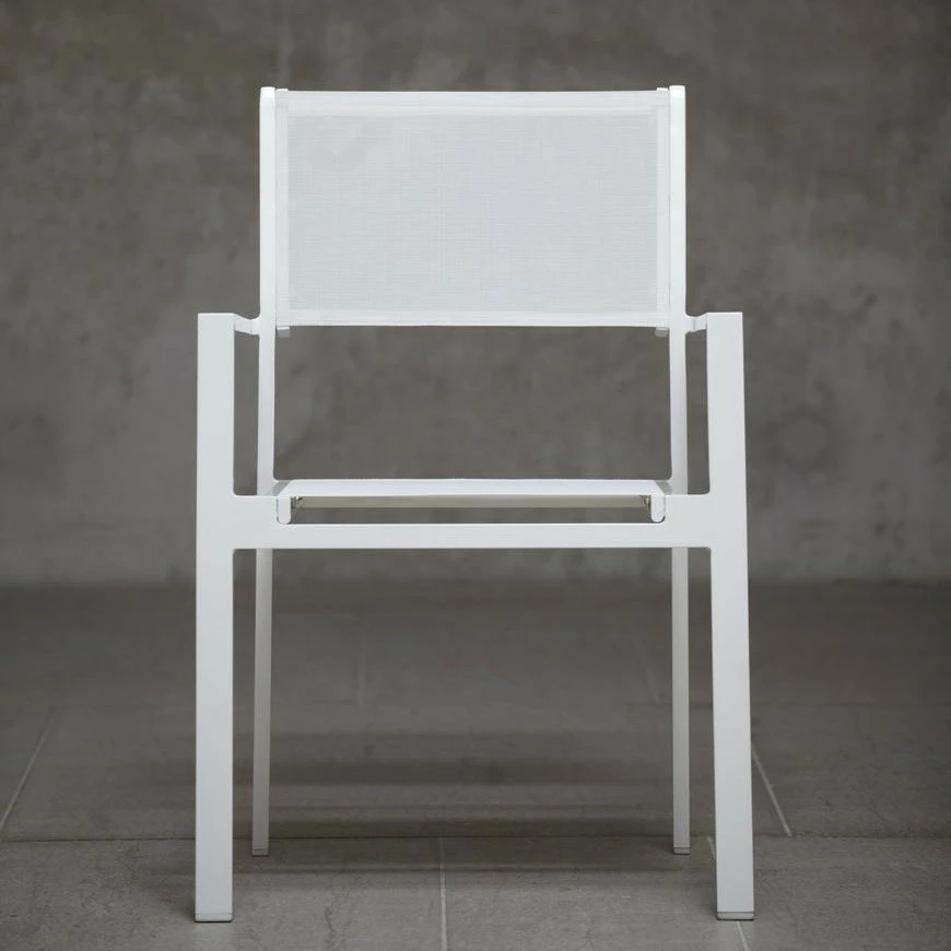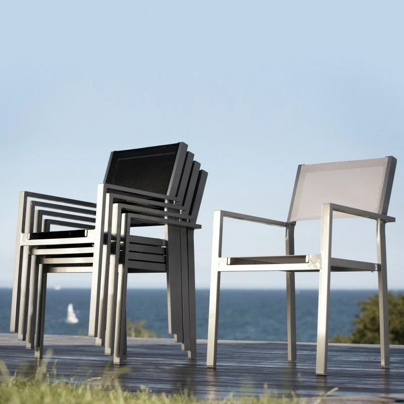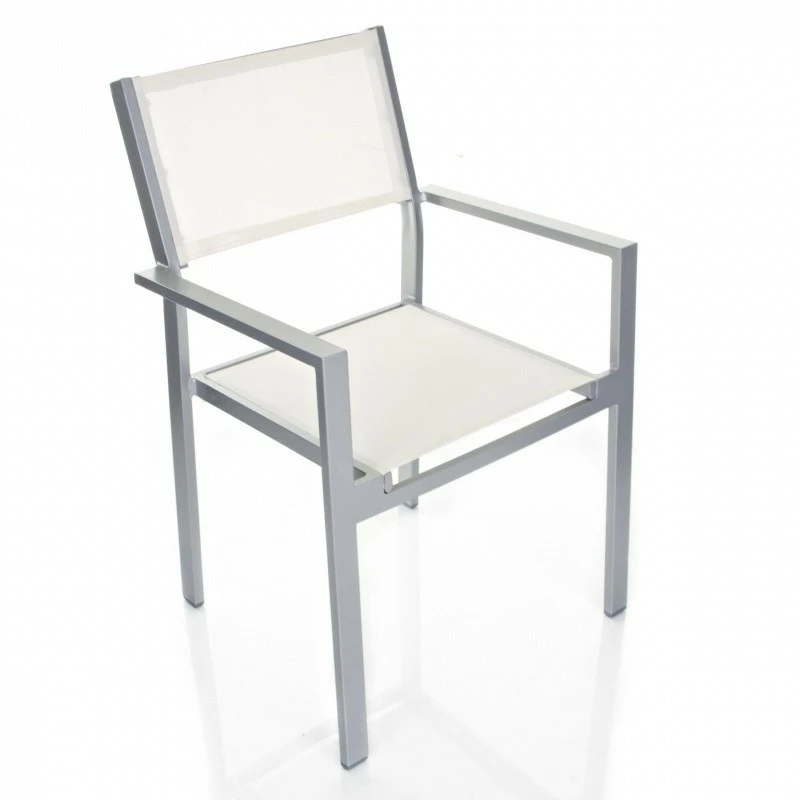 Das Gestell des Cubic Garten-Armlehnstuhls ist aus Aluminium gefertigt. Eine spezielle Lackierung macht den Gartenstuhl besonders wetterfest. Der Bezug des Cubic Gartenstuhls besteht aus Textilene. Dieser Stoff ist besonders luftig und bietet daher auch bei hohen Temperaturen kühlen Sitzkomfort.