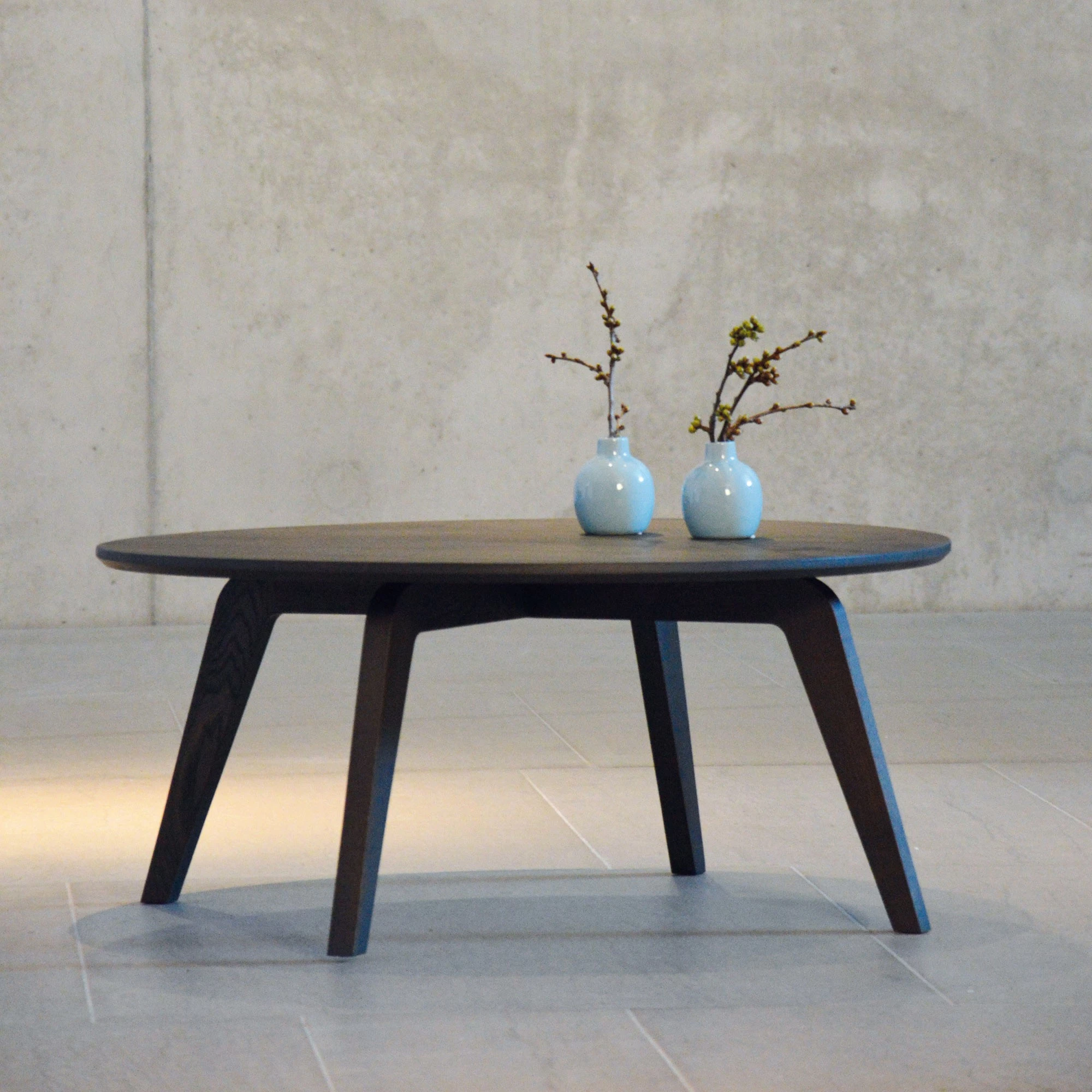 Besonderes Merkmal beim Dweller Beistelltisch/Couchtisch von Jan Kurtz: Die spinnenartig nach außen ausgestellten Tischbeine als Basis für eine runde, solide Tischplatte! Die Kanten des Tisches werden sanft abgerundet, was ihm eine harmonische Optik verleiht.
