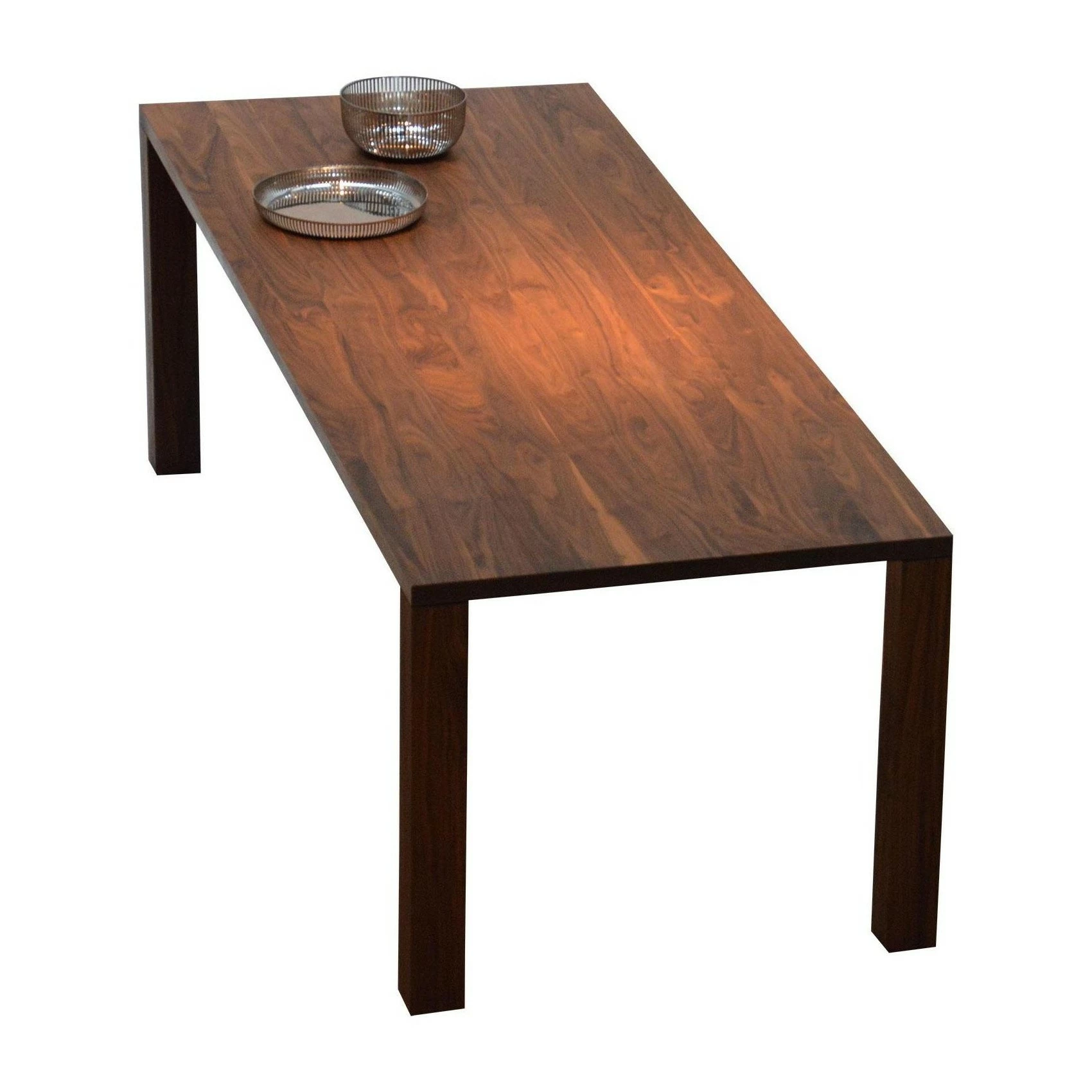 Der Leos Esstisch überzeugt durch sein minimalistisches Erscheinungsbild ebenso wie durch seine Geradlinigkeit und sein robustes Aussehen. Dadurch lässt sich der Esstisch in fast jedes moderne als auch klassische Ambiente integrieren. Die 3,6cm starke Tischlerplatte ist mit hochwertigem Echtholzfurnier in einem aufwendigen Prozess beschichtet worden. Die bodenständige Optik des Holzfurniers bietet zusammen mit der individuellen Maserung eine warme einzigartige Ansicht. Seine Stabilität erhält Leos Esstisch durch seine vier 9 x 9 cm starken Beine. Diese werden separat mitgeliefert. Der Tisch ist in zwei Farbausführungen und verschiedenen Größen erhältlich, wodurch für nahezu jeden Zweck ein passendes Modell zur Verfügung steht. Er ist ideal für den Essbereich, kommt aber auch im modernen Wohnzimmer bestens zur Geltung. Einem gemütlichen Essen mit Freunden und Bekannten steht somit nichts mehr im Wege.