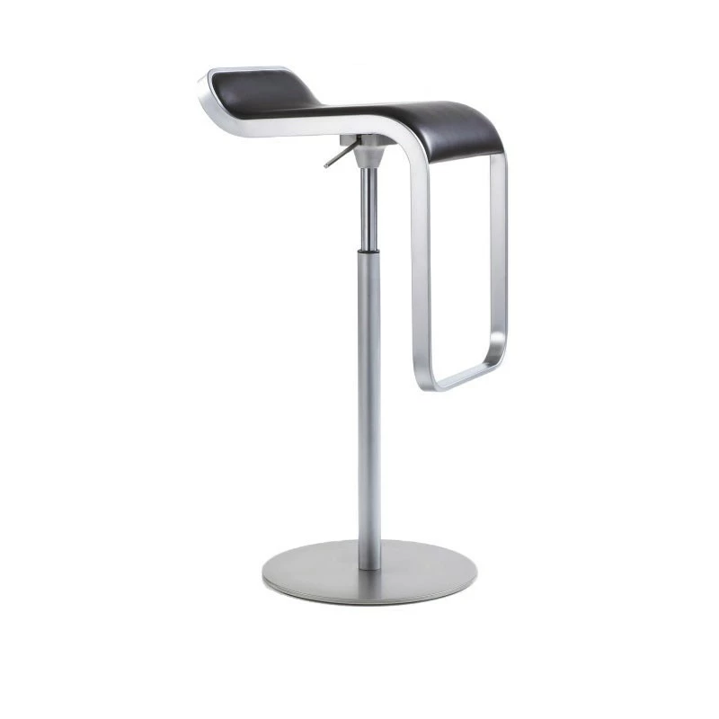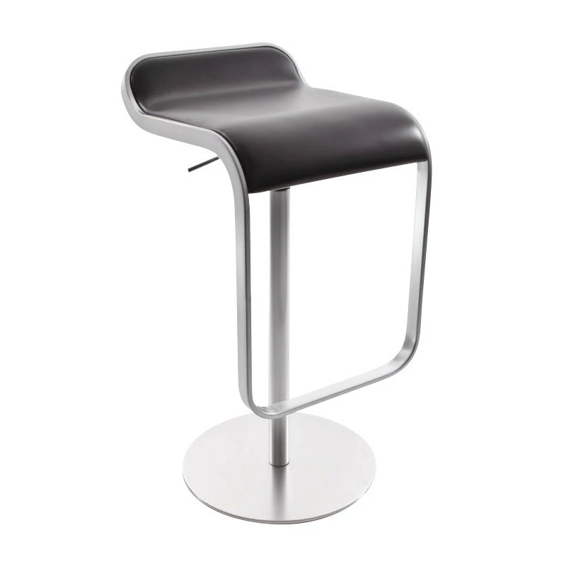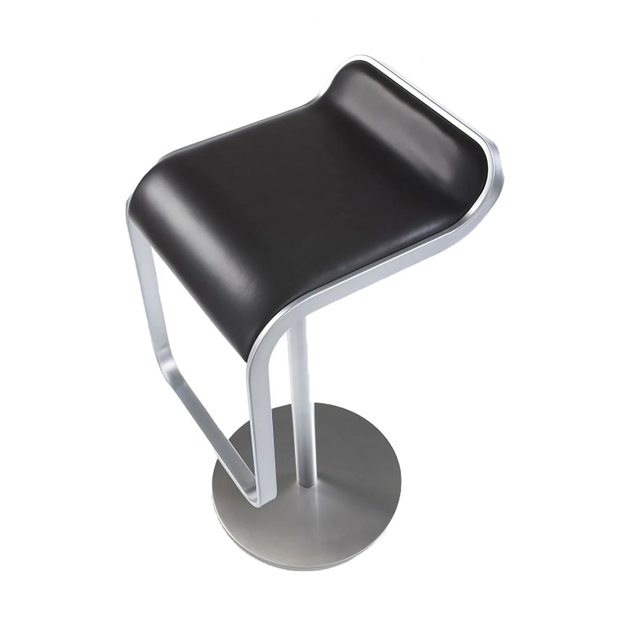 Der glänzende Rahmen, der die Sitzfläche des Barhockers umrundet und vorne eine Fußstütze bildet, wird zum Markenzeichen . Eine mit Edelstahl überzogene Bodenplatte gewährleistet sicheren Stand. Unter der runden Platte sind Filzgleiter montiert. Das Metallgestell ist mit Chrom und Nickel veredelt. Die Sitzschale besteht aus formgepresstem Multiplex. Darüber spannt sich edles Leder aus Kuhhaut, das 2,4 bis 2,5 mm dick ist. Den LEM S80 Barhocker Sitzfläche Leder 66-79cm gibt es in unterschiedlichen Farben.