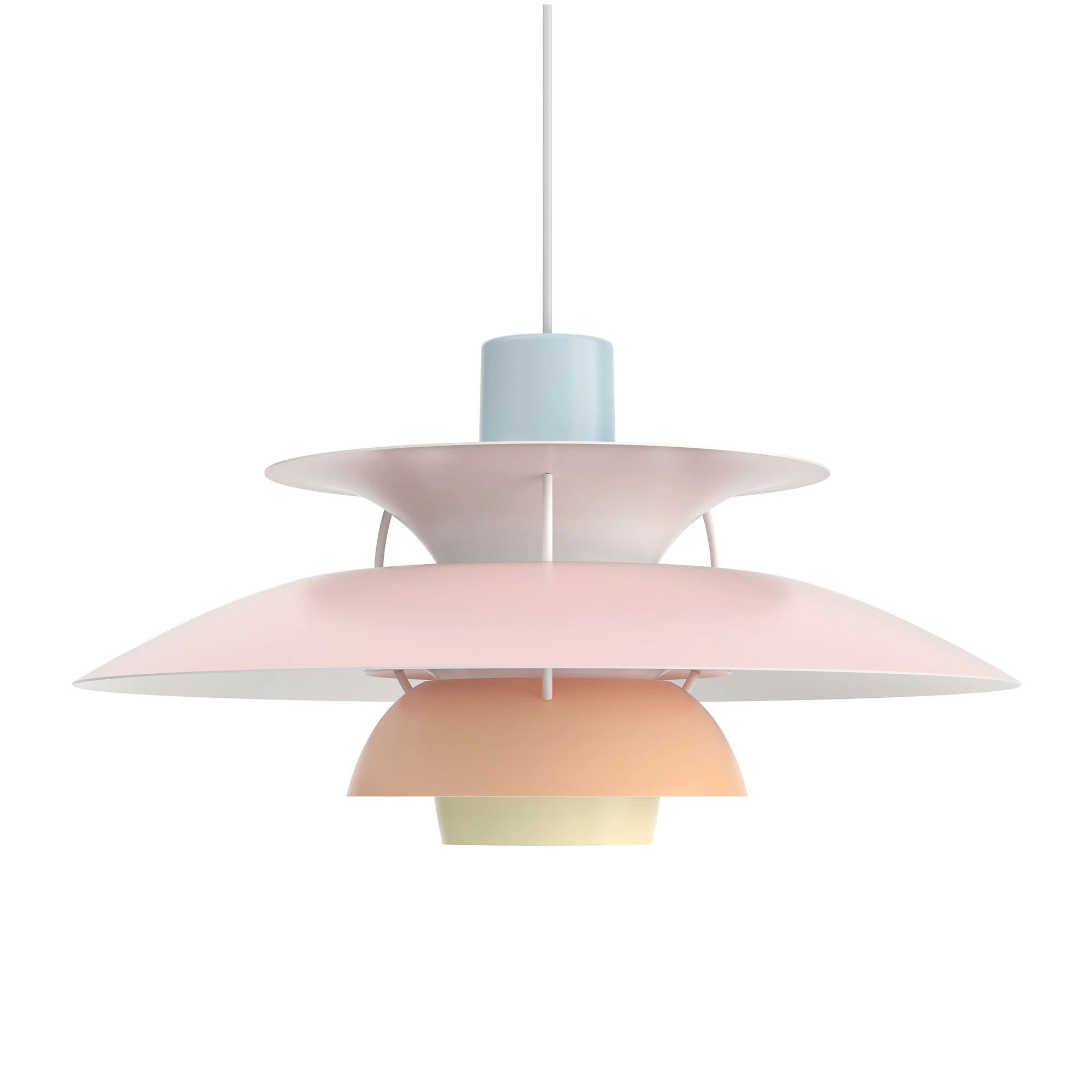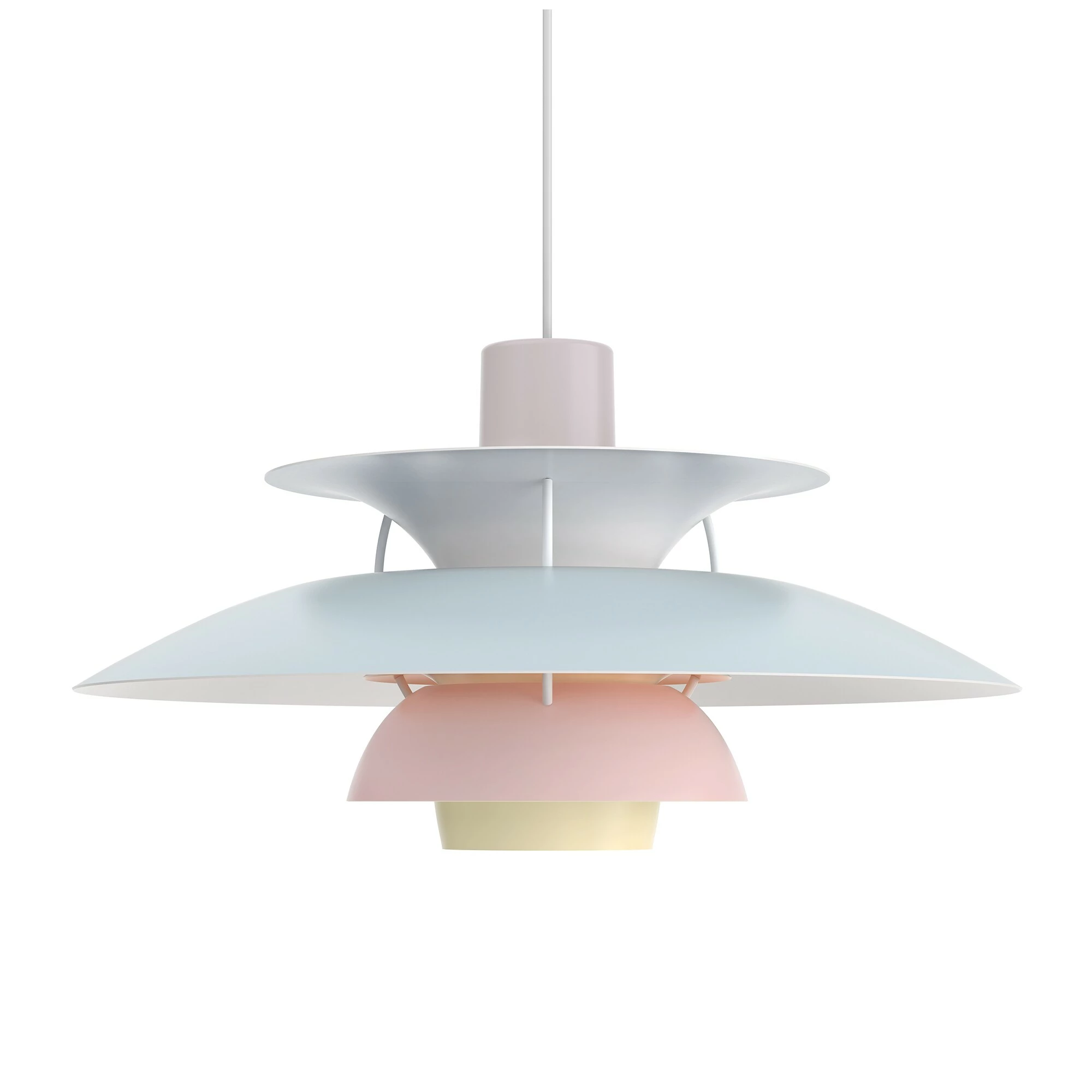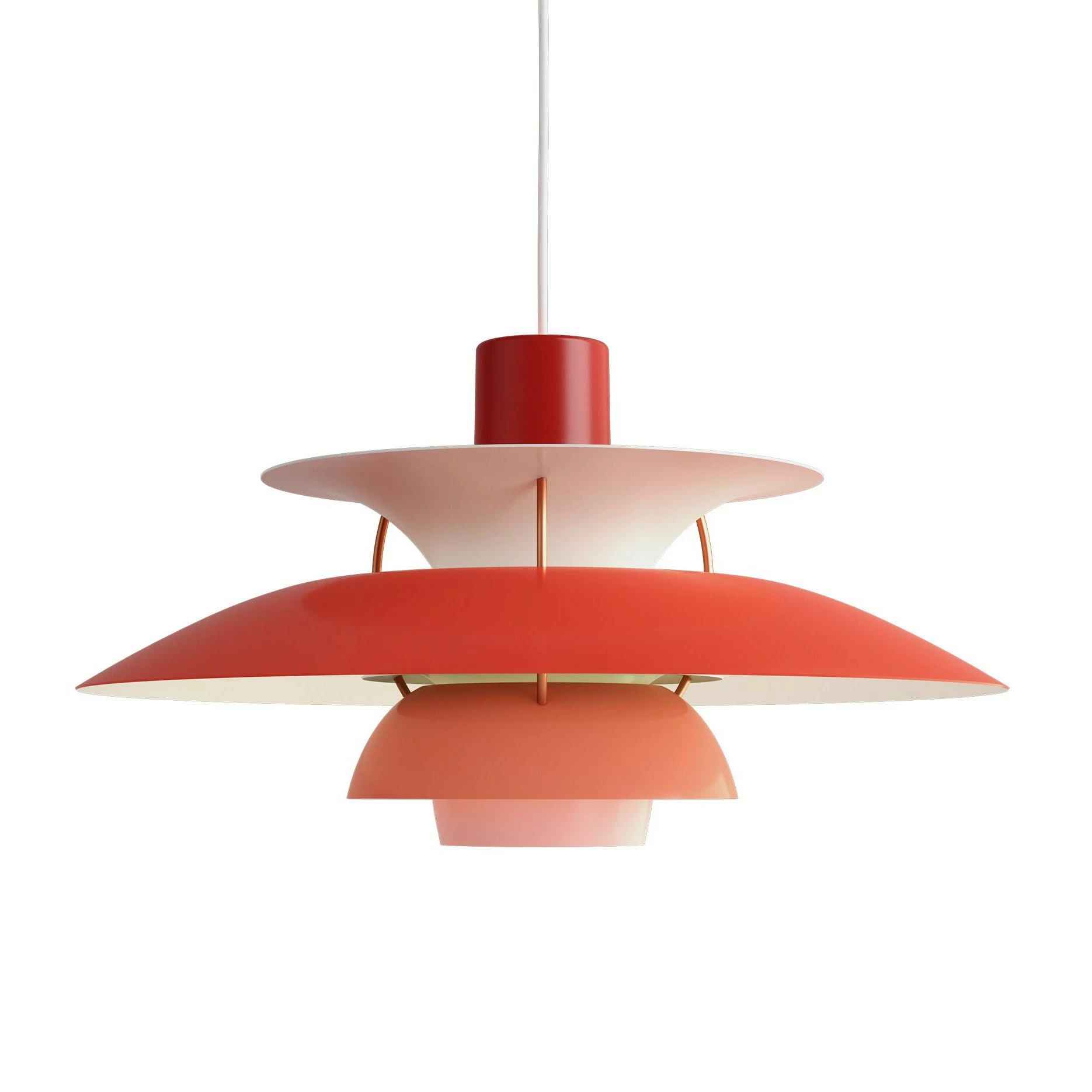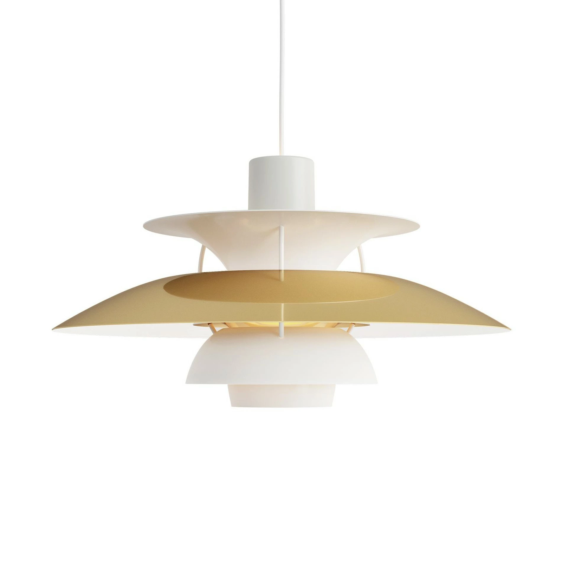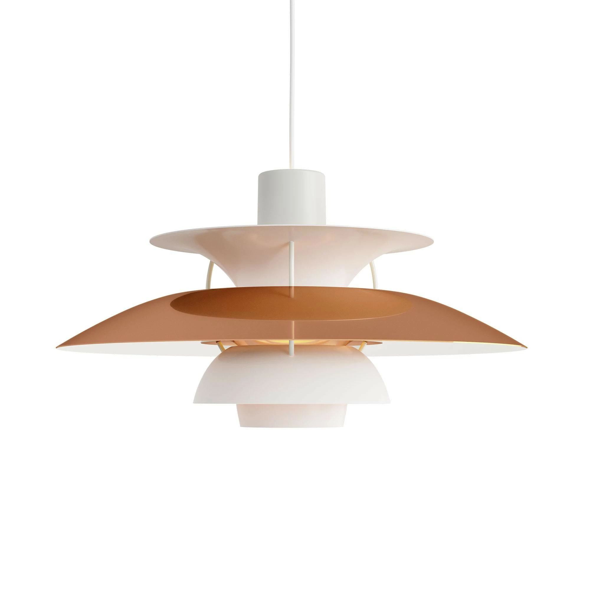 Diese exklusive PH 5 Pendelleuchte mit einem Durchmesser von Ø50cm wurde 1953 von Poul Henningsen für den dänischen Leuchten Hersteller Louis Poulsen entworfen.