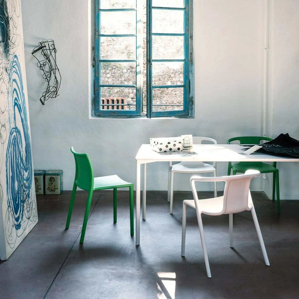 Zu den Vorteilen des Air Armchairs zählen seine geraden Gestaltungslinien und raffinierte Alleinstellungsmerkmale wie die offene Rückenfläche. Hier fühlt man sich auch an warmen Tagen jederzeit wohl beim Sitzen. Das herausstechende Merkmal sind bei der Kreation von Jasper Morrison aber natürlich die nach hinten ausgestellten Stuhlbeine, die dem Stuhl eine besonders dynamische und beinahe schon ein wenig exzentrisch anmutende Stuhlbeine. Sie verleihen dem Design eine ganz eigene organische Anmut. Mit diesem 51 x 53 x 73 cm großen Stuhl von Magis bekommen Sie ein Highlight geboten, das in allen Räumen gut zur Geltung kommt. Ob in Küchen oder Kinderzimmern, überall zaubern diese Stühle ein aus Polypropylen ein Lächeln auf jedes Gesicht. Darüber hinaus sind sie in verschiedenen Farben verfügbar. Es gibt sie nicht nur in Schwarz und Weiß, sondern auch noch in Orange, Grün und anderen Farben.