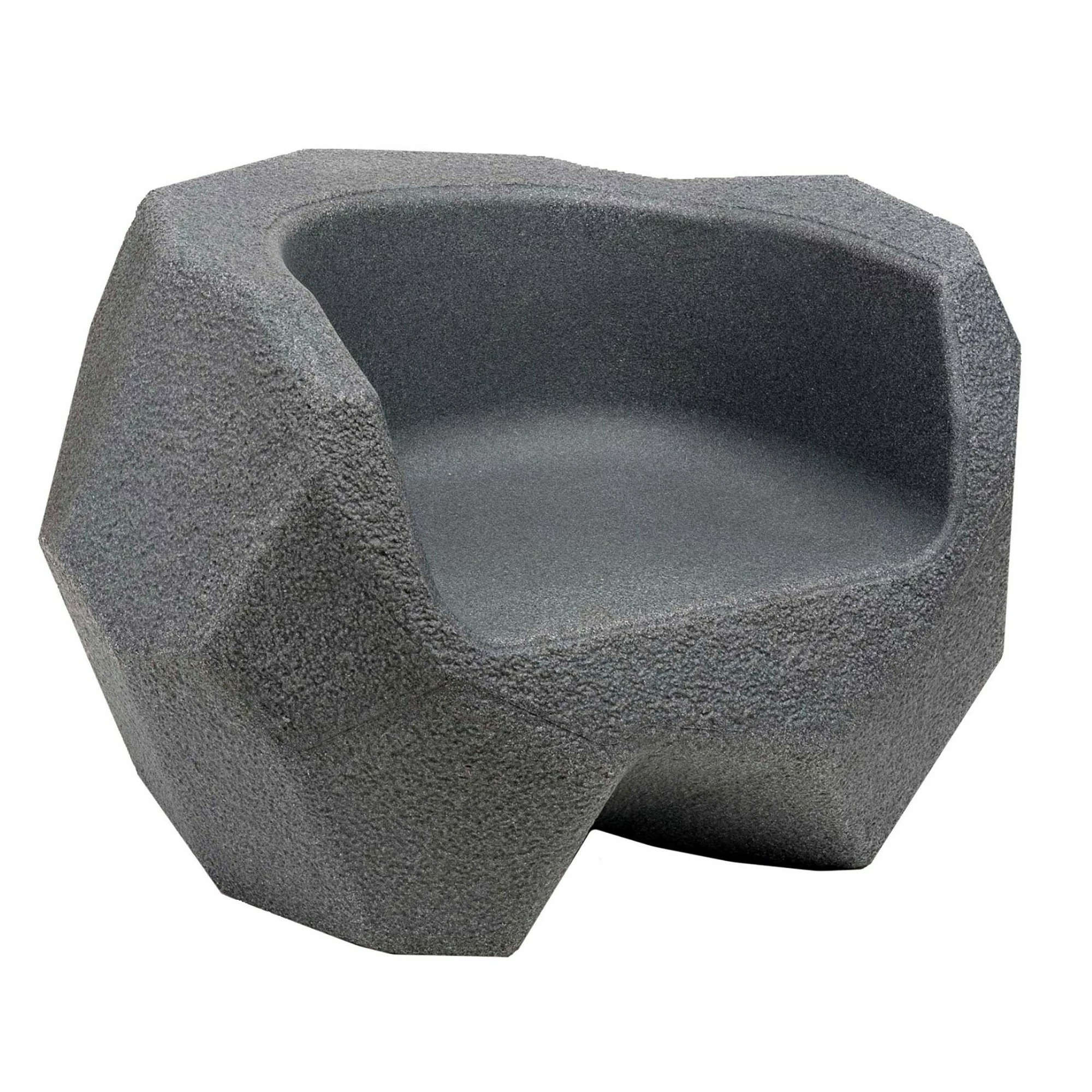 Auf den ersten Blick wirkt der Me Too Piedras Kindersessel wie ein gebrochener Stein, was nicht zuletzt an seiner groben Struktur liegt. Auch die Farbe, ein kräftiges Anthrazit, das an Vulkangestein erinnert, trägt maßgeblich zu seinem einzigartigen Aussehen bei. Ebenfalls außergewöhnlich ist die abstrakte Form des Kunststoffstuhls, die ihn zu einem besonderen Highlight macht. Seine Maße von 73 cm Länge, 60 cm Breite und 47 cm Höhe und die Sitzhöhe von moderaten 25 cm machen ihn zu einem bequemen Sitzmöbel, das außerdem noch ein garantierter Blickfang ist – besonders naürlich im Garten, wo dieser robuste Sessel bestens in die Umgebung integrierbar ist.