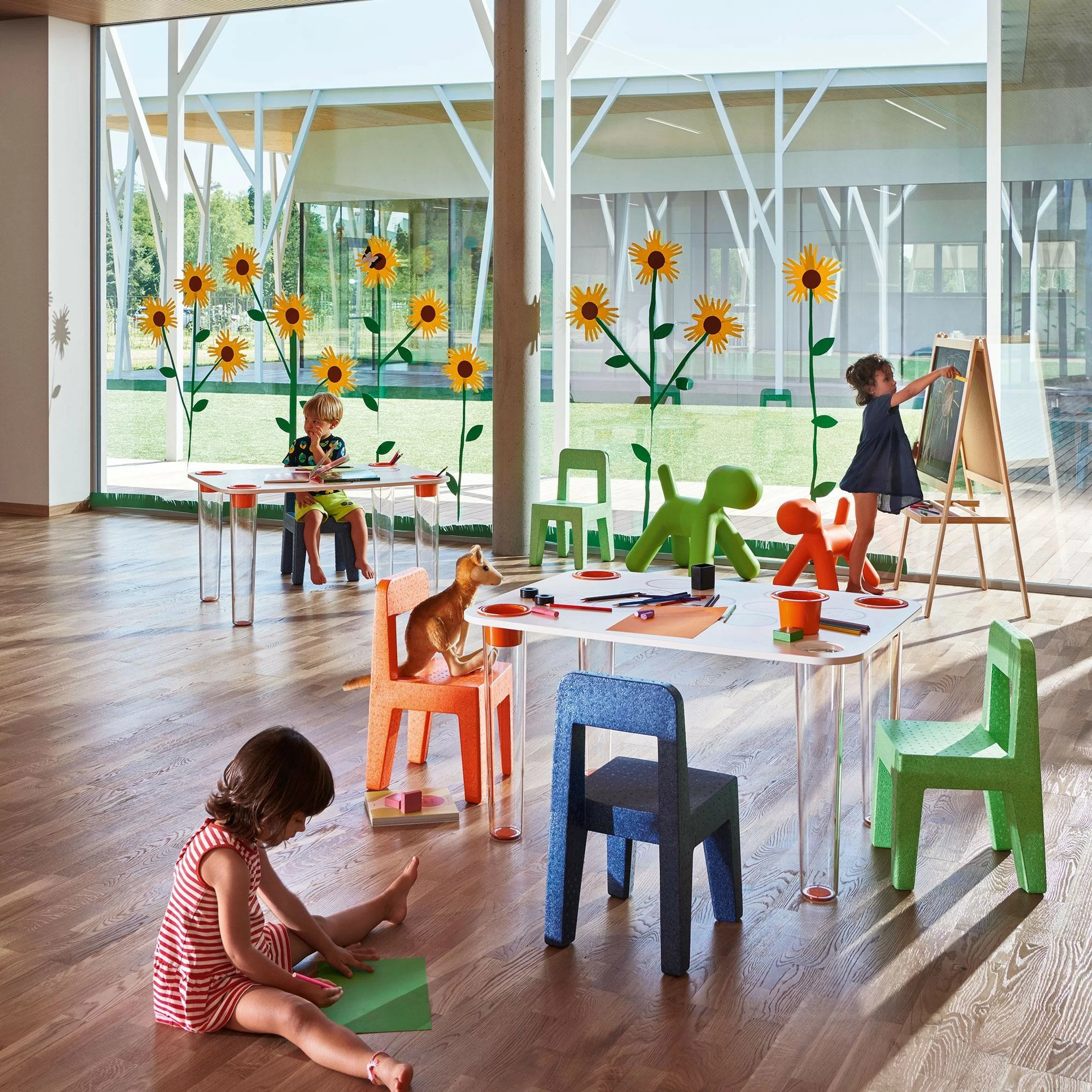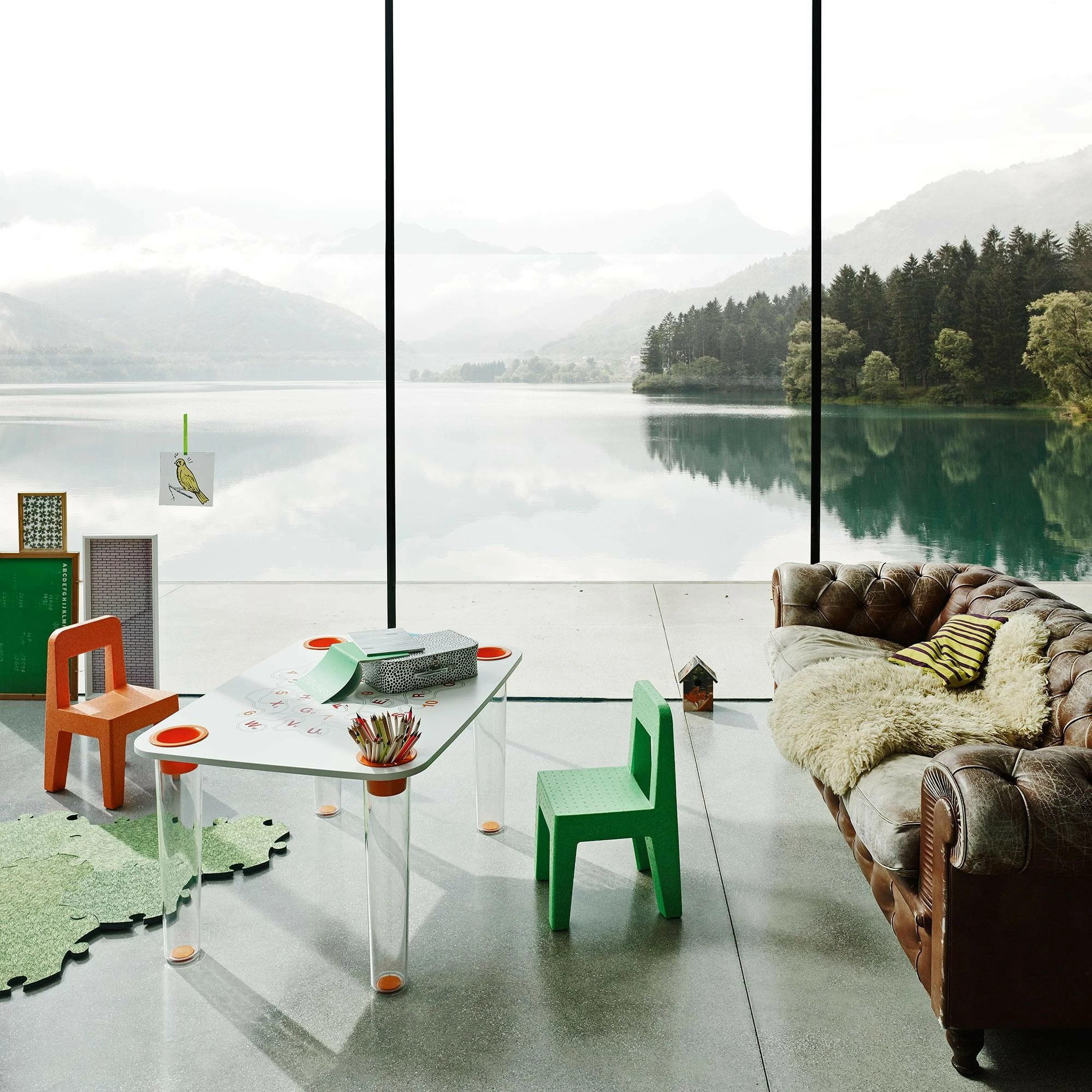 Designer Enzo Mari hat den Seggiolina Pop Kinderstuhl aus der Kindermöbelreihe „Me too“ für den Hersteller Magis entworfen.