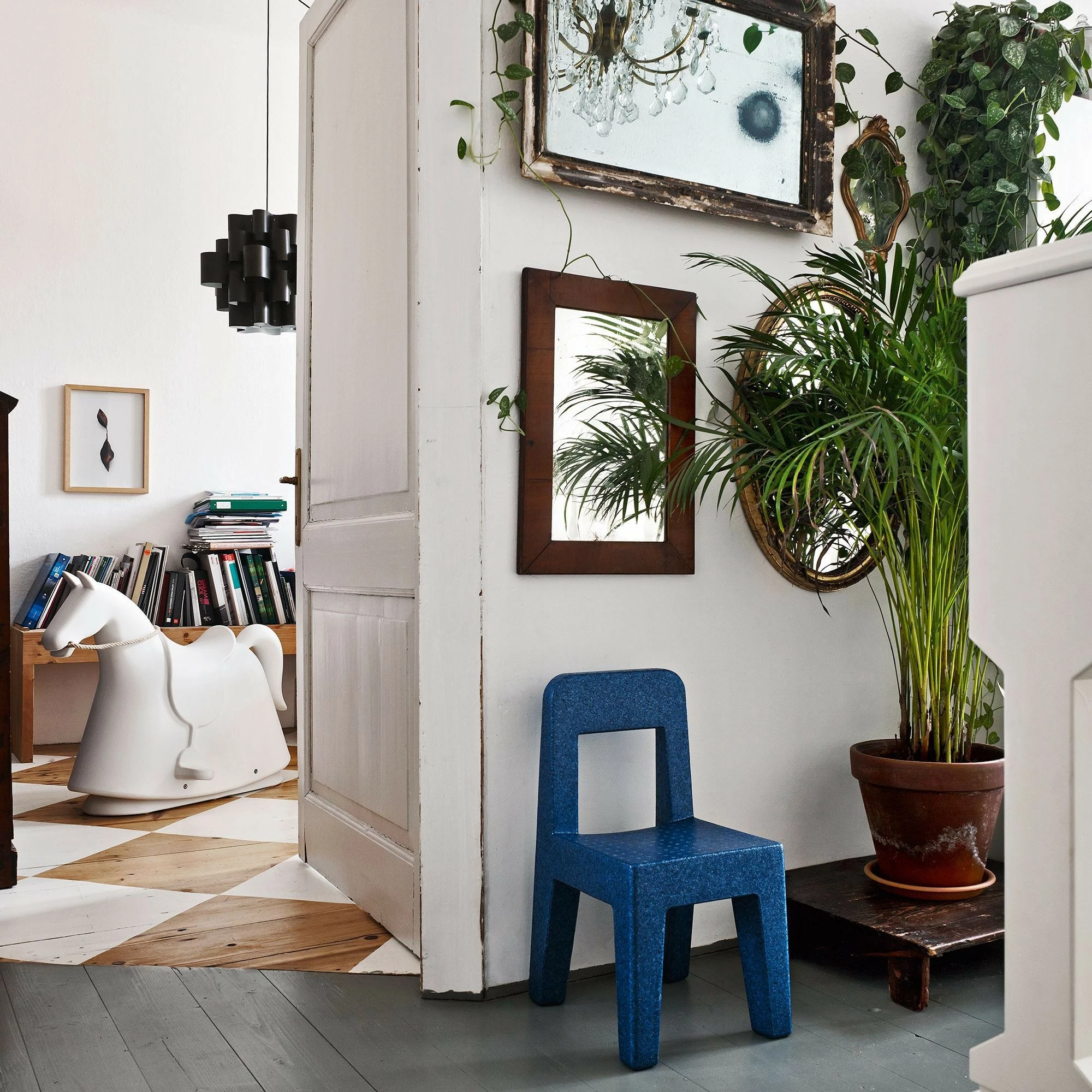 Die Form lässt erkennen, dass Designer Enzo Mari auch Illustrator ist: Das reduzierte, Comic artige Design und die farbenfrohe Ausführung des Seggiolina Pop passen perfekt in jedes Kinderzimmer und bringen guten Laune die Schule. Der Stuhl wiegt zudem nur 700 Gramm und kann somit auch von Kindern von A nach B getragen werden.