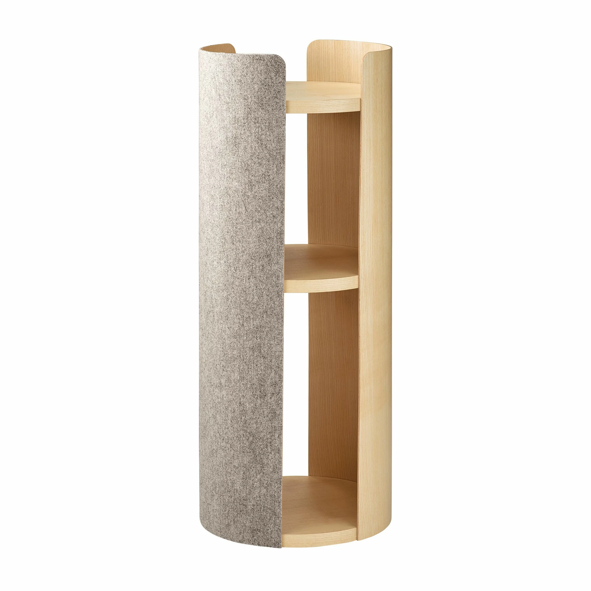 Mit seinen drei Etagen hat der Torre Kratzturm M abwechslungsreiche Rückzugsorte für eine ganze Katzenfamilie parat. Auf ebener Erde verspricht eine kuschelige Höhle Geborgenheit. Auf einem geschützten Balkonplatz lockt das Zwischengeschoß. Mit der besten Kontrolle über das Wohnzimmer besticht die Plattform ganz oben auf dem Torre Kratzturm M. Das vielseitige Katzenmöbel setzt sich aus drei kreisrunden MDF-Platten und zwei gewölbten Scheiben aus Formschichtholz zusammen. Sie bilden die drei Böden und die darum gebogenen Wände des Torre Kratzturms M. Eine der Wände ist außen ganzflächig mit Filz bezogen, der Ihren Stubentiger zum ausgiebigen Krallen Wetzen einlädt. Die andere beeindruckt ebenso mit ihrem zart gemaserten Eichenfurnier wie die Böden des Möbels.