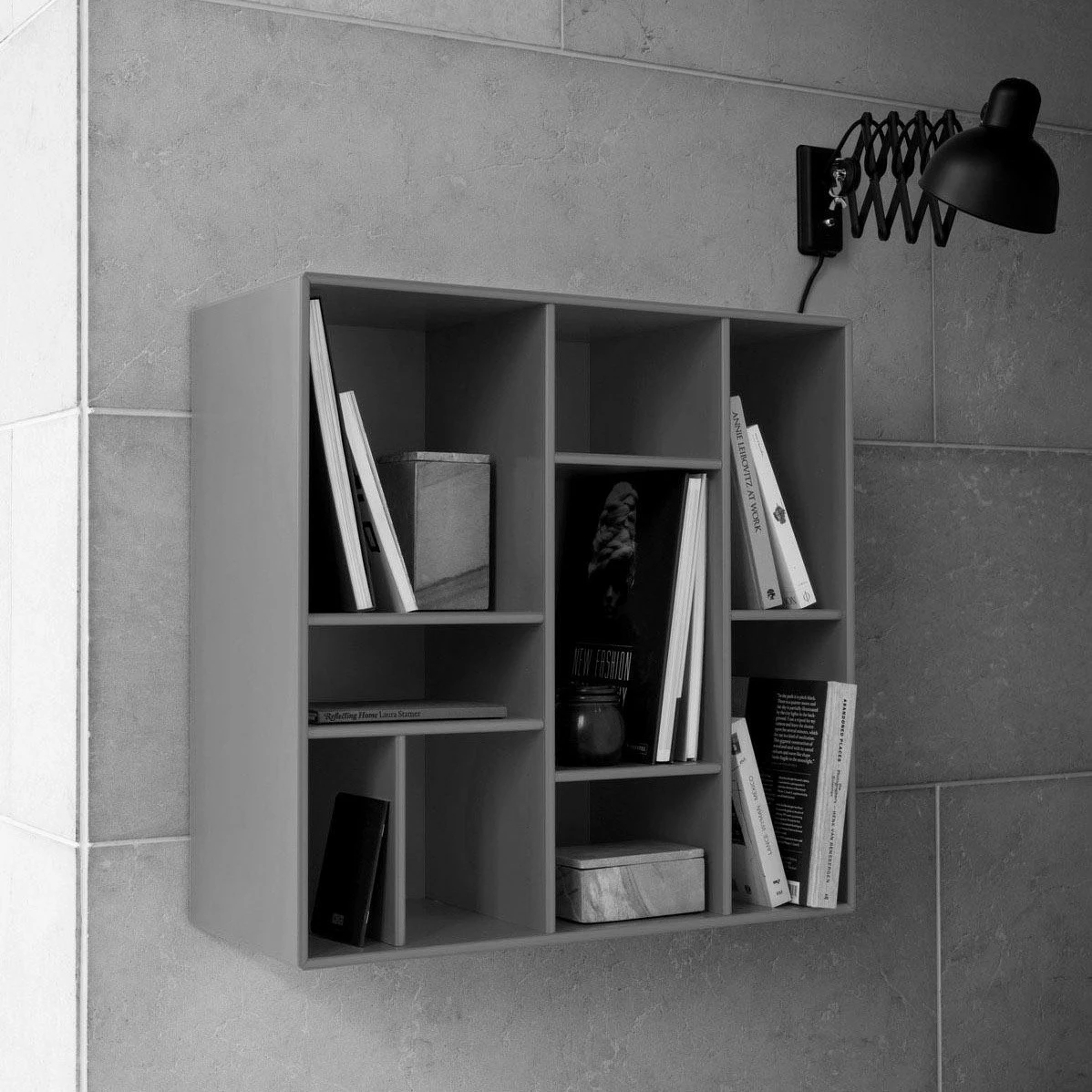 Das Compile Wandregal 69,6×69,6x30cm wurde von Peter J. Lassen für die Marke Montana entworfen. Dabei handelt es sich um ein wahres Ordnungstalent: Es kann vielseitig eingesetzt werden. Es eignet sich für das Wohnzimmer, wo es Bücher, Vasen, Bilder und andere Dekorationsgegenstände perfekt in Szene setzt. Es deckt auch den Stauraumbedarf im Homeoffice oder im Büro. Darin kann man Büromaterial, Aktenordner und vieles mehr griffbereit aufbewahren.