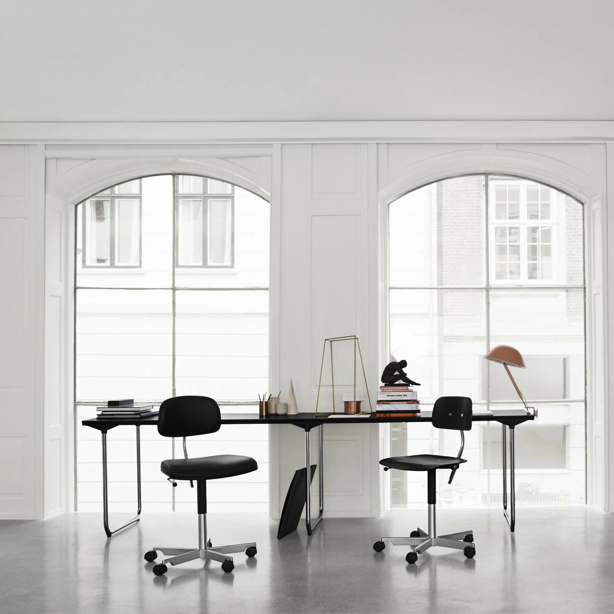 Der klassische Kevi 2533 Bürostuhl wurde von dem Designer Jørgen Rasmussens für die dänische Marke Montana entworfen. Diese, aufgrund ihrer Schlichtheit zeitlose Kreation erhielt bereits 1969 den ID-Preis. Eine besondere Erfindung stellen die Doppelräder dar, mit denen auch heute noch dieser Bürodrehstuhltyp ausgestattet ist.