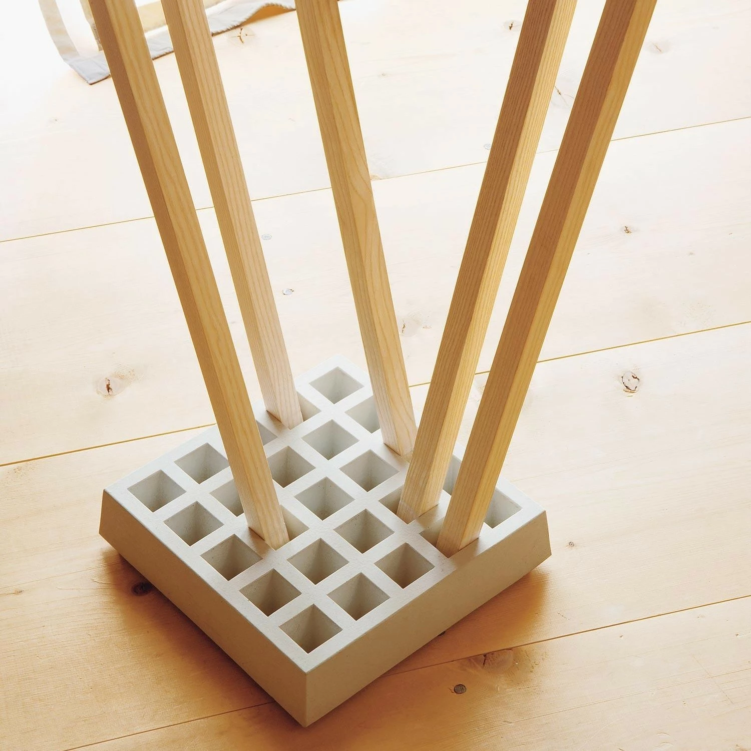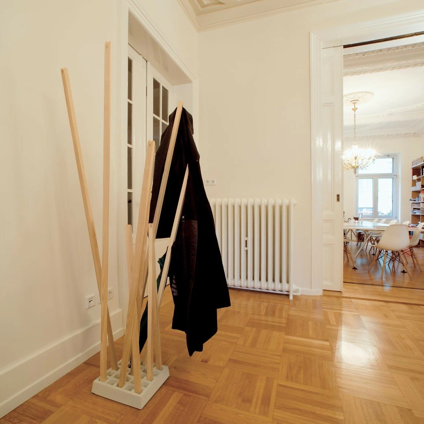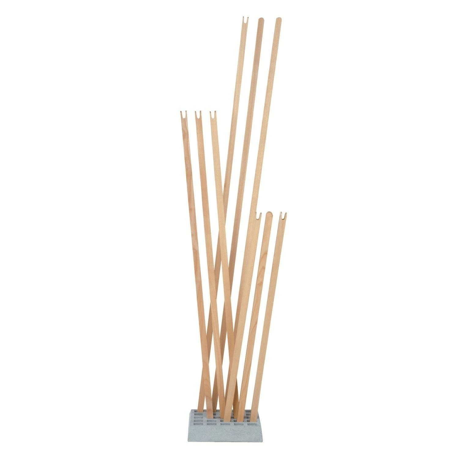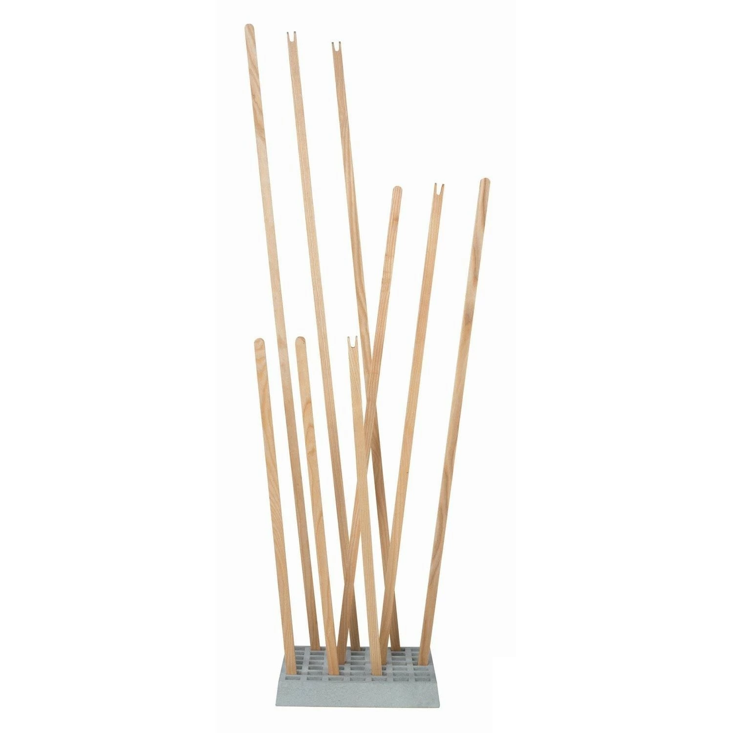 Die Moormann Pin Coat Garderobe wurde von dem Designer Oliver Bahr im Jahr 2002 für den deutschen Hersteller Moormann entworfen. Der Garderobenständer Pin Coatist ein cleveres System, dass eine Vielzahl von Hängemöglichkeiten bietet und für Kleidung von kleinen Leuten ebenso geeignet ist wie für lange Mäntel von großen Leuten. Die Garderobe Pin Coat ist eine flexible Ansammlung von Stäben aus massivem Holz, die lose in einem quadratisch gegossenen Sockel aus Beton stecken.