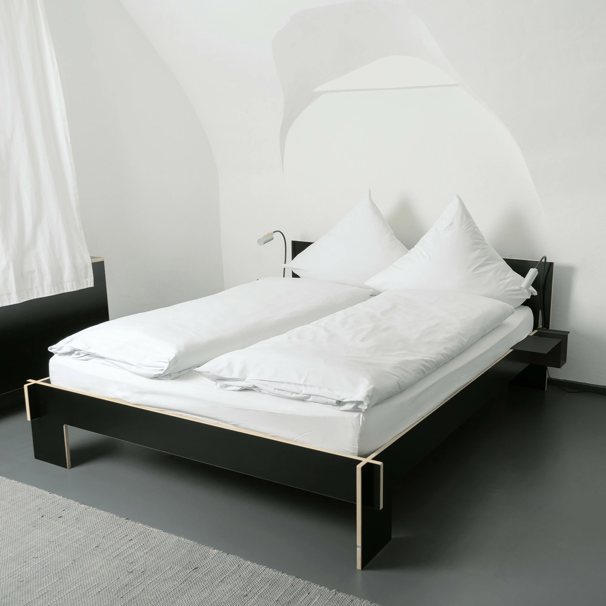Das Siebenschläfer Doppelbett 140x200cm mit Kopfteil wurde von Christopher Martens für die Marke Moormann entworfen. Es gehört zur 2007 lancierten Siebenschläfer-Kollektion, die aus steckbaren Möbelstücken besteht. Damit ist ein schneller Aufbau ohne jegliches Werkzeug selbst für absolute Laien kein Problem.