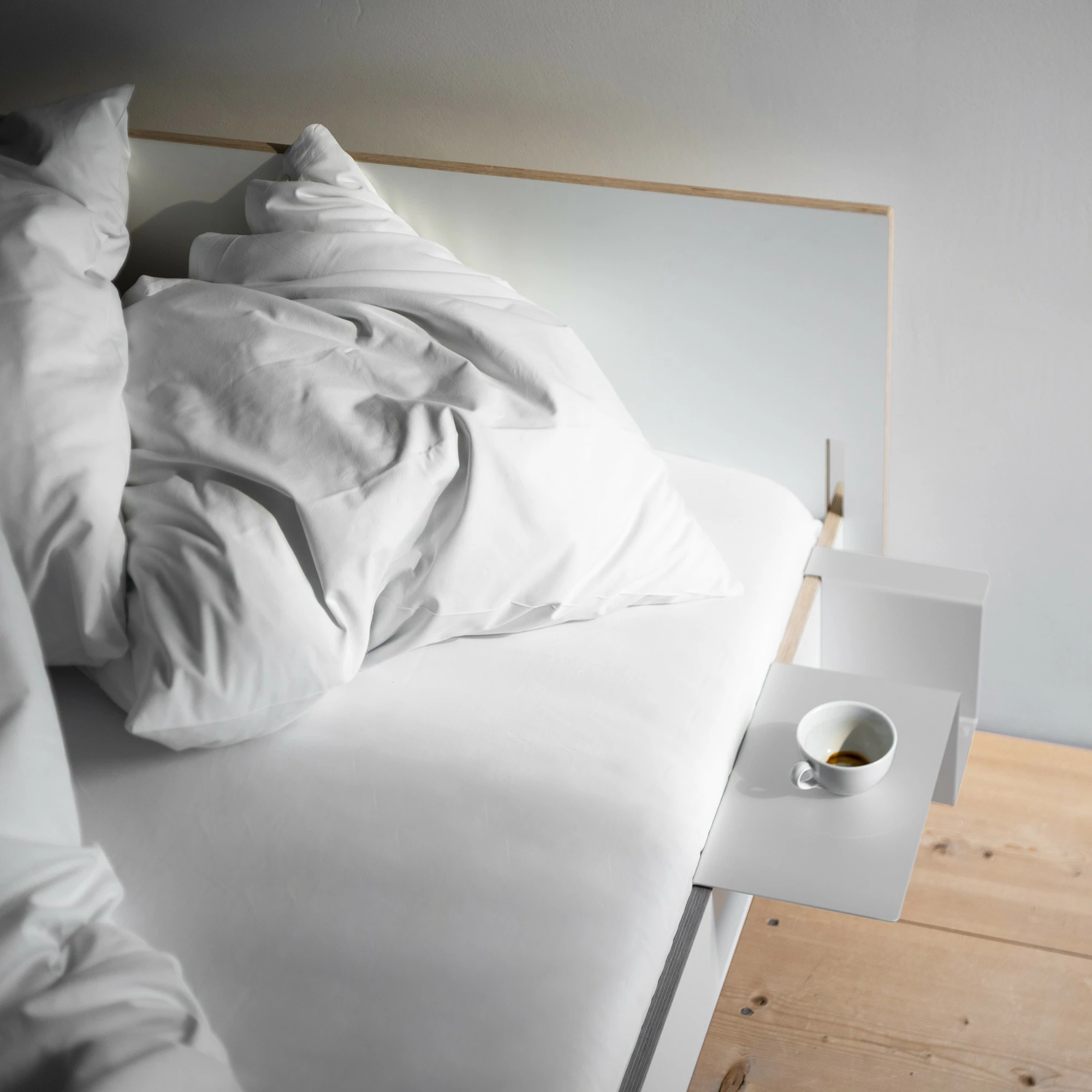 Siebenschläfer Doppelbett 180x200cm mit Kopfteil. Dieses Produkt ist von Christopher Martens für die Marke Nils Holger Moormann entworfen worden.