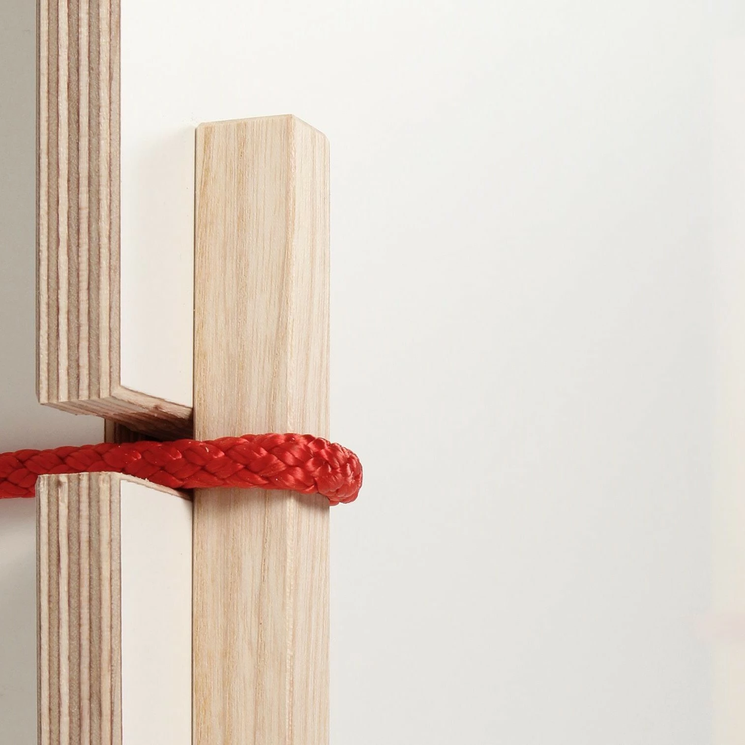 | Ausführungen | weiß RAL 9003/lackiert/Birkenkante/Stäbe Esche unbehandelt/rotes Seil aus Polyester, schwarz RAL 9005/lackiert/Birkenkante/Stäbe Esche unbehandelt/rotes Seil aus Polyester, weiß RAL 9003/lackiert/Birkenkante/Stäbe Esche unbehandelt/rotes Seil aus Polyester, schwarz RAL 9005/lackiert/Birkenkante/Stäbe Esche unbehandelt/rotes Seil aus Polyester |