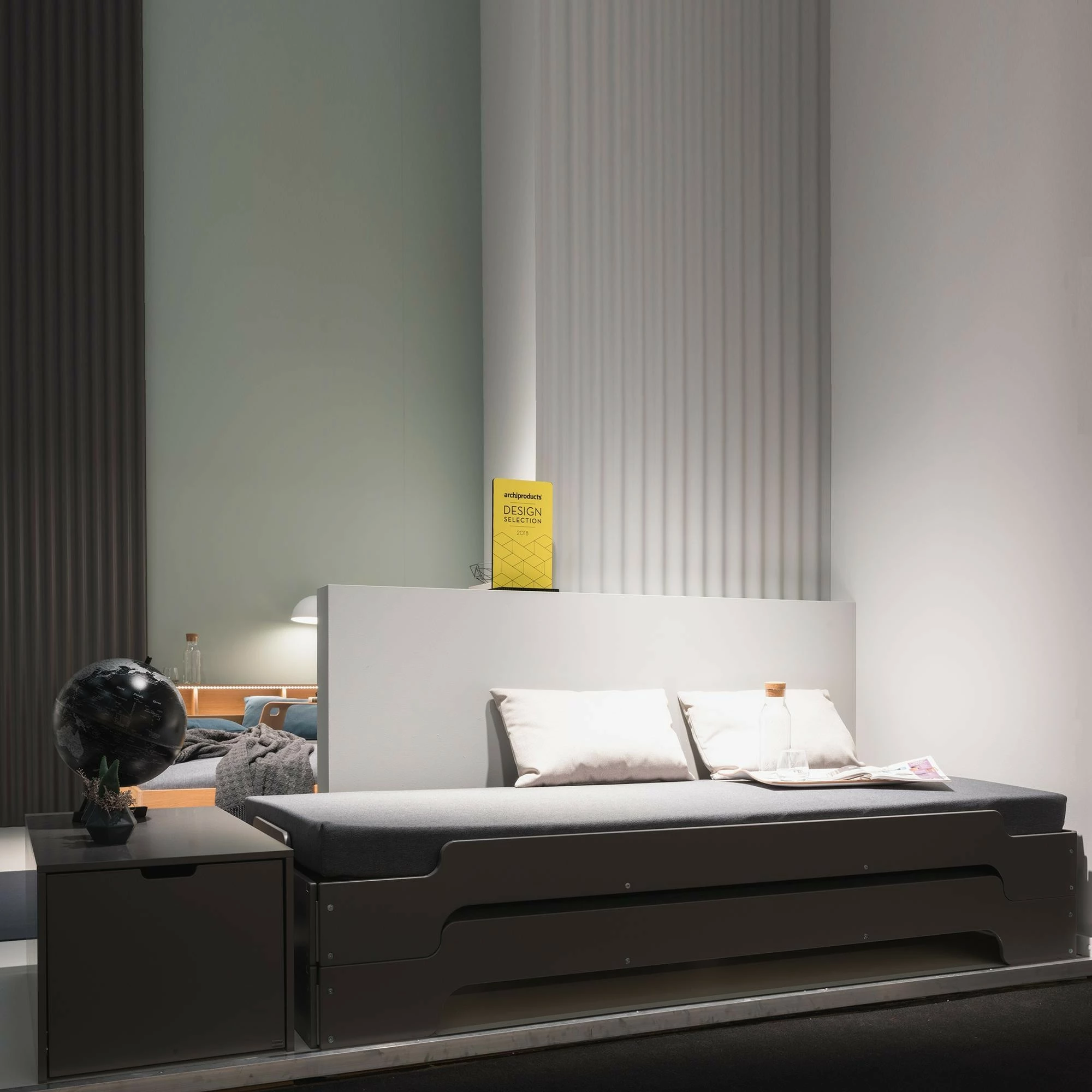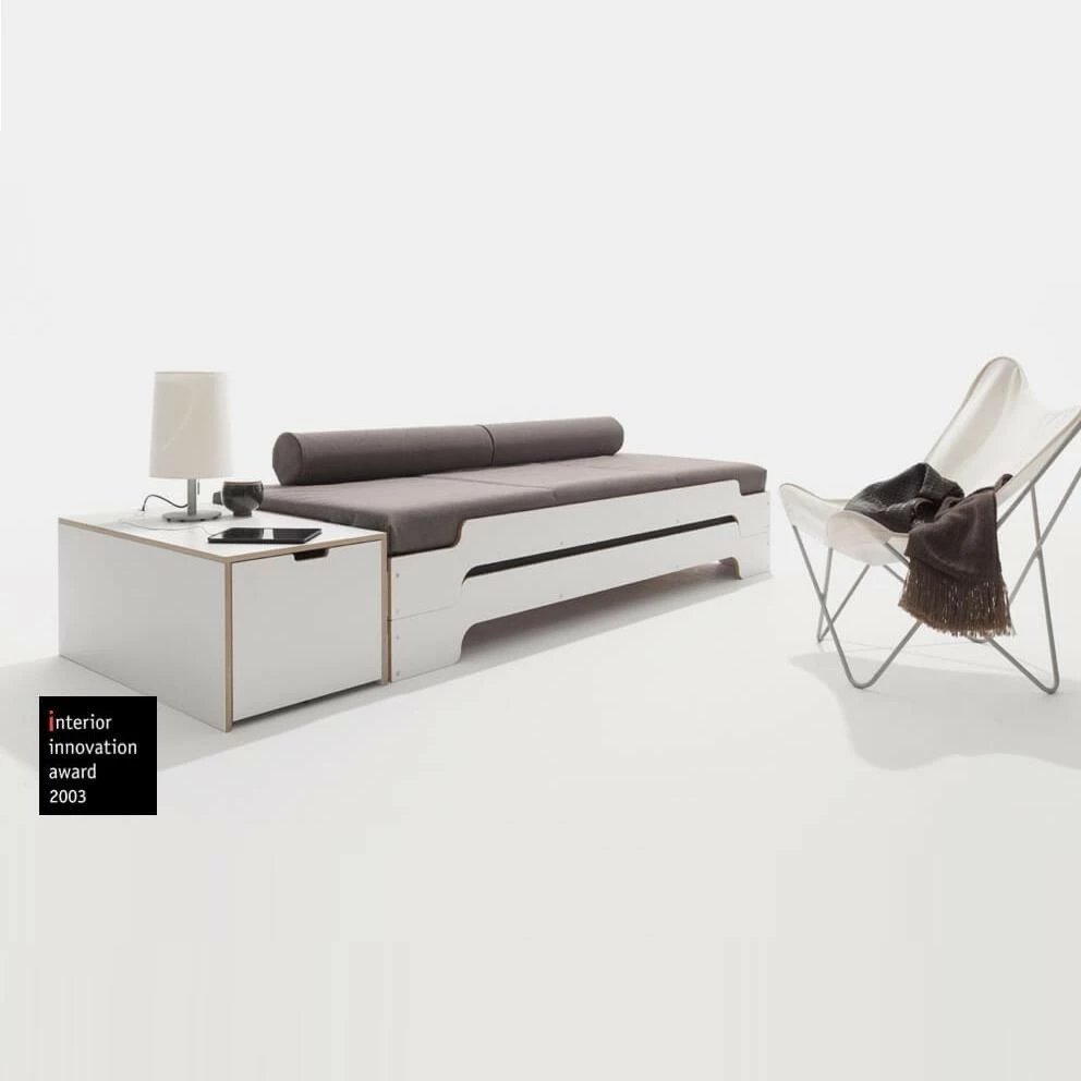 Die Stapelliege Komfort 90x200cm wurde von Rolf Heide für die Marke Müller Small Living entworfen. Völlig zurecht wurde der im Jahr 1966 entworfene Klassiker vom renommierten Magazin ‚Schöner Wohnen‘ als moderner Klassiker bezeichnet. Wo immer eine zusätzliche Nächtigungsmöglichkeit gefragt ist, wird die Stapelliege Komfort 90x200cm zum praktischen Möbel.