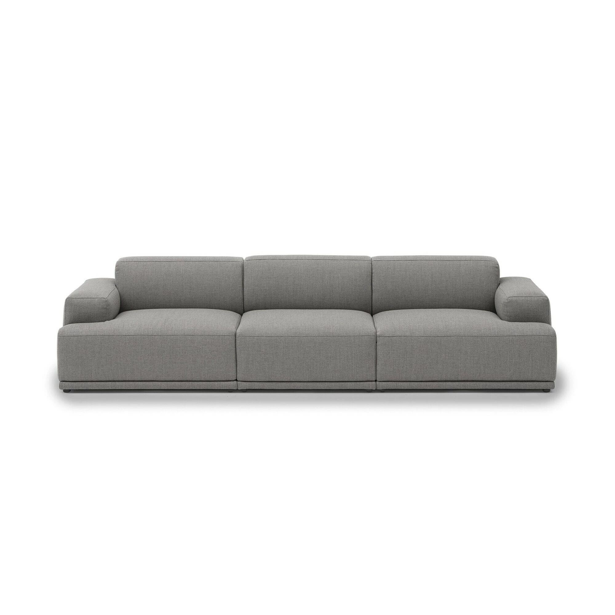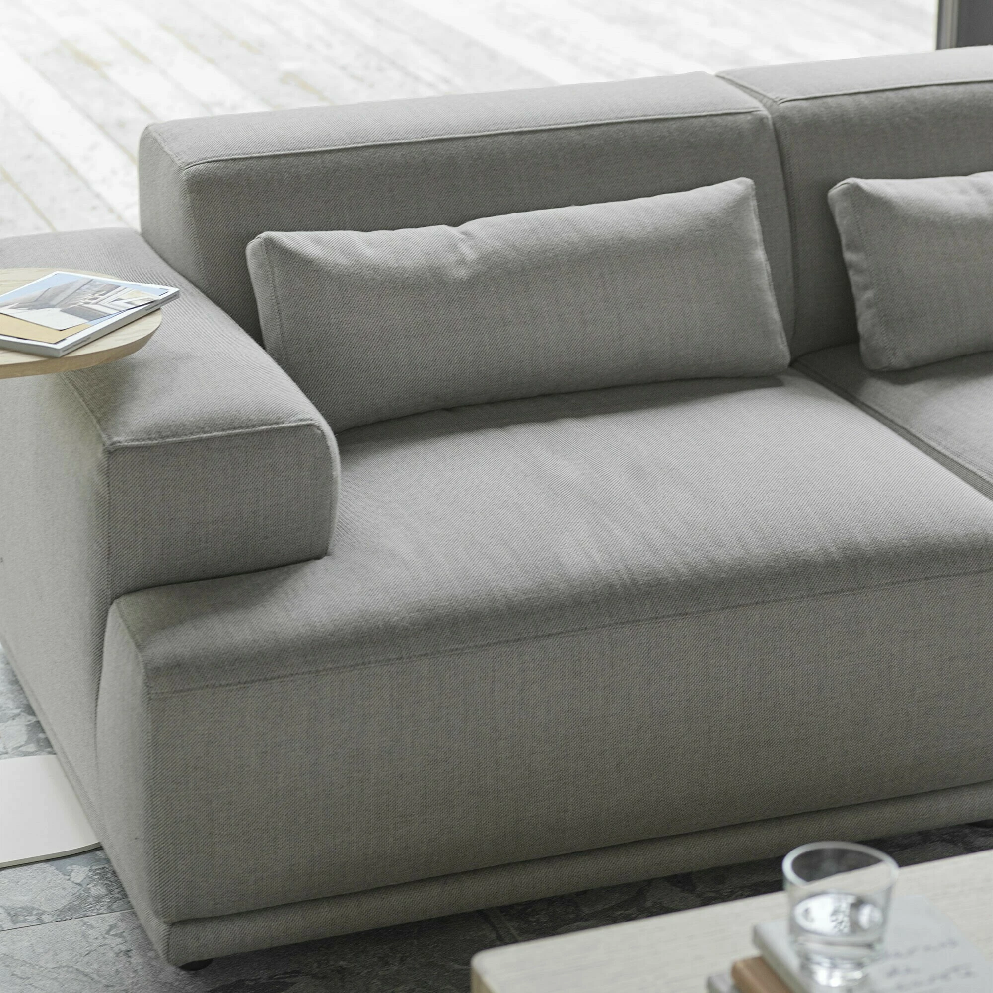 Perfekt setzten die Designer bei dem Connect Soft Modular Sofa 3-Sitzer Konfiguration 1 ihr Vorhaben um, eine bequeme Sitzgelegenheit zu schaffen, die mit harmonischen Proportionen zwischen den Komponenten auffällt. Die niedrige Sitzfläche, die weiche Polsterung und die breiten Armlehnen ergeben ein ausgewogenes Gesamtbild. Das Rücken- und Sitzgestell ist aus Holz gefertigt. Es trägt das Prädikat FSC und stammt aus nachhaltiger Forstwirtschaft. Den Rückenrahmen überziehen Schichten aus Kaltschaum und Baumwolle. Zum erstklassigen Sitzkomfort trägt die Zick-Zack-Federung der Sitzfläche bei. Sie ist noch dazu mit Filz, Kaltschaum und Watte gepolstert. Das Connect Soft Modular Sofa 3-Sitzer Konfiguration 1 ist mit edlem Stoff bezogen.