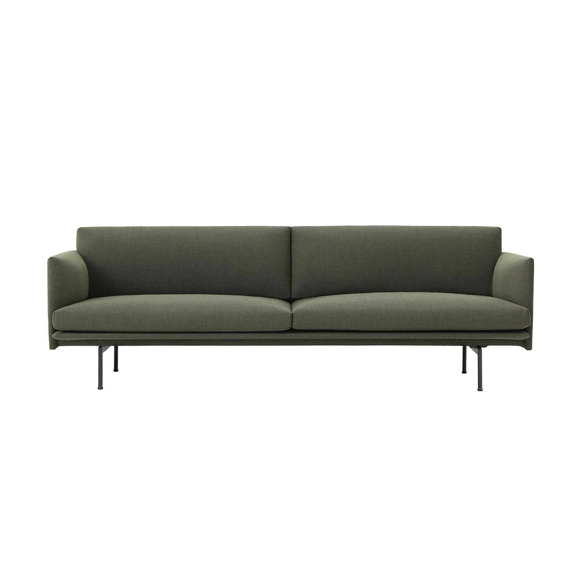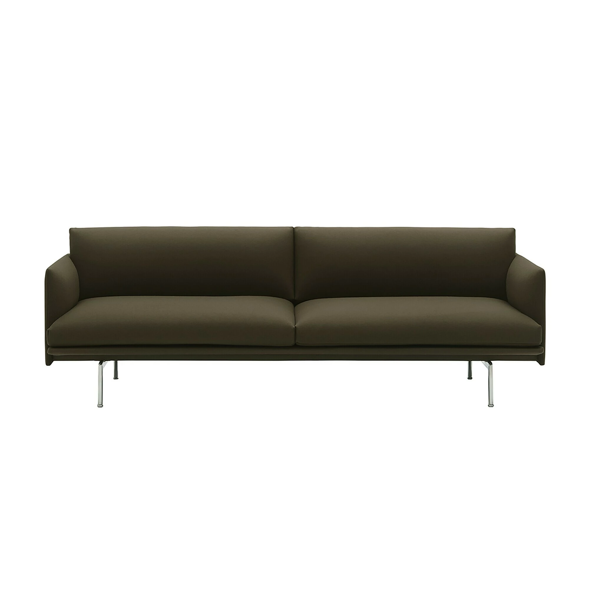 Das 220cm breite, 84cm und 69,5cm hohe Outline Sofa 3 Sitzer wirkt auf seinem schlanken Aluminiumgestell ausgeprägt elegant und beinah schwerelos. Der minimalistische Auftritt wird durch die Aufteilung des Polsters verstärkt, das durch eine mittige Naht in zwei optische Bereiche getrennt ist. Das Outline Sofa 3 Sitzer mit einer Sitzhöhe 40 cm lässt sich dadurch in viele Einrichtungen und Wohnstile harmonisch integrieren. Die Innenstruktur besteht aus Holz. Alle Elemente sich mit dem gleichen Stoff oder Leder überzogen. Es stehen unterschiedliche Farben zur Auswahl.