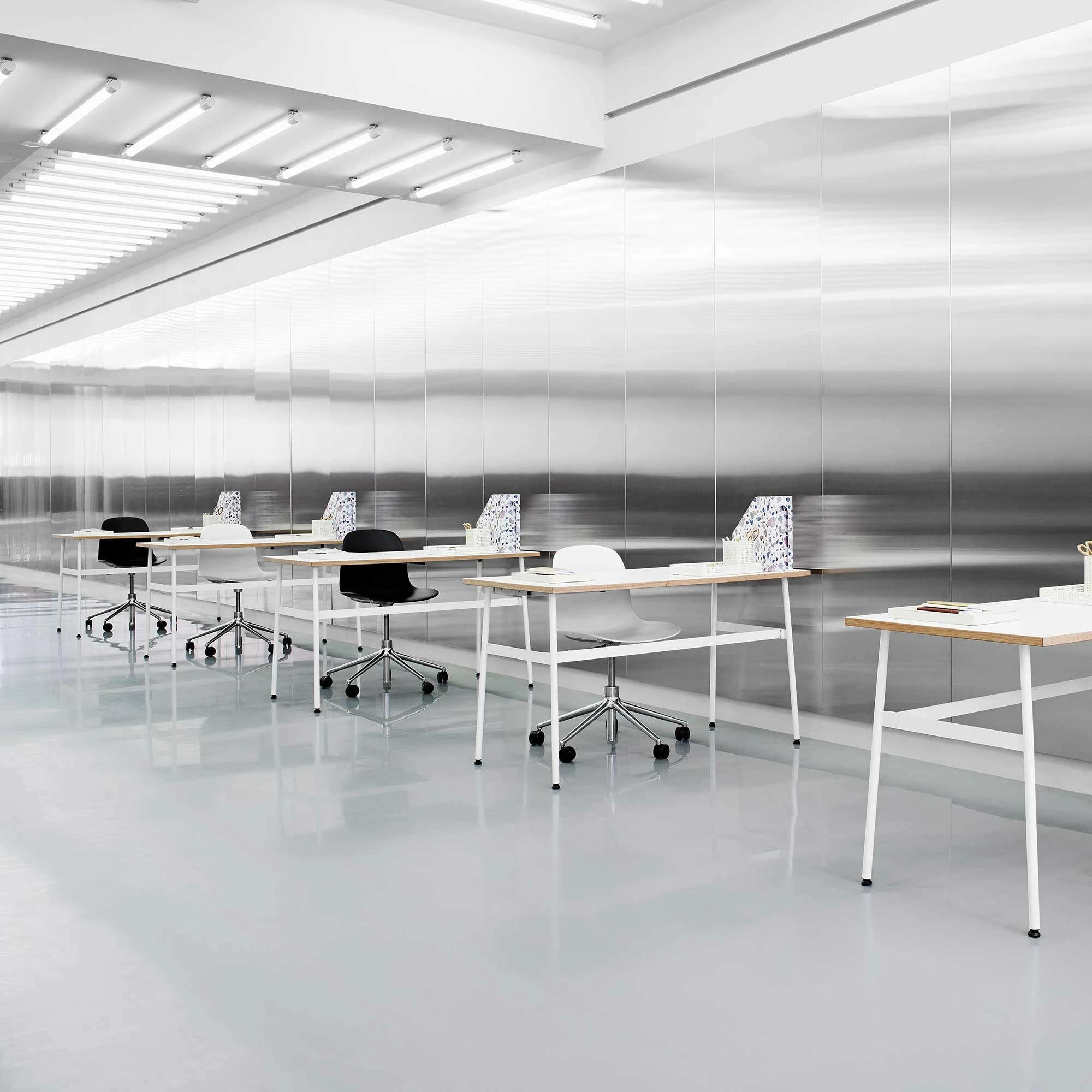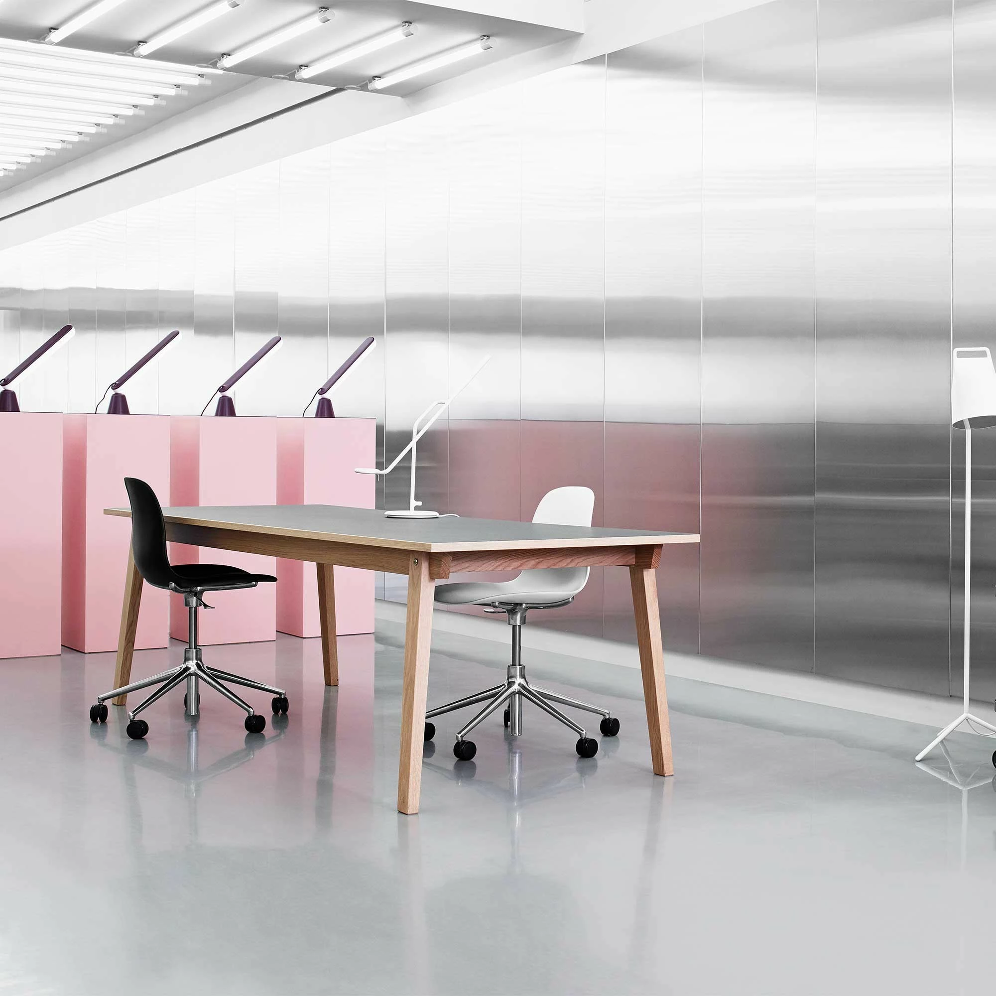 Der praktische Form 5W Gaslift Drehstuhl mit Rollen wurde vom Designer Simon Legald exklusiv für die Marke Normann Copenhagen entworfen. Die Serie Form erblickte bereits im Jahr 2014 das Licht der Welt und entwickelte sich schnell zu einem echten Bestseller. Die Kombination aus stabilen Aluminiumgestellen und den formbaren Sitzschalen aus Polypropylen gewann viele Fans mit ihrer Wandelbarkeit – und natürlich dem Komfort der entstandenen Möbelstücke.