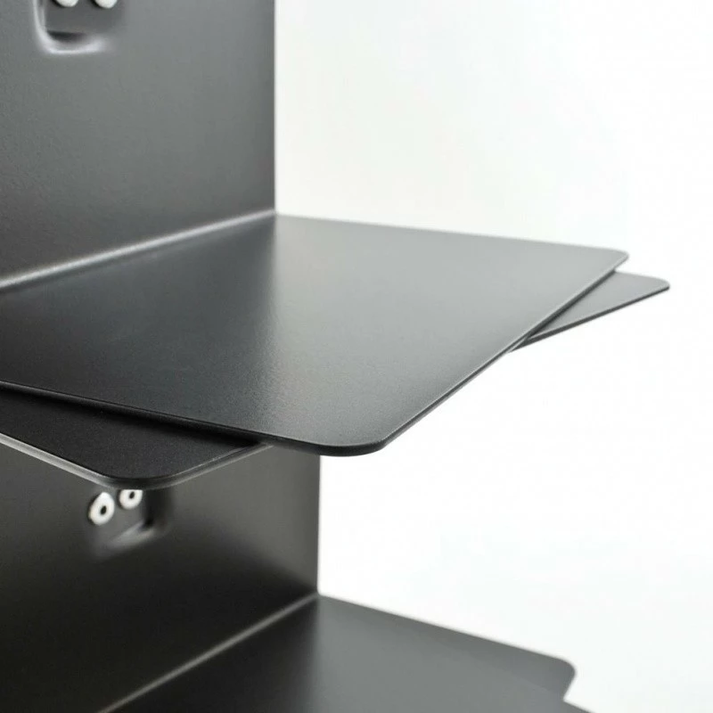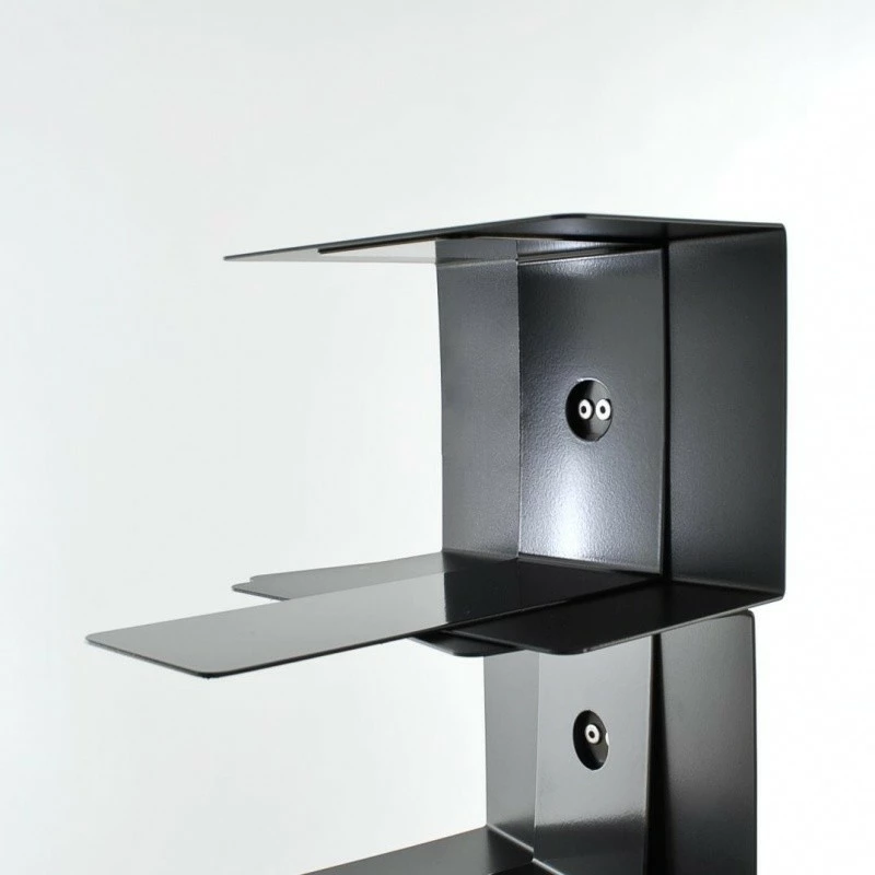 Ihren Fuß gibt es wahlweise in poliertem oder lackiertem Edelstahl, bzw. in schwarzer oder weißer Ausführung. Einschubfächer sind jetzt als Zubehör erhältlich!