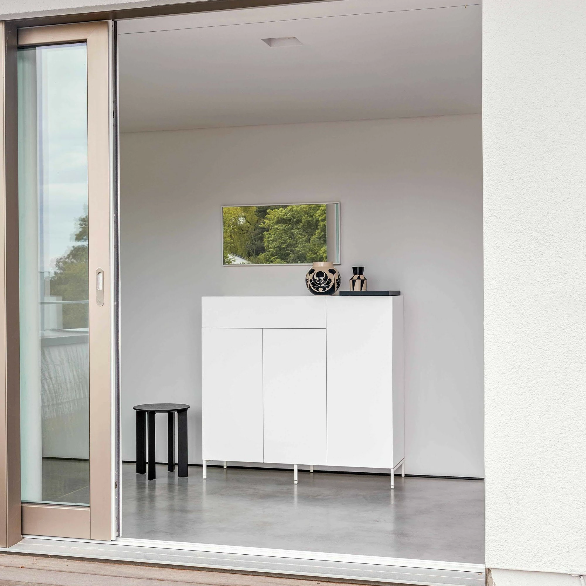 Die Urban 1074 Kommode mit Schuhablage wurde von den Designern des Herstellers Schönbuch entworfen. Die drei Türen sowie der praktische Schubkasten oben links öffnen sich ganz einfach durch antippen. Dies verleiht der Kommode eine minimalistische Formensprache. Wie alle Teile der Serie Urban, lässt sich diese elegante Kommode sowohl einzeln als auch in Kombination verwenden.