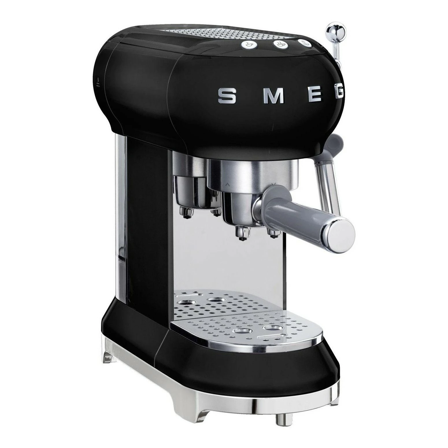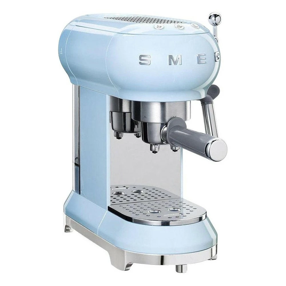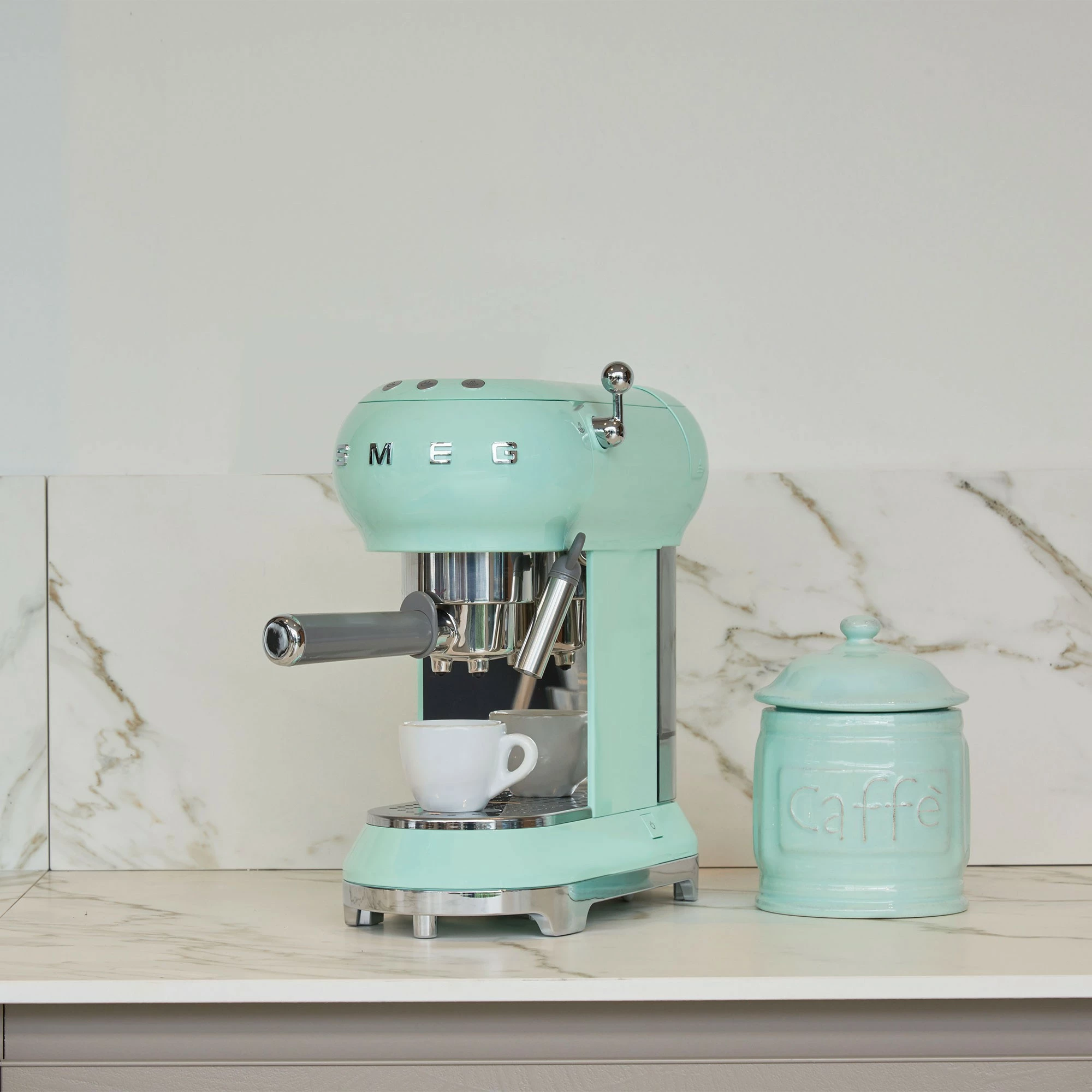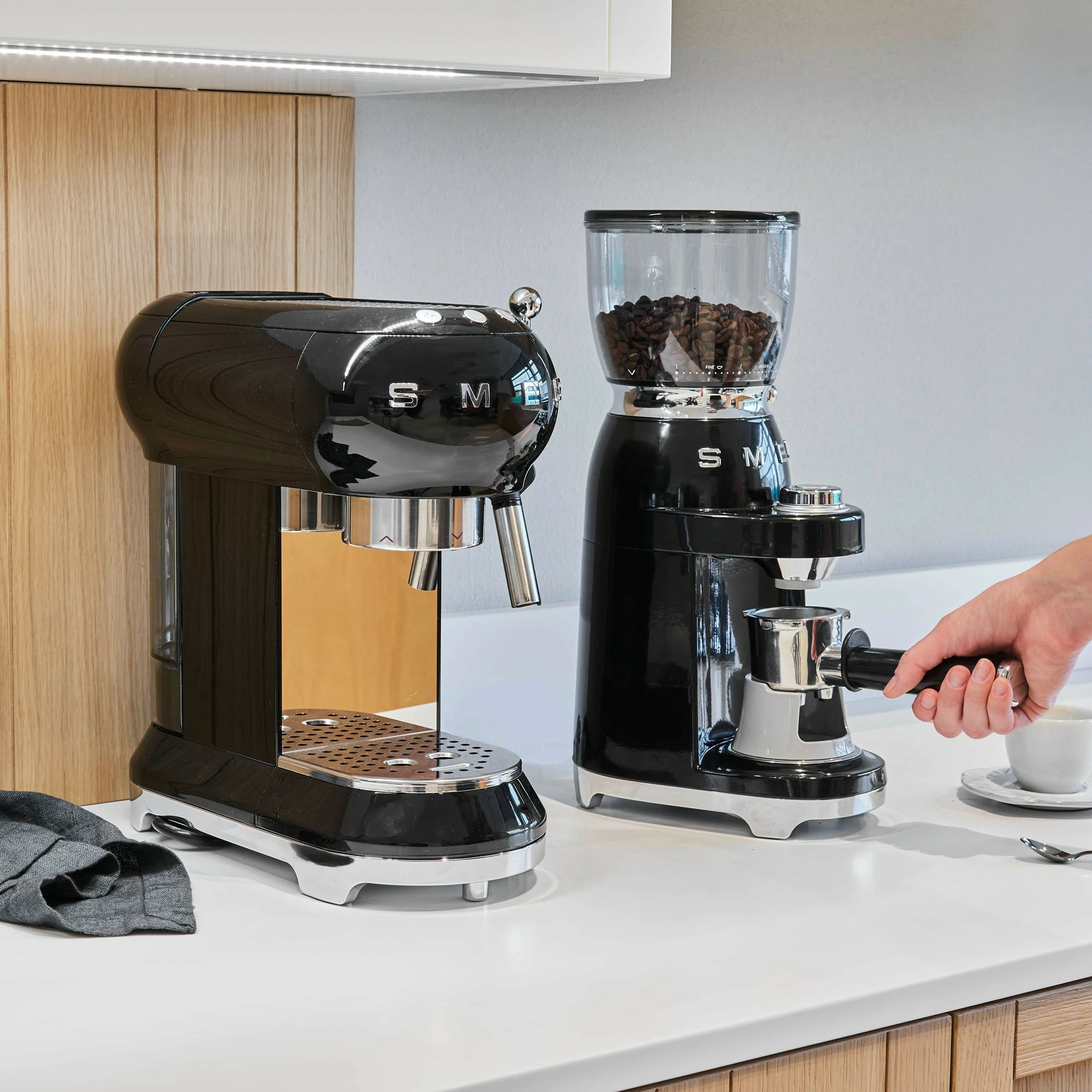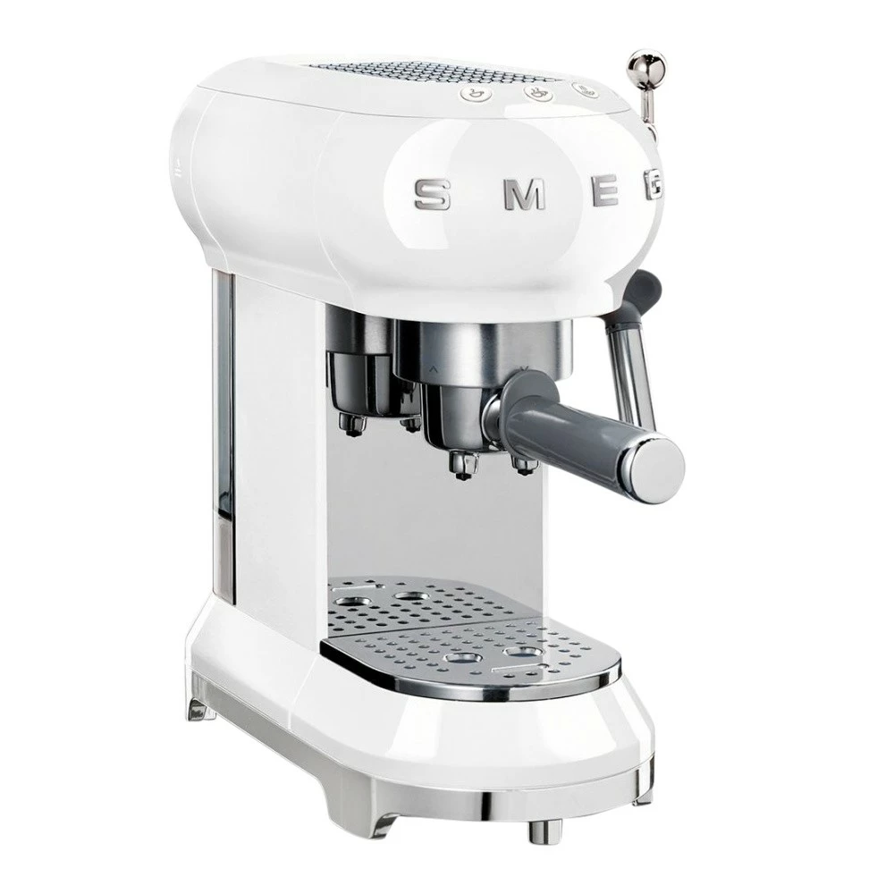 Die ECF01 Espresso Kaffeemaschine mit Siebträger des Herstellers Smeg ermöglicht Ihnen einen ganz neuen Kaffeegenuss. Bei der Siebträgermaschine handelt es sich um ein echtes Retro-Designerstück, das einen fantastischen Kaffee zubereitet. Das Modell ist mit einem Tassenträger, einem 1-Liter-Wassertank und einer Abschaltautomatik ausgestattet. Mit dem Thermoblock-Heizsystem und dem idealen Druck von 15 Bar bereiten Sie sich das perfekte Kaffeegetränk zu.