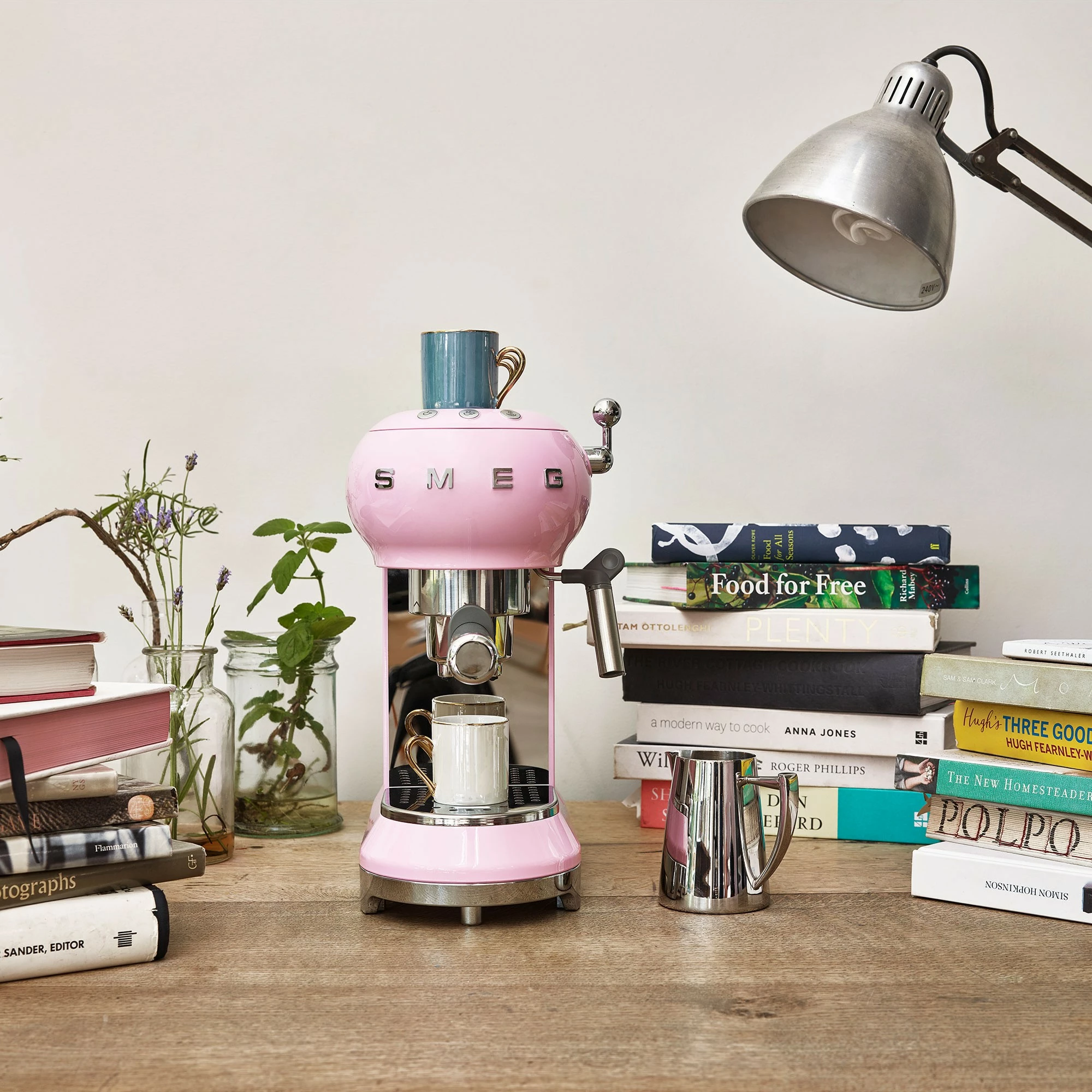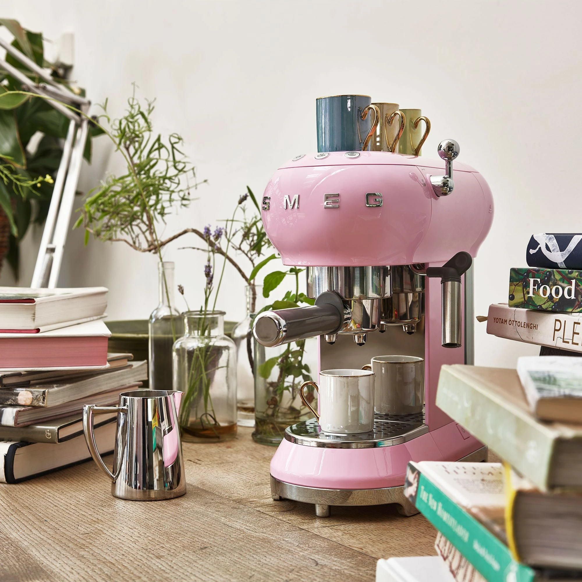 Erhältlich ist die ECF01 Espresso Kaffeemaschine mit Siebträger von Smeg in klassischen Retro-Farben: Pastellblau, Creme, Rot, Schwarz, Cadillac Pink, Pastellgrün und Weiß. Damit wird sie zum echten Hingucker bei Ihnen zuhause und eignet sich ideal als Geschenk für Kaffeeliebhaber. Durch ihre Maße von 14,9 x 33 x 30 cm passt sie selbst in kleine Küchen. Das geringe Gewicht von knapp 6 kg macht sie besonders mobil.