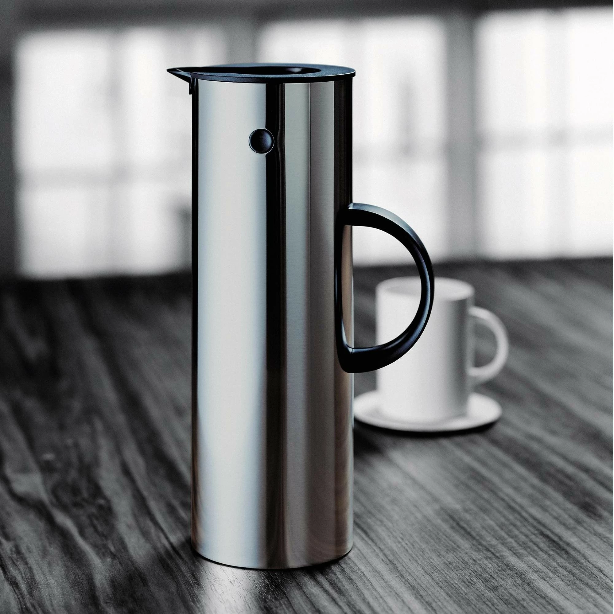 Diese beliebte und kultige Stelton Isolierkanne wurde 1977 von Erik Magnussen für das dänische Label Stelton entworfen.