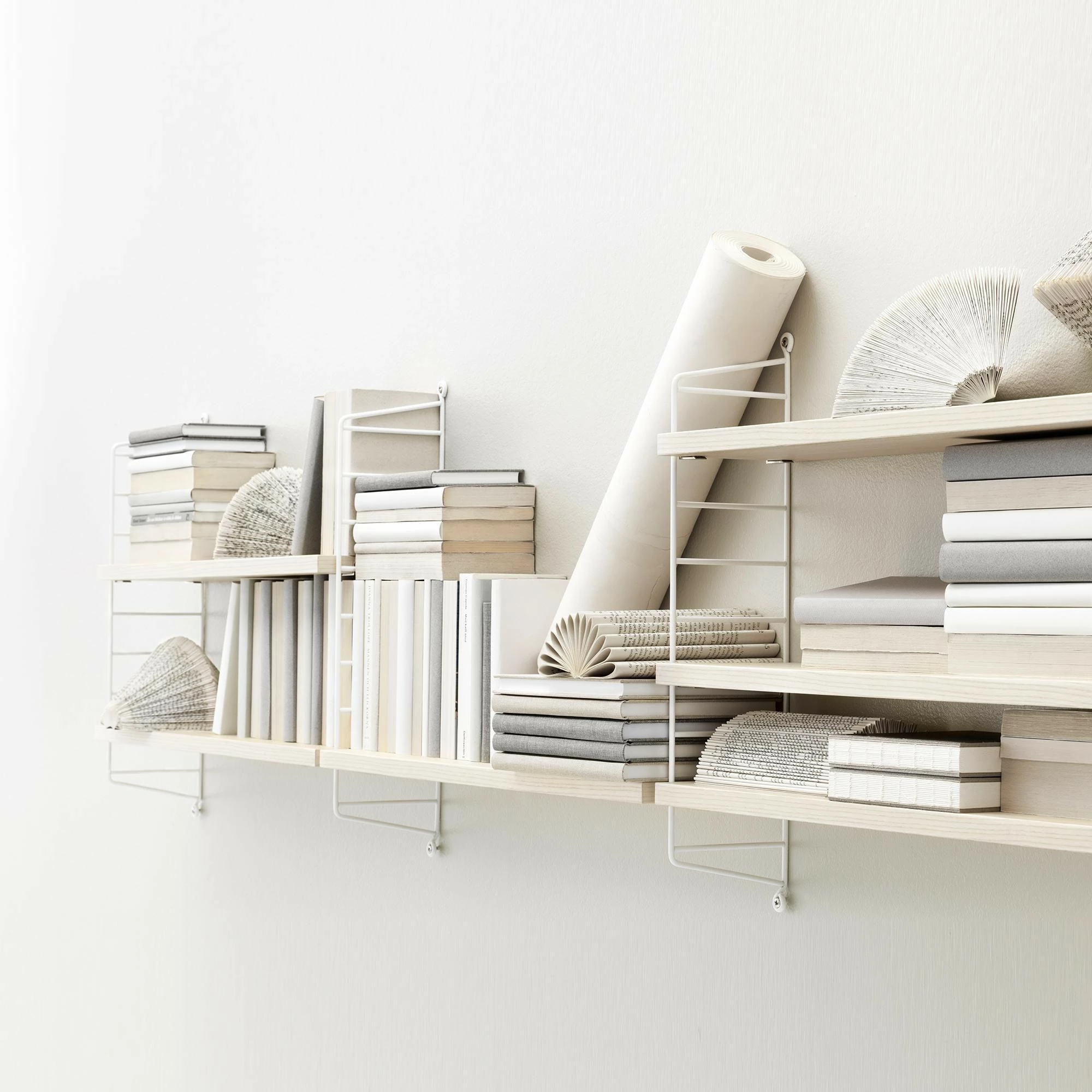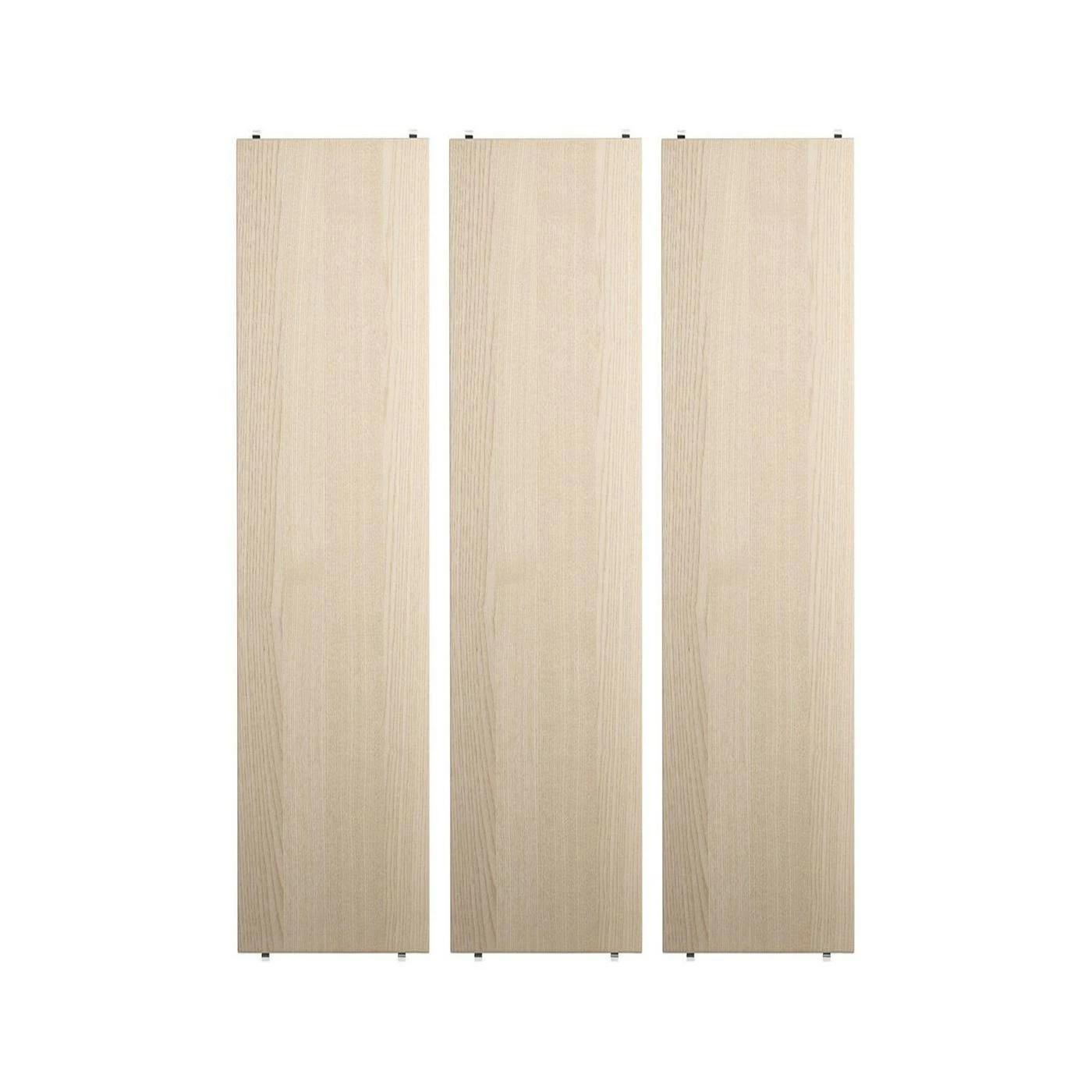 Das String System Fachböden 3er Set 78x20cm ist in diversen Ausführungen erhältlich. Für die Anfertigung wurden verschiedene Holzarten verwendet. Sie können zwischen naturbelassenem oder lackiertem Holz auswählen. Die lackierte Ausführung ist in den Farben Schwarz, Grau und Weiß erhältlich. Für einen Hauch von natürlicher Frische sorgen die Fachböden aus Eiche, Walnuss oder Esche.