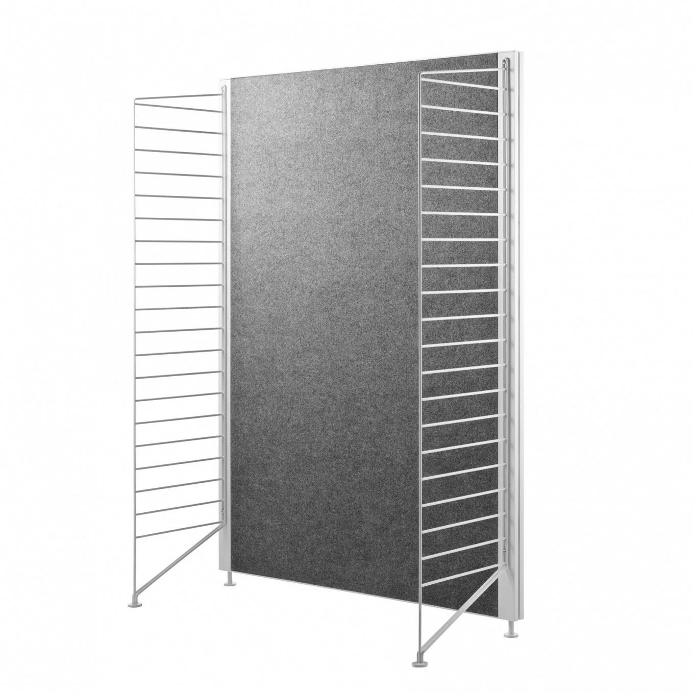 Aufgrund seiner puristischen Optik passt der String Works Regal/Raumteiler besonders gut in eine modern gestaltete Wohnlandschaft. In einer klassisch eingerichteten Wohnung kann er als interessanter Kontrast wirken. Das Modell ist aus Metall und grauem Filz angefertigt, sodass Sie von optimierter Haltbarkeit und Strapazierfähigkeit profitieren. Zusätzlich ist es einfach zu reinigen. Der dezente Farbton des Regal/Raumteilers passt ausgezeichnet zu verschiedenen Farbnuancen.