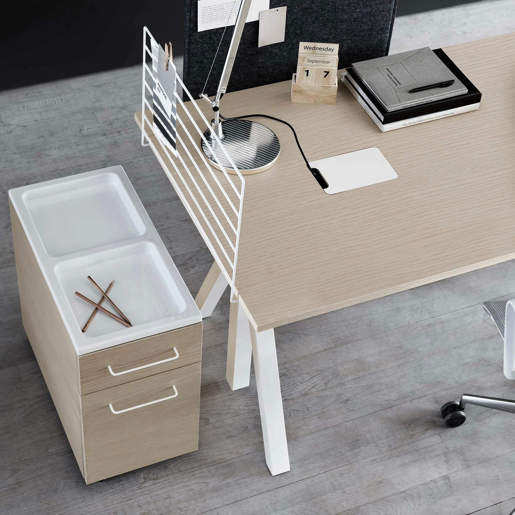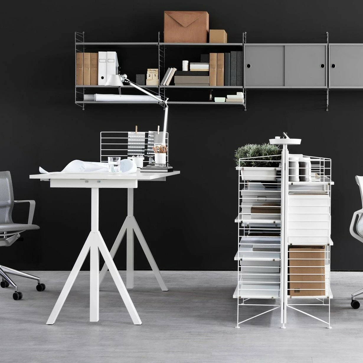Das String Works Rollcontainer wurde vom Designer Nisse Strinning für sein eigenes Label String entworfen. Strinning gründete kurz nach seinem ersten Entwurf ein Regalsystem sein eigenes Unternehmen. Für seine minimalistischen, funktionellen und eleganten Möbelstücke erhielt er bereits mehrere Auszeichnungen. Alle Möbel besitzen ein einheitliches Design, sodass sie stilvoll miteinander kombiniert werden können. Sie eignen sich sowohl für den Einsatz im Büroalltag als auch in privaten Räumen.