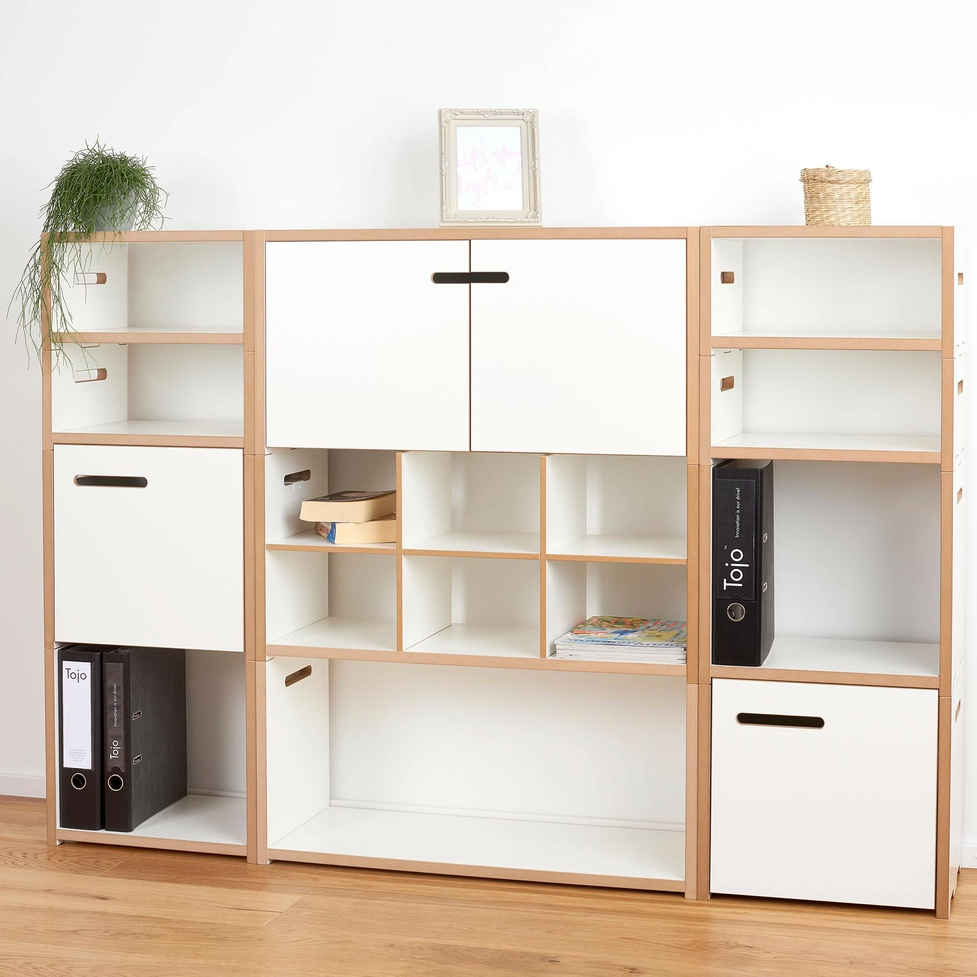 Die Halbstark Regalsystem Anbaumodule wurden von Dirk Frömchen für die Marke Tojo entworfen. Das Halbstark-System entwickelte der in Deutschland geborene Tischlermeister als Ergänzungssystem seines Regalsystems Hochstapler. Beide harmonieren in Wohnzimmern, Arbeitsräumen oder auch in Hotels einzeln platziert perfekt mit moderner Einrichtung. Sie lassen sich aber auch leicht miteinander kombinieren.