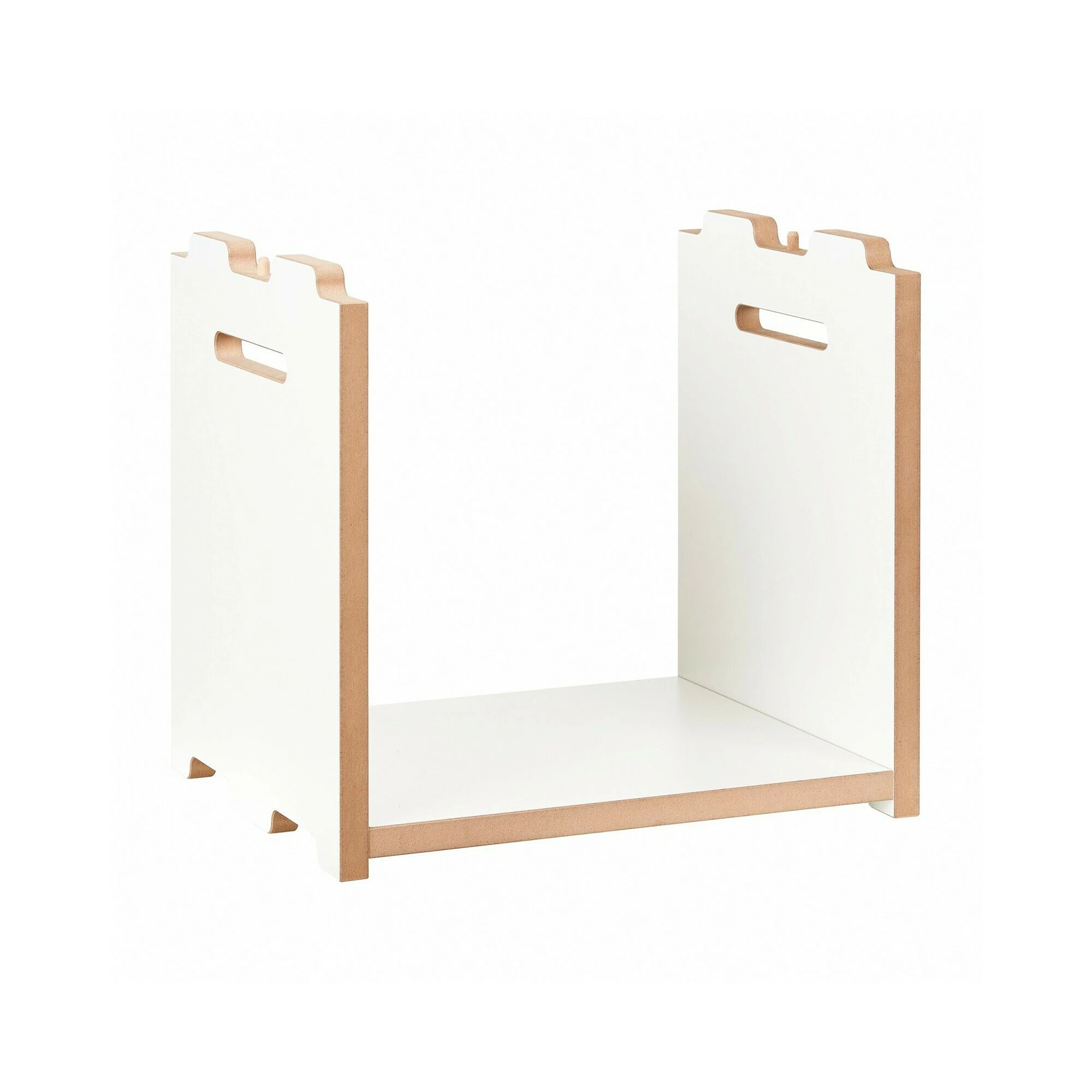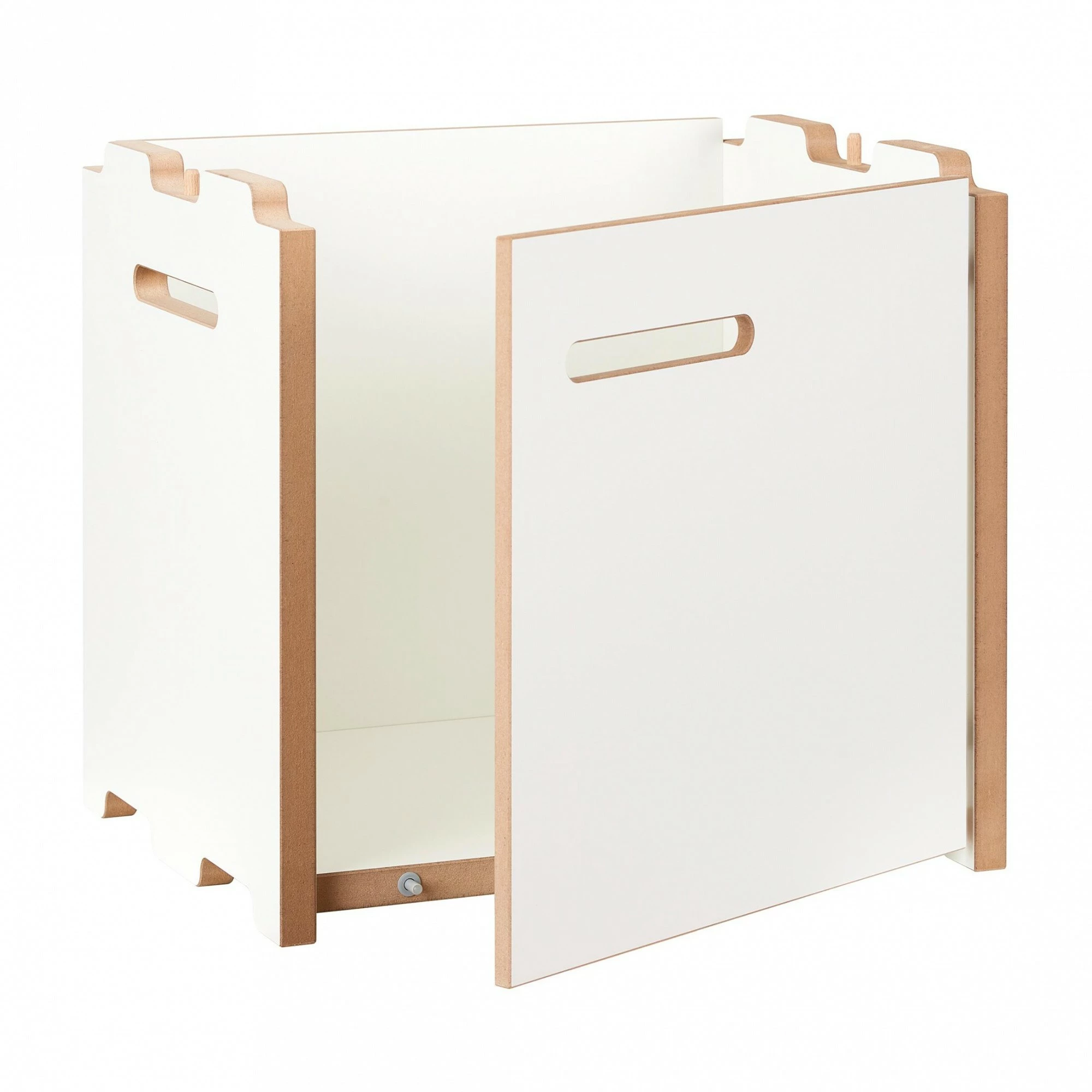 Jedes der Halbstark Regalsystem Anbaumodule benötigt als Grundlage ein Grundmodul des Halbstark-Regals. Mit diesem können die Anbaumodule dank der Formfräsung der Seitenteile stabil miteinander verbunden werden. Jedes Anbaumodul besteht aus zwei Seitenteilen und einem Regalboden. Wie alle Einzelteile des offenen Regalsystems sind auch diese aus weiß beschichteten MDF-Platten hergestellt. Das mit Anbaumodulen ergänzte Grundmodul kann freistehend aufgestellt werden. Allerdings empfiehlt sich bei fünf übereinander angeordneten Modulen die Festmachung an einer Wand. Wer die Halbstark Regalsystem Anbaumodule verschließen möchte, kann sie mit einer Tür bestellen. Diese lässt sich entweder rechts oder links mittels eines Schlitzes öffnen. Ebenso haben die Seitenwände der Anbaumodule einen Schlitz, dank dem sie leicht bewegt werden können.