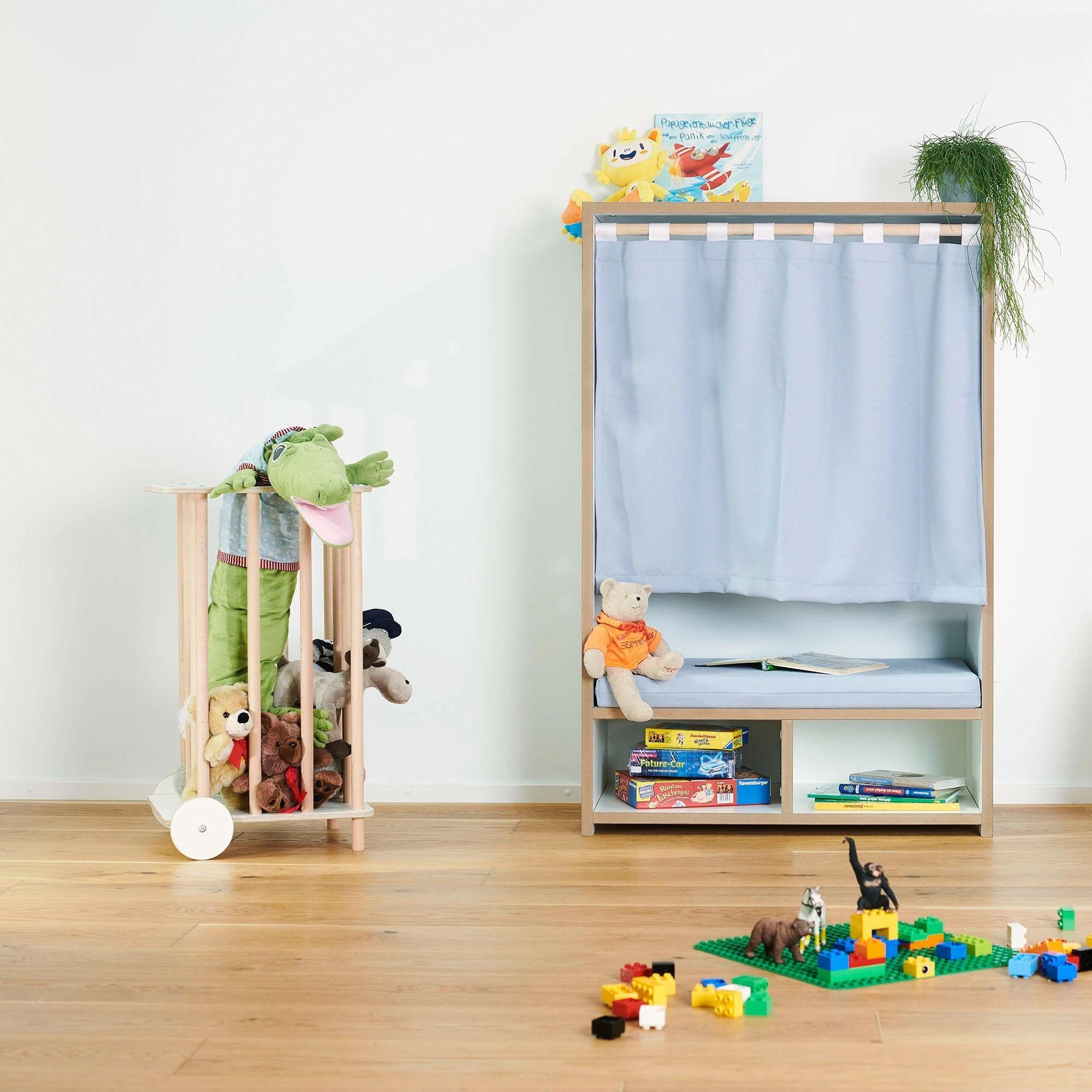 Die Nische Kinderbank mit Stauraum wurde von Eigenwert für die Marke Tojo entworfen. Die meisten Kinder lieben es, sich zu verstecken. Dazu haben sie mit der Nische Kinderbank mit Stauraum Gelegenheit. Sie ist ein idealer Rückzugsort, um ein Buch anzusehen oder zu entspannen.