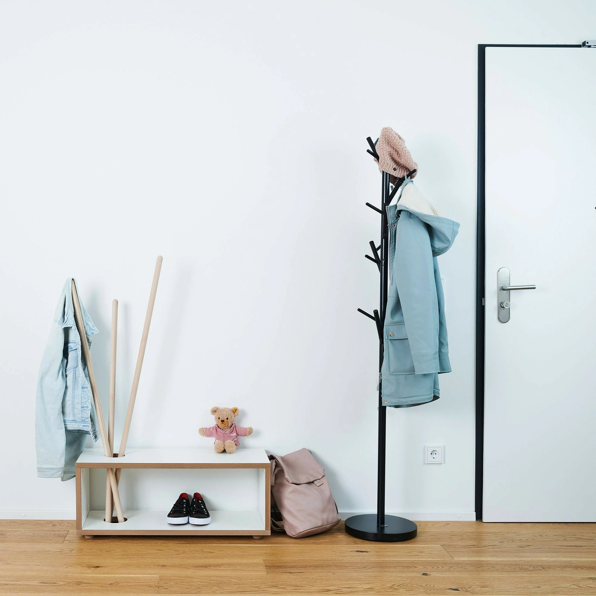 Die Ordnung Kindergarderobe wurde von Eigenwert für die Marke Tojo entworfen. Nomen est Omen lautet das Motto des praktischen Kindermöbels. Es schafft nämlich im Kinderzimmer oder im Flur Ordnung.