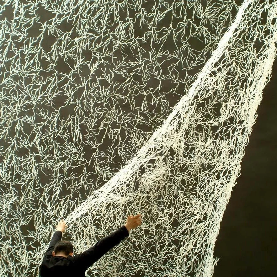 Algue ist ein kunstvoller Raumteiler von Vitra! Aus vielen kleinen Kunststoff-Elementen können Sie Ihr eigenes innenarchitektonisches Deko-Objekt erschaffen, indem Sie die einzelnen Elemente – die wie elegante Wasserpflanzen geformt sind – nach Belieben miteinander verketten. Mit den Kunststoffelementen von Algue können Sie vom leichten Vorhang bis zum undurchdringlich dichten Raumteiler alles zaubern, lassen Sie Ihren persönlichen Wohntraum wahr werden! Den Raumteiler Algue von Vitra können Sie bei uns in Sets zu je 25 Stück kaufen, diese Menge reicht aus, um eine 1m2 große Fläche mit einer leichten Netzstruktur zu gestalten.