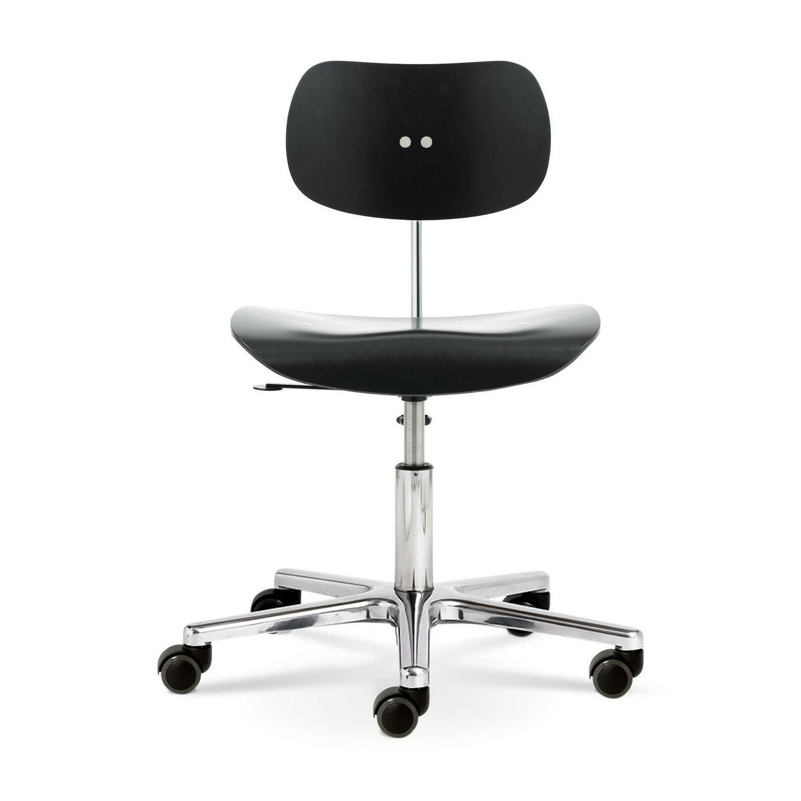 Der berühmte S 197 GH Drehstuhl mit Rollen gehört zu einer Serie, die 1950 von Prof. Egon Eiermann entworfen wurde und seitdem von Wilde + Spieth produziert wird.